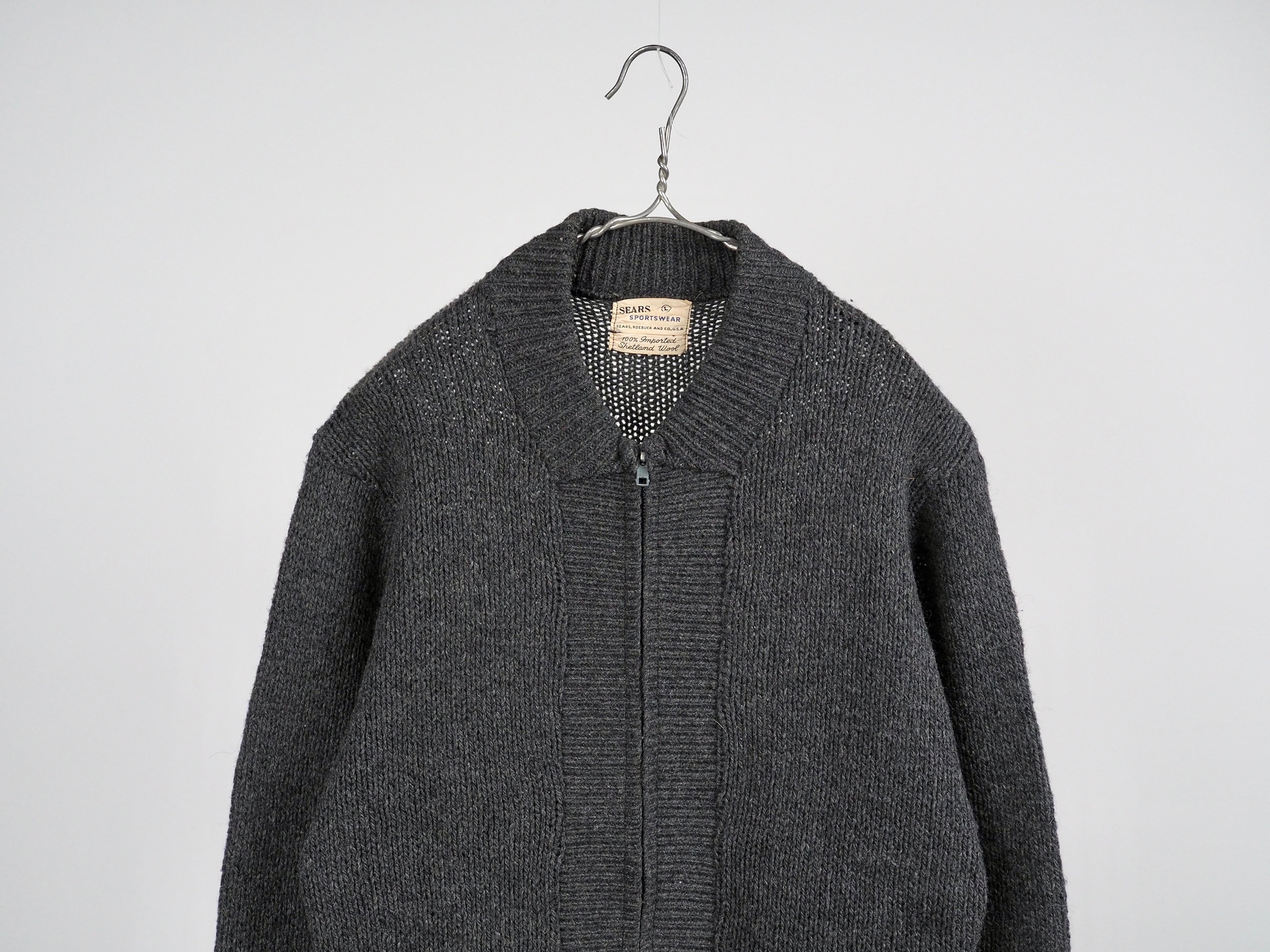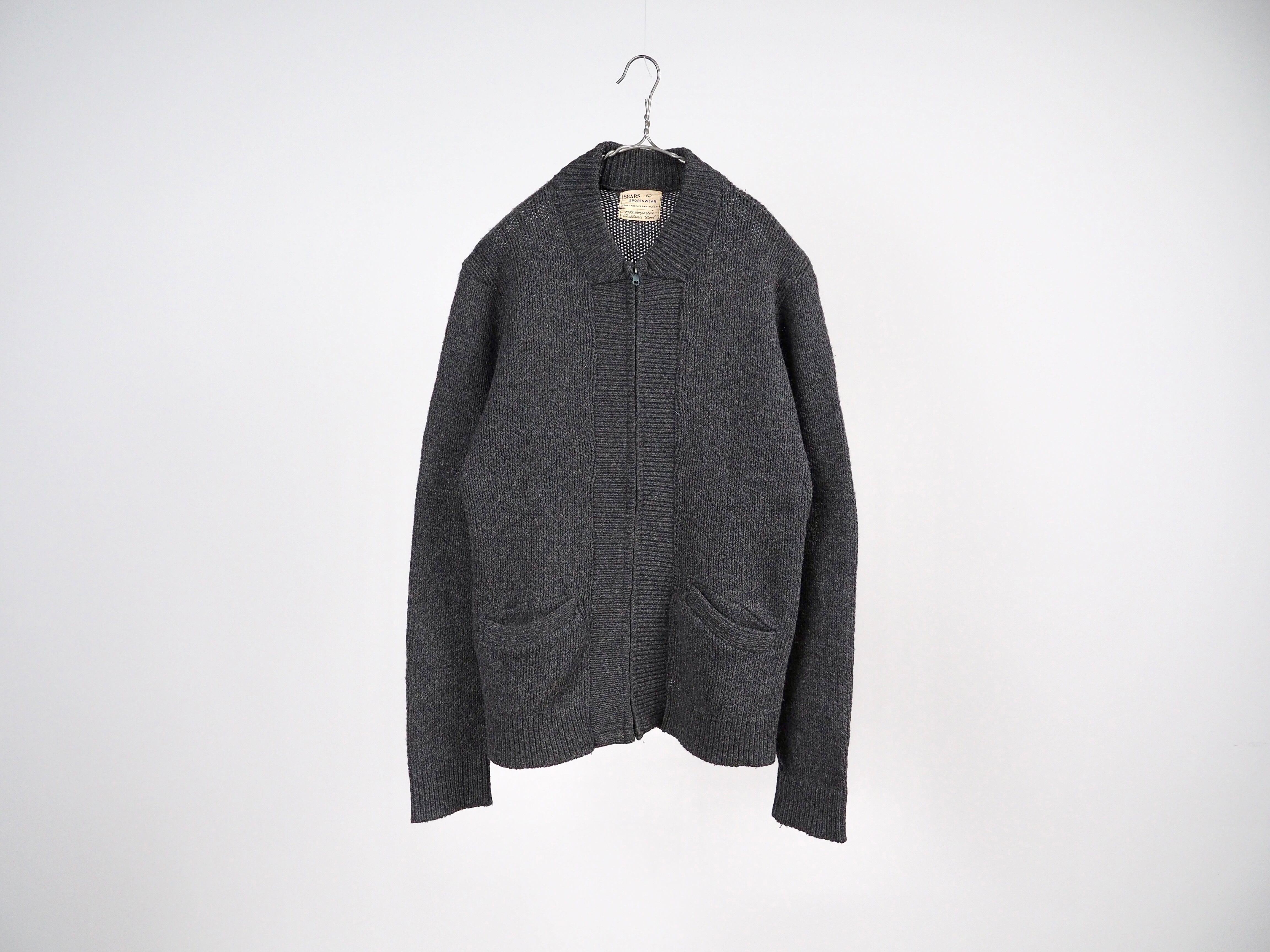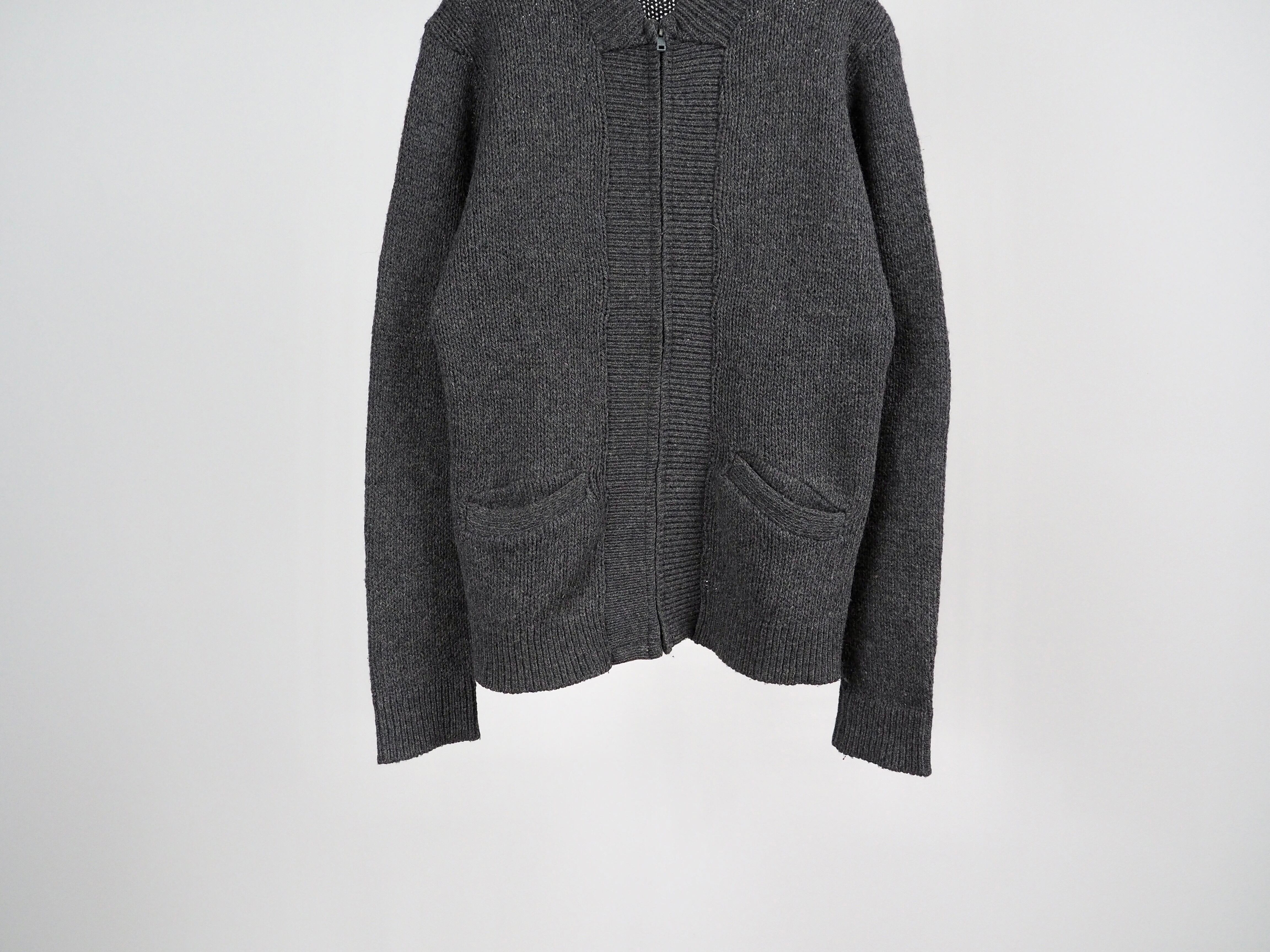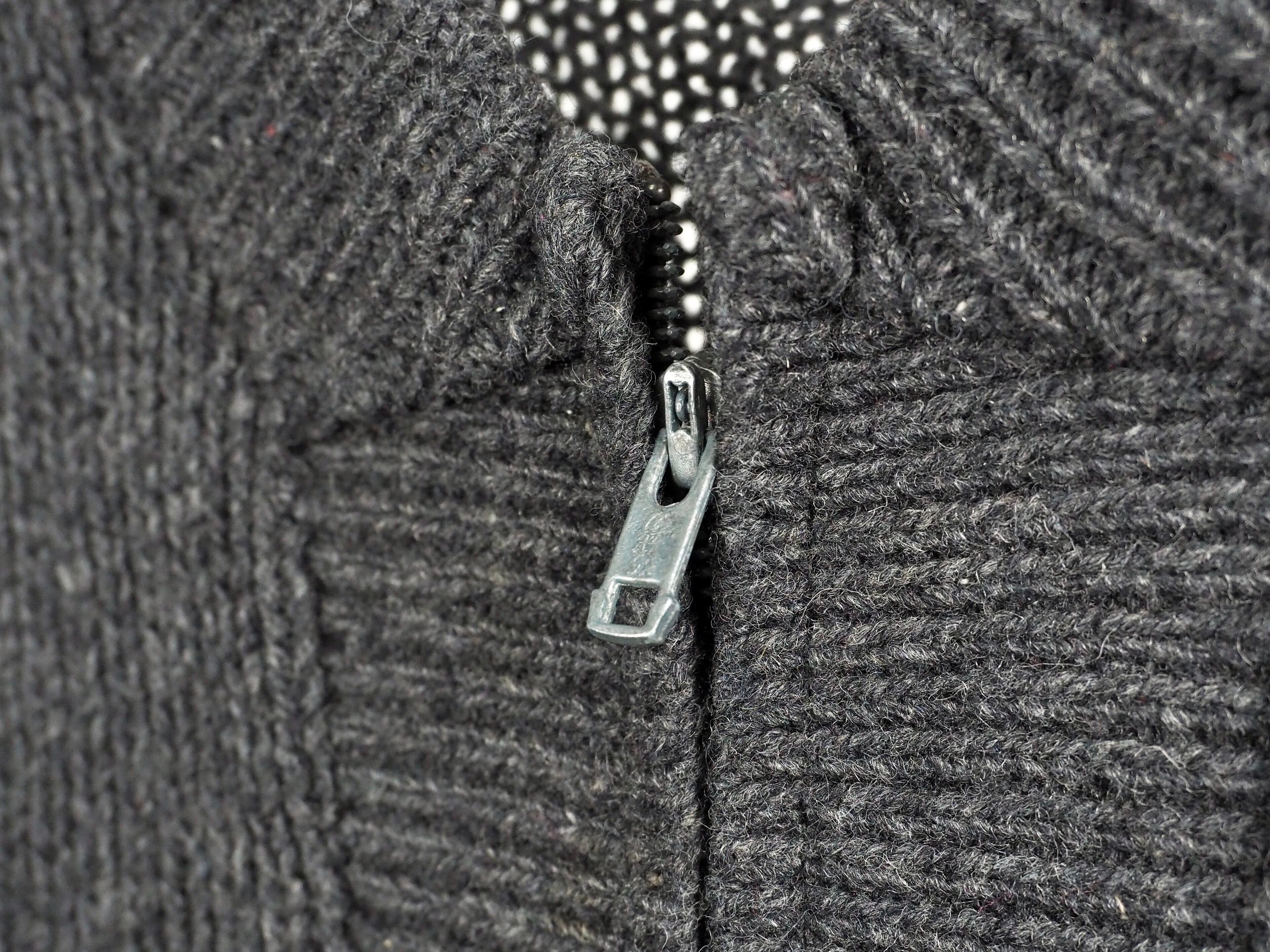 ウール100%、シンプルな無地のジップアップカーディガン。