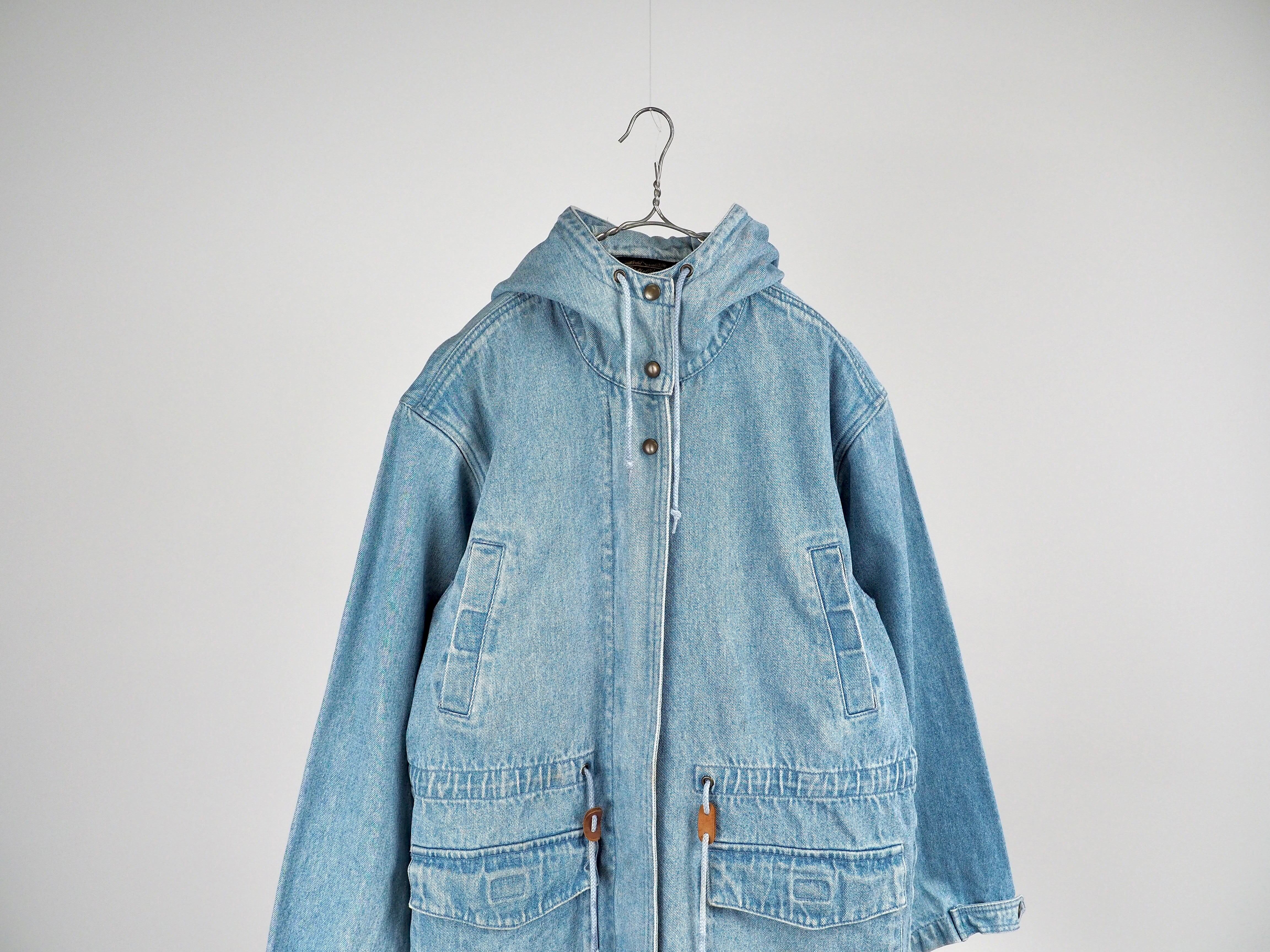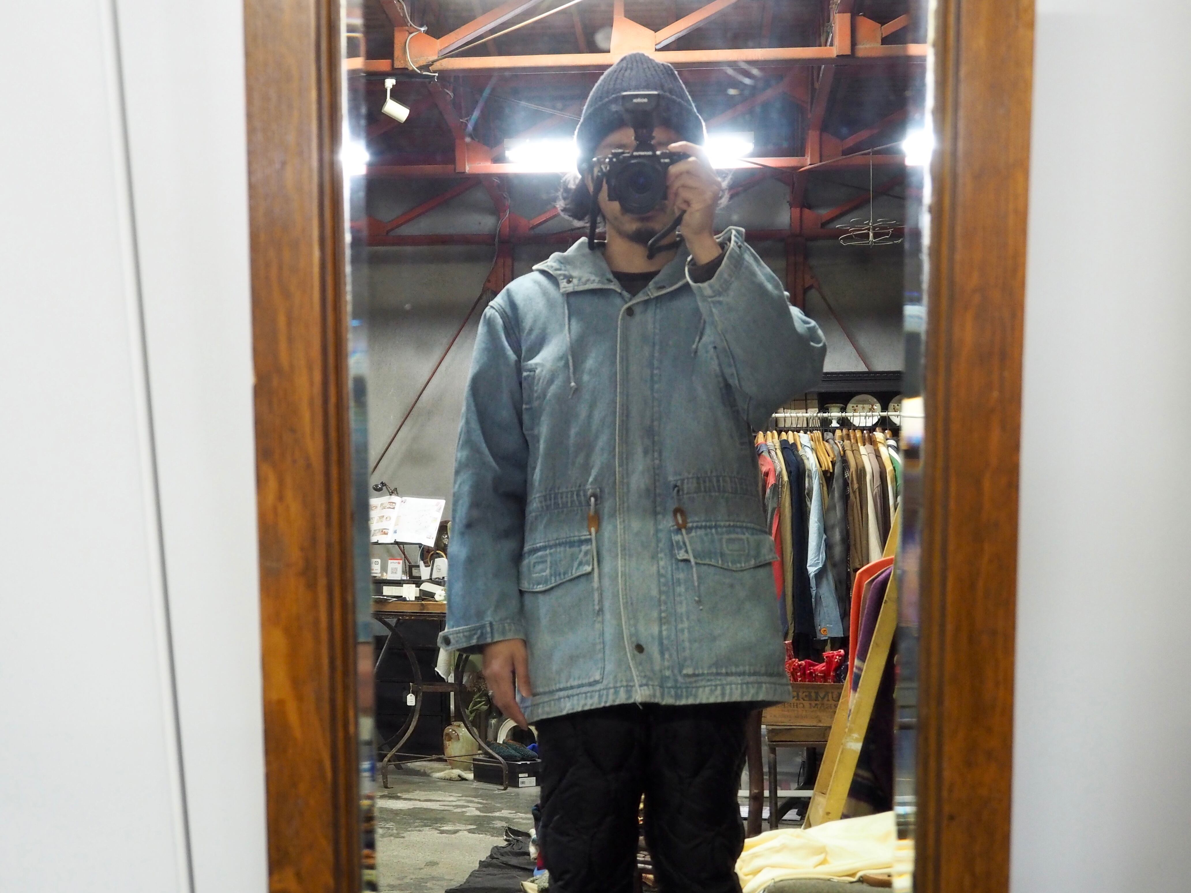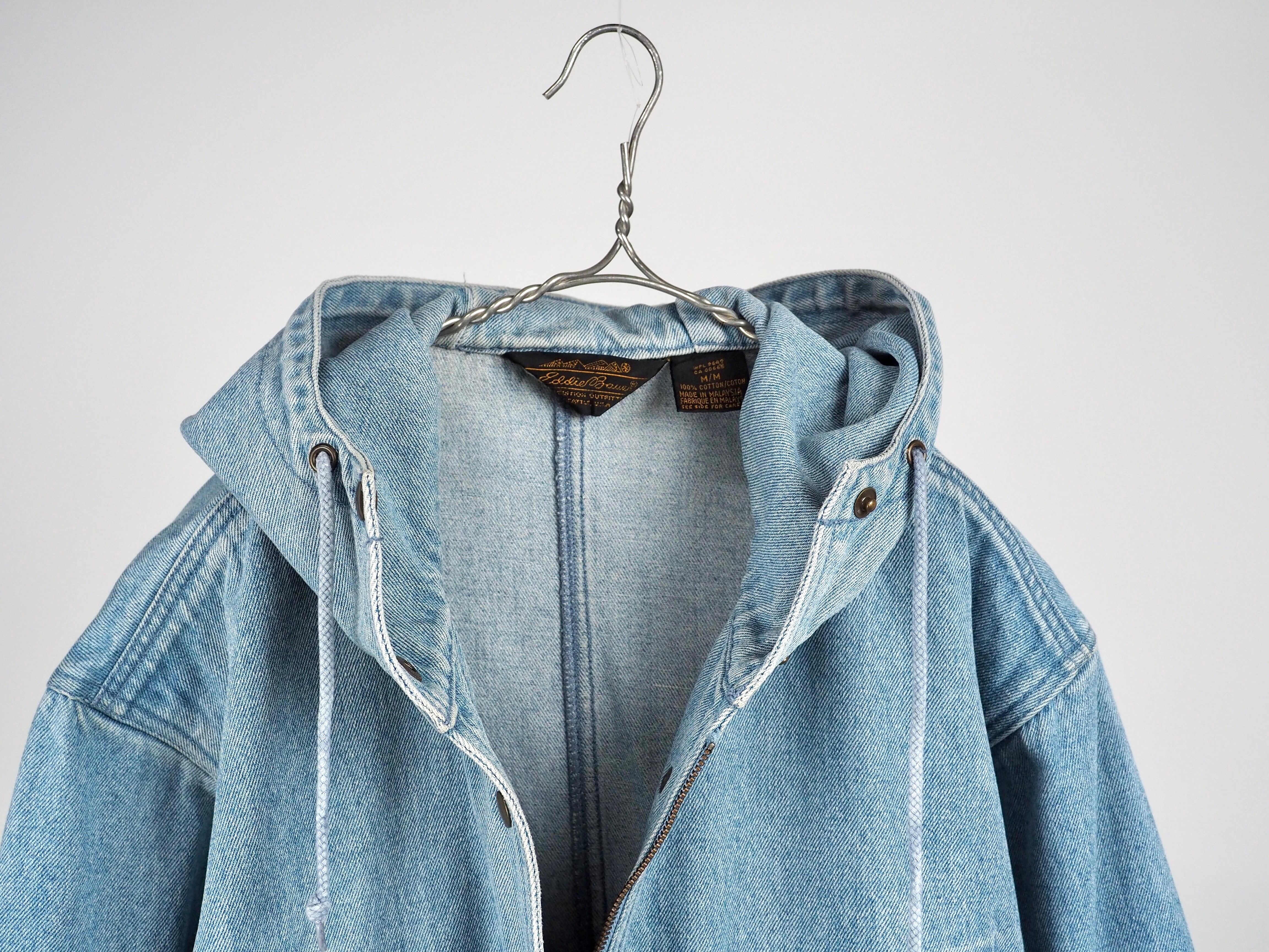 黒タグ Eddie Bauer、デニム生地のマウンテンパーカー。