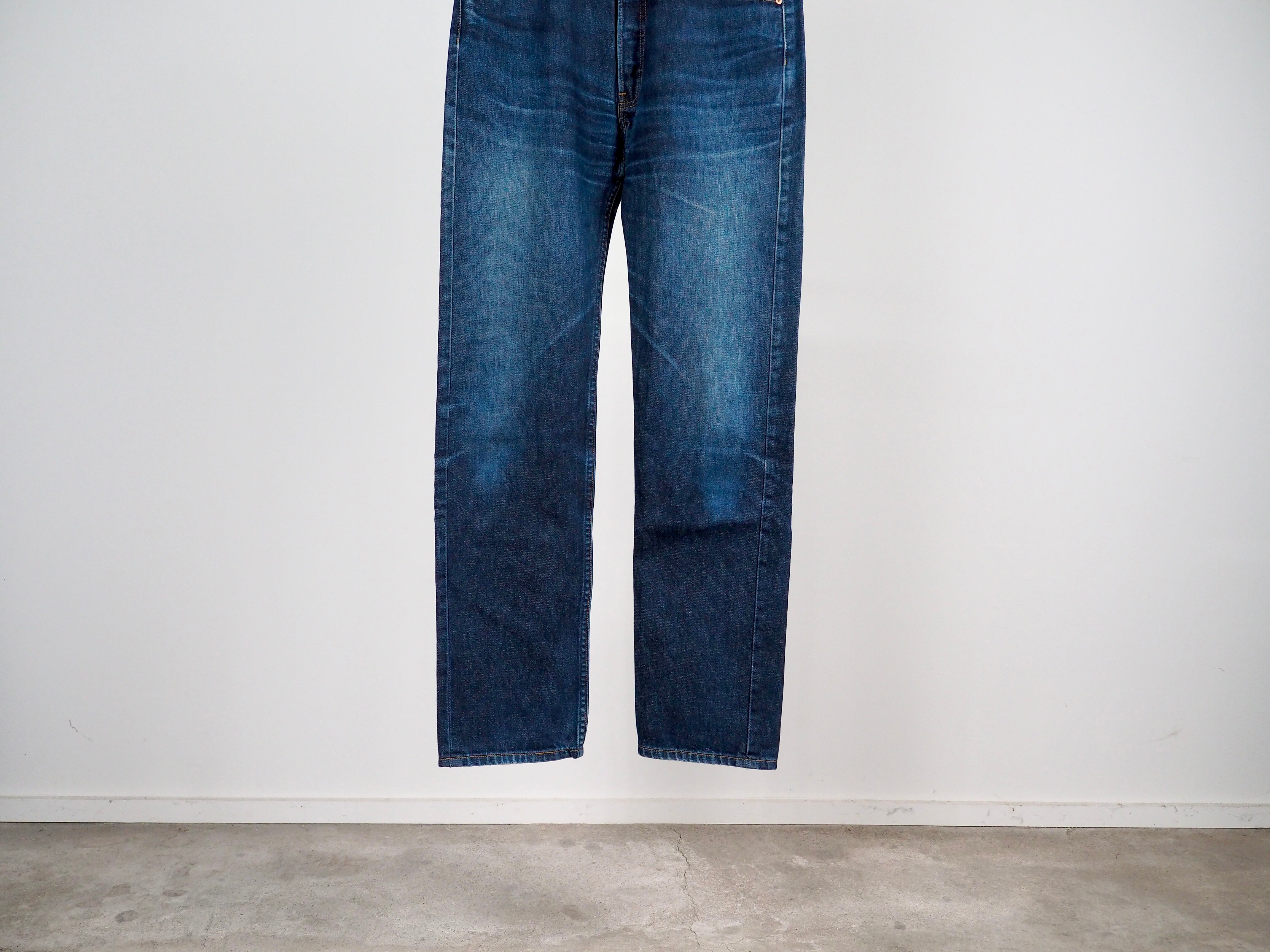 着用感、デニム特有のアタリ、股下スレ、褪色が見られます。目立つ汚れやダメージなく現状のまま着用頂けます。