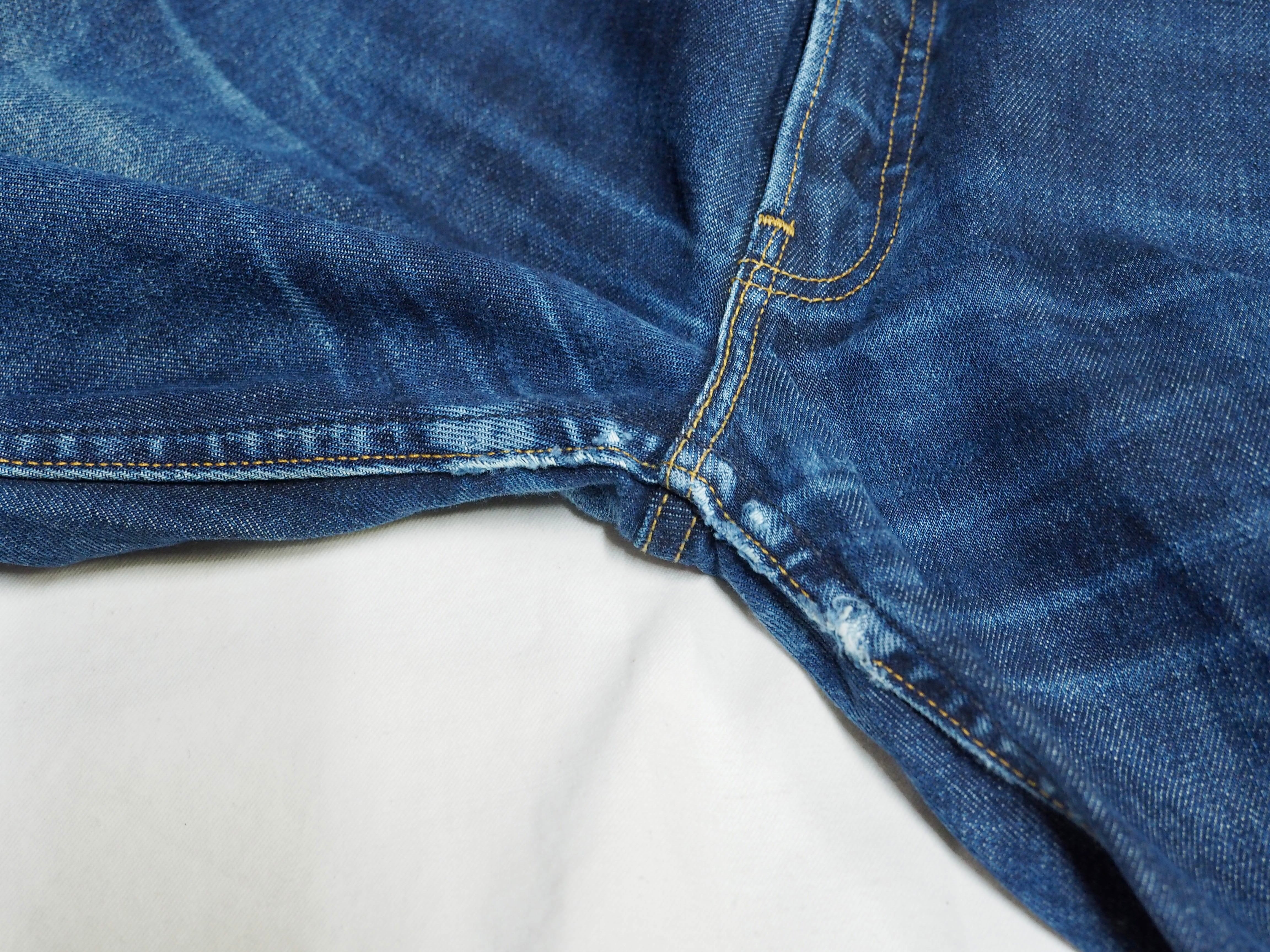 青みの強いインディゴでキレイなヒゲ落ちが特徴的です。