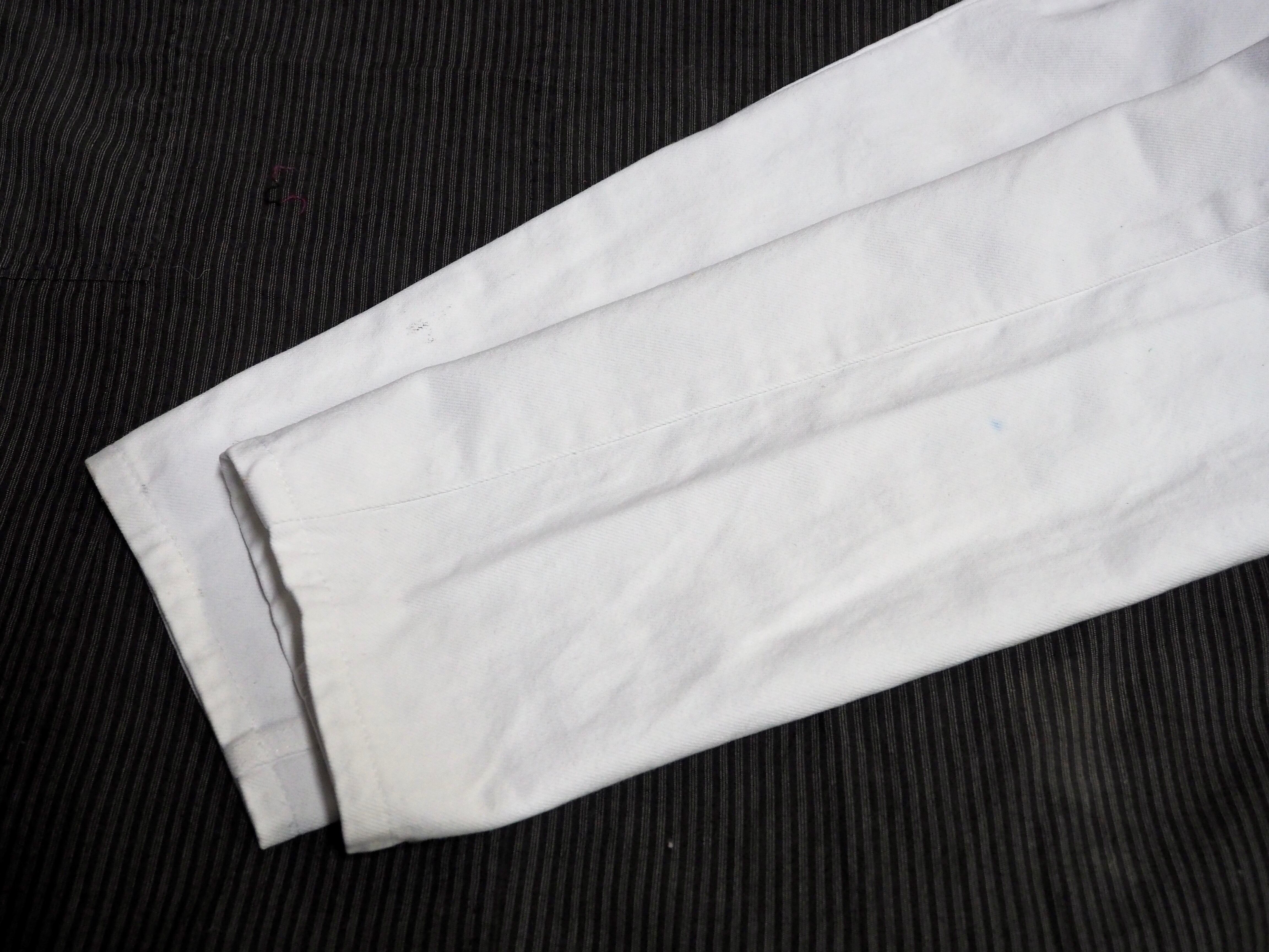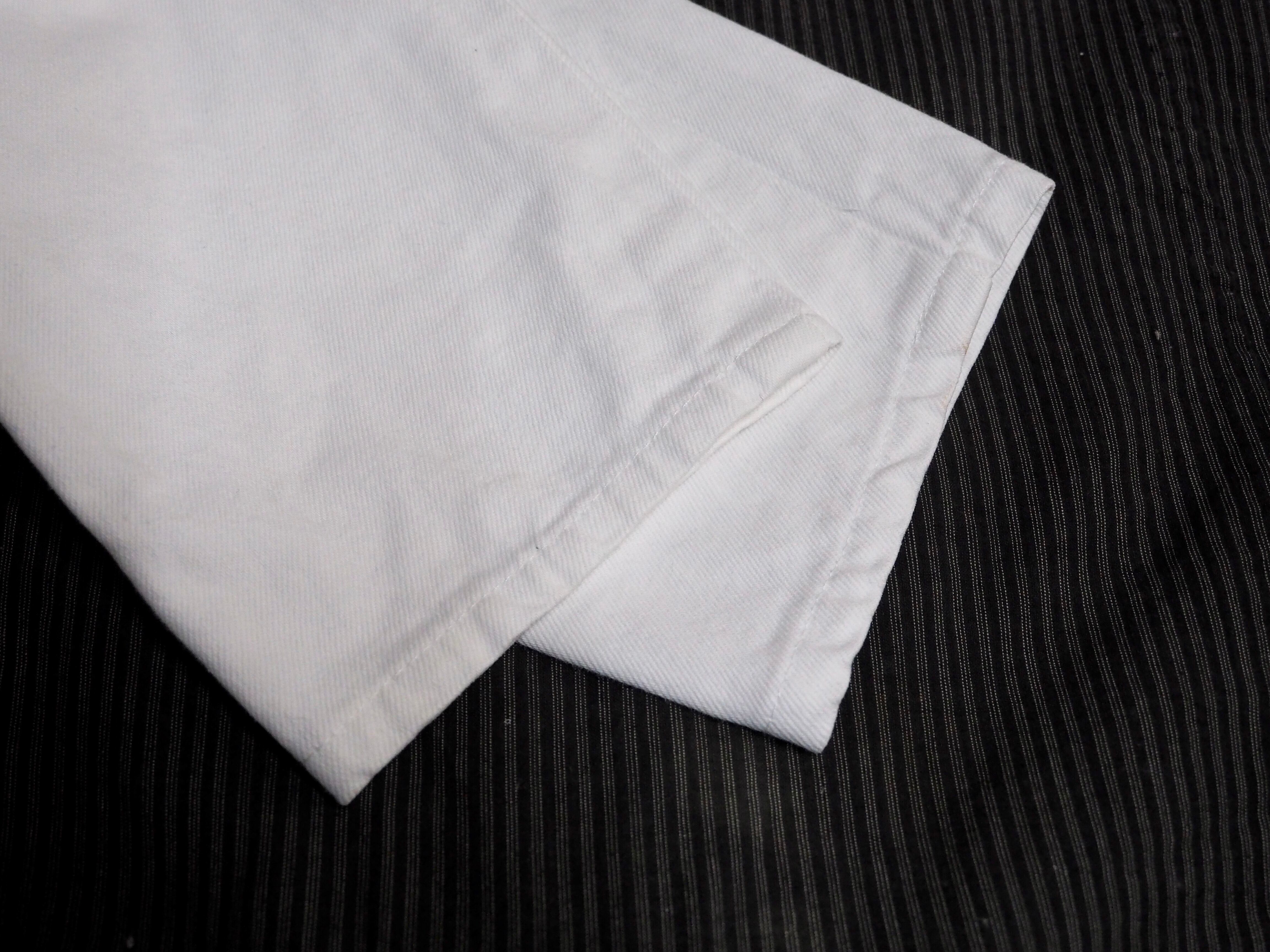 珍しいモデルです。ボディーはホワイトでアウトシームの膝あたりからテーパードシルエットにモディファイしてあります。