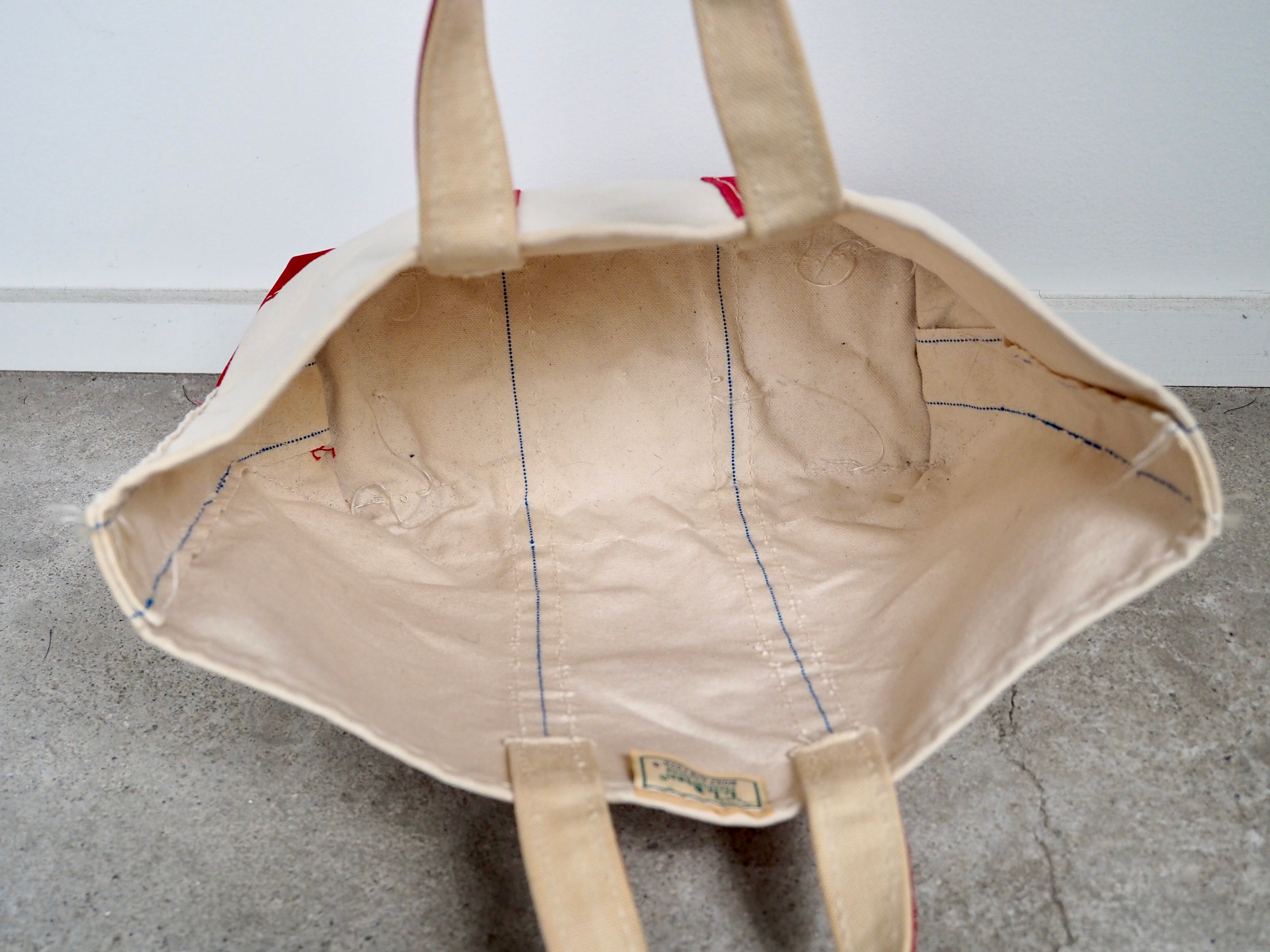 持ち手やサイドに多少の黄ばみ、ボトムの四隅にスレ、キャンバス特有のアタリや薄汚れがございます。
