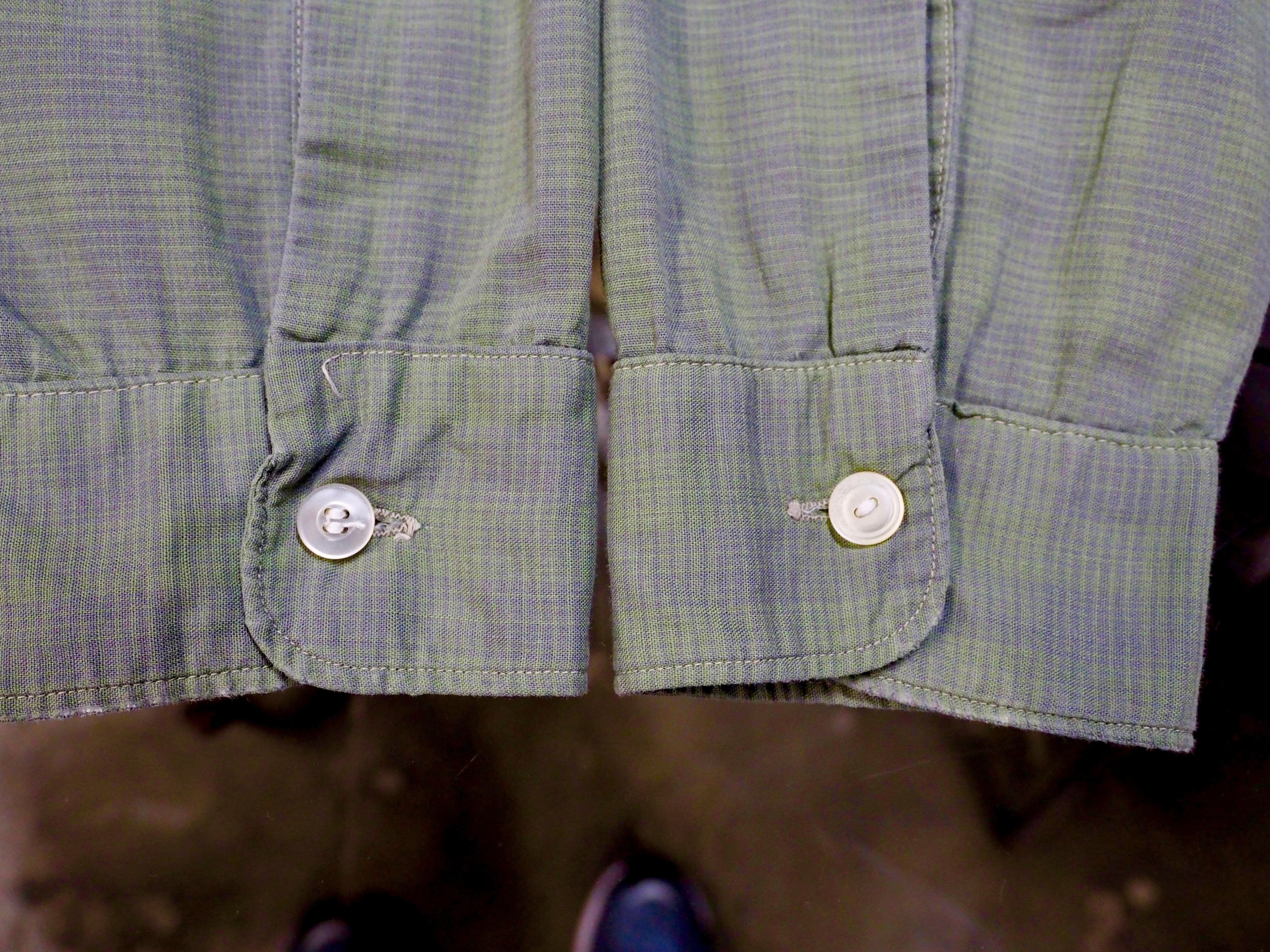 小ぶりな襟、首後ろにボタンの付いた3点留のデティールが特徴の〜60年代のビンテージシャツ。