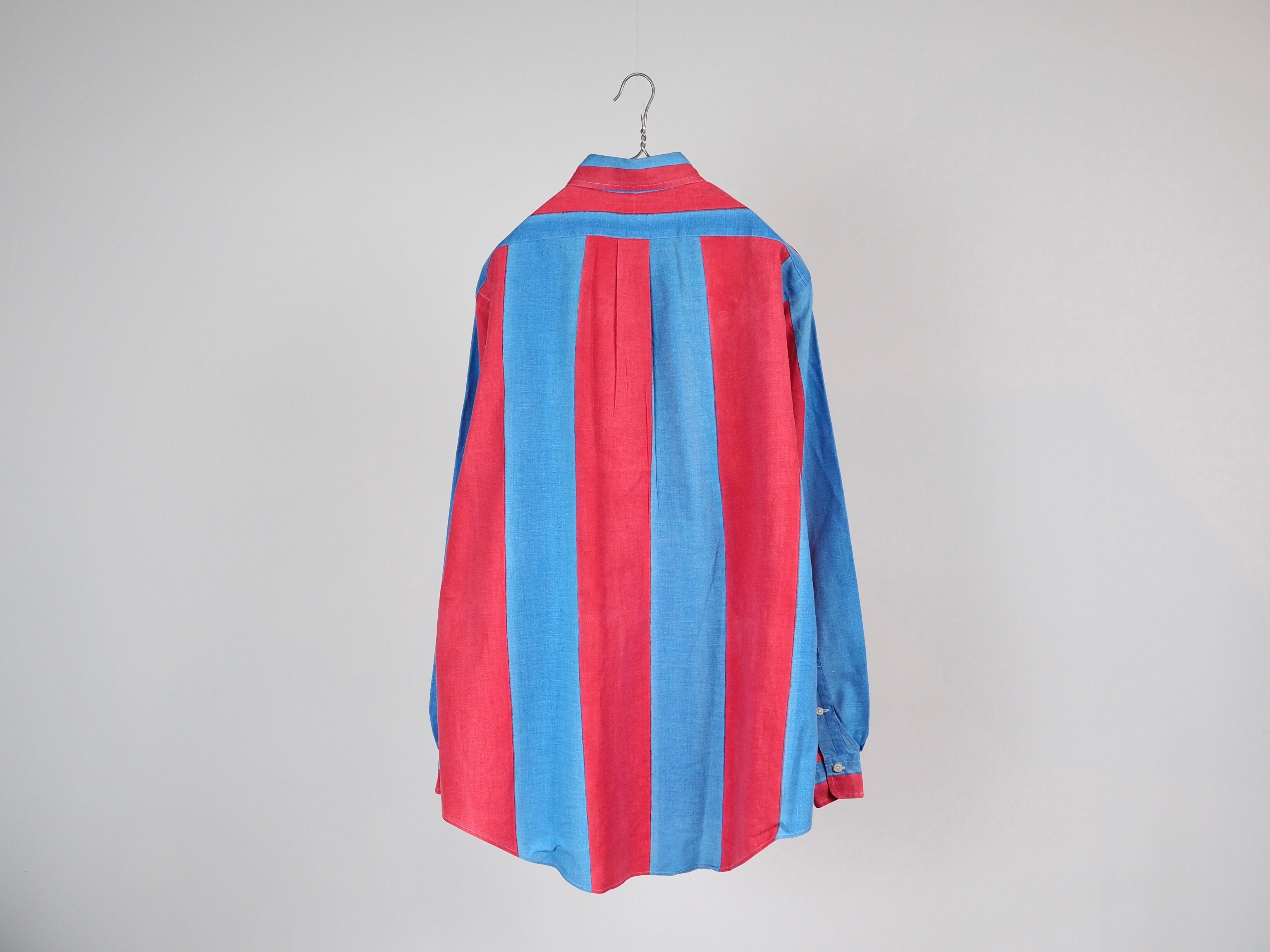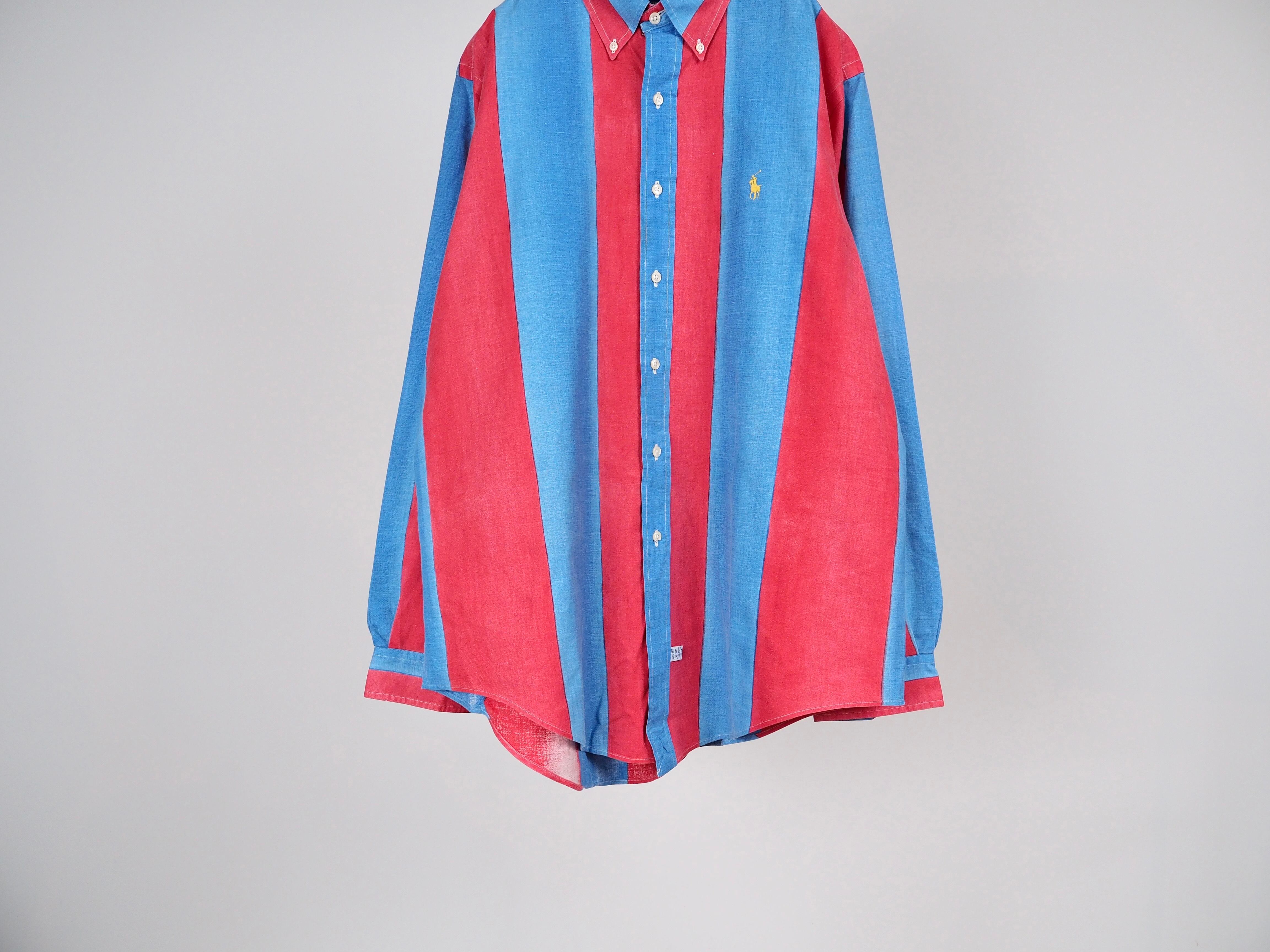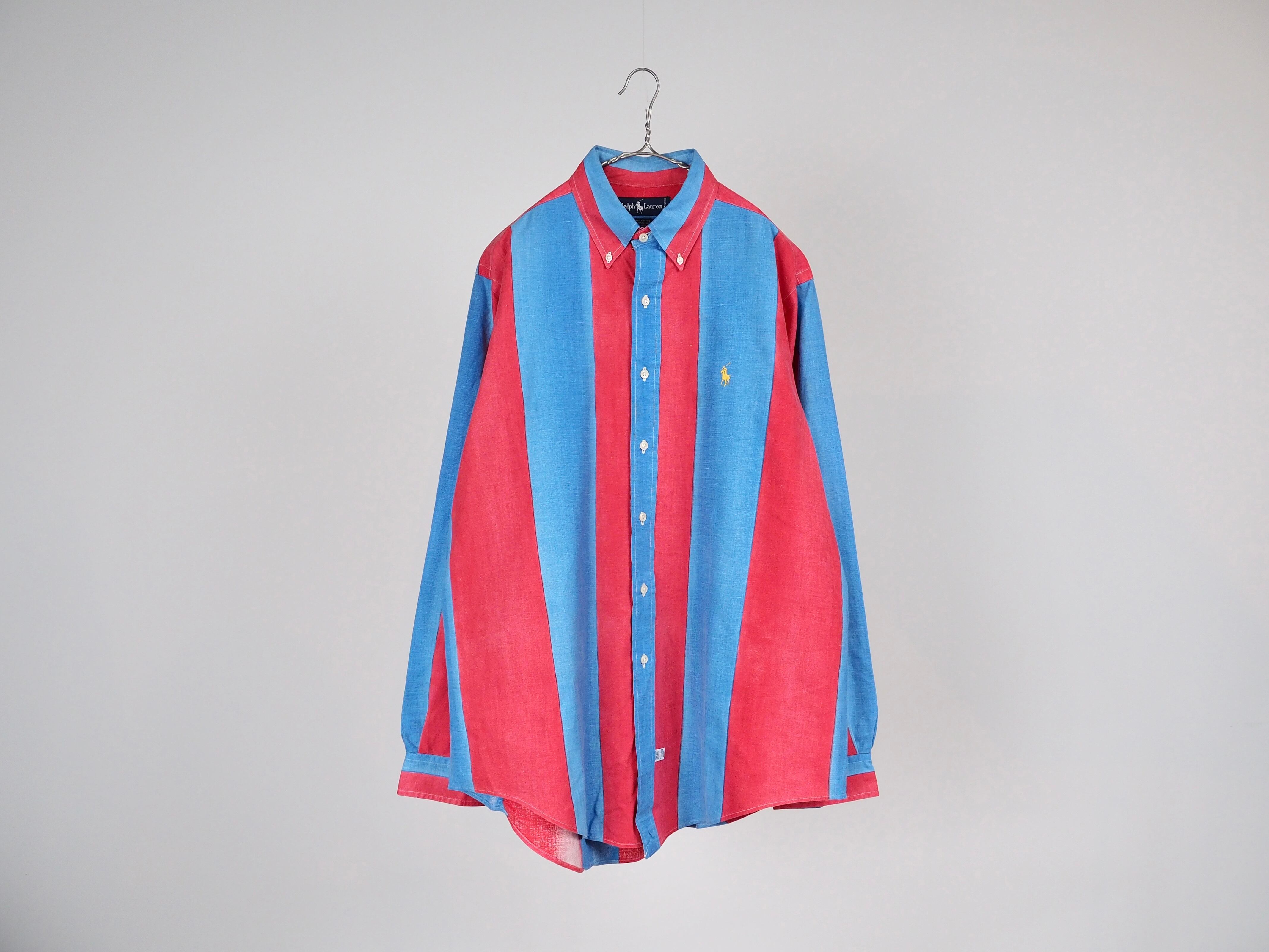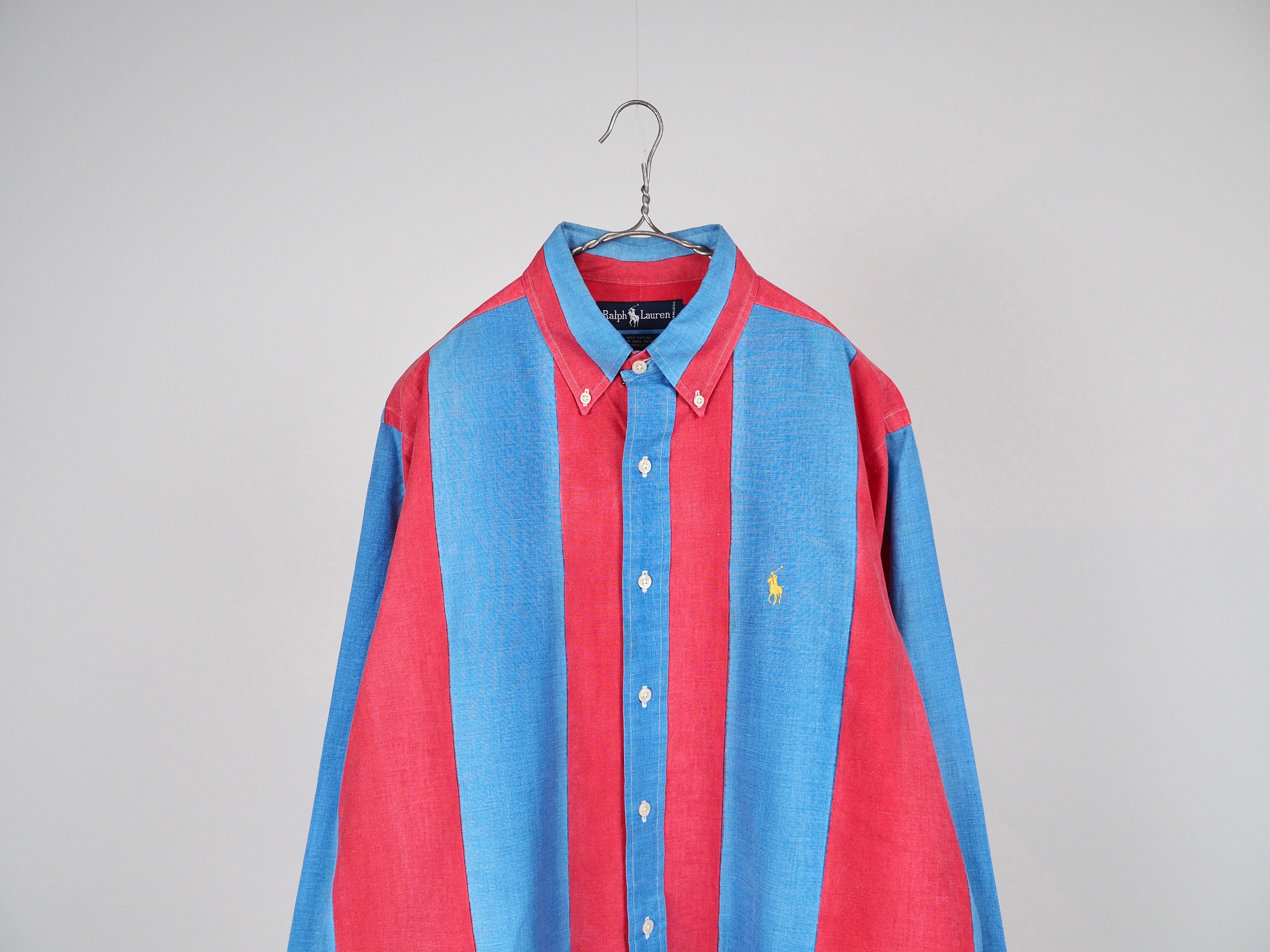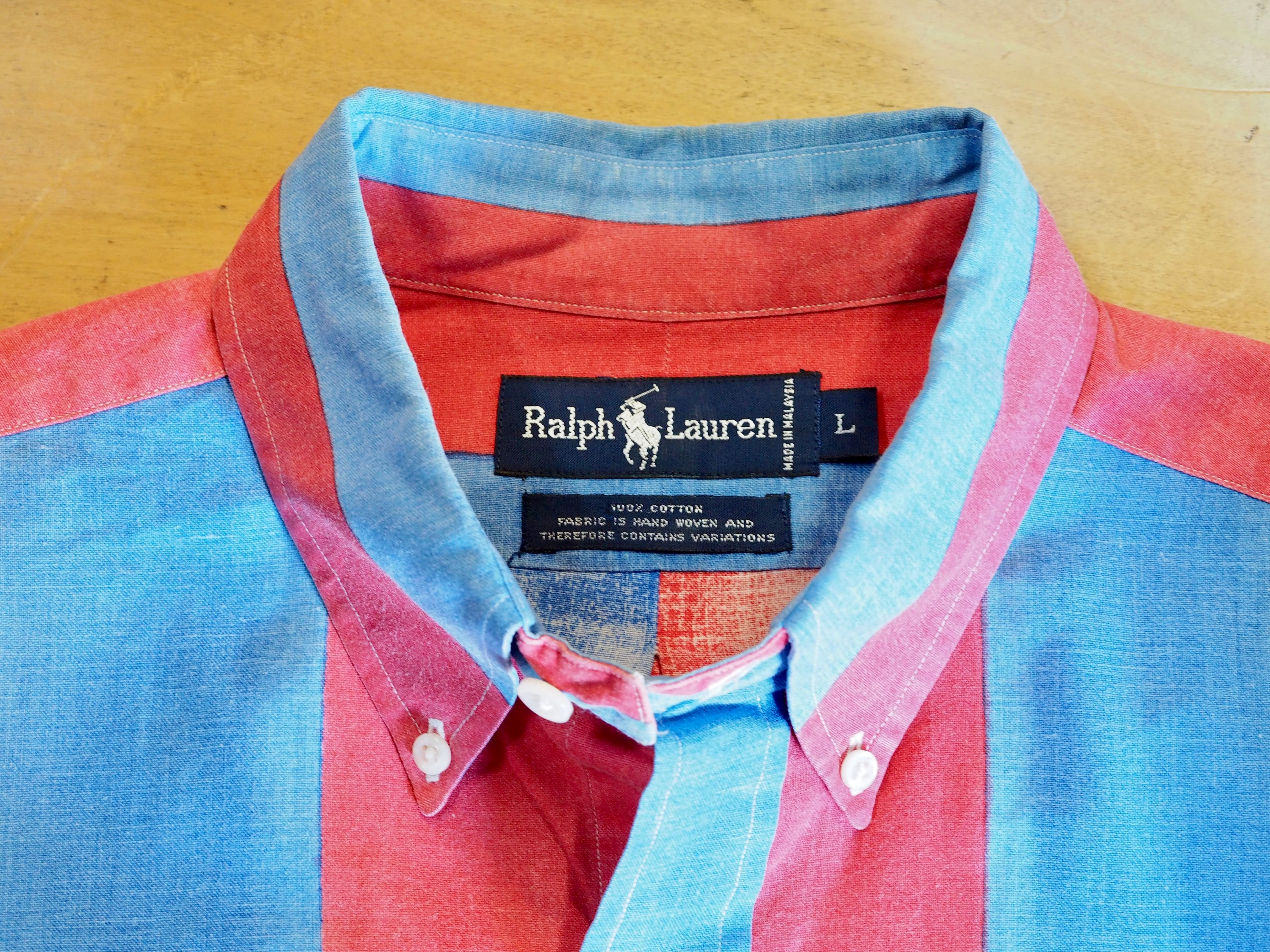 Polo名義が入らない高級ラインRalph Lauren、90年代頃のブロックカラーのストライプシャツ。