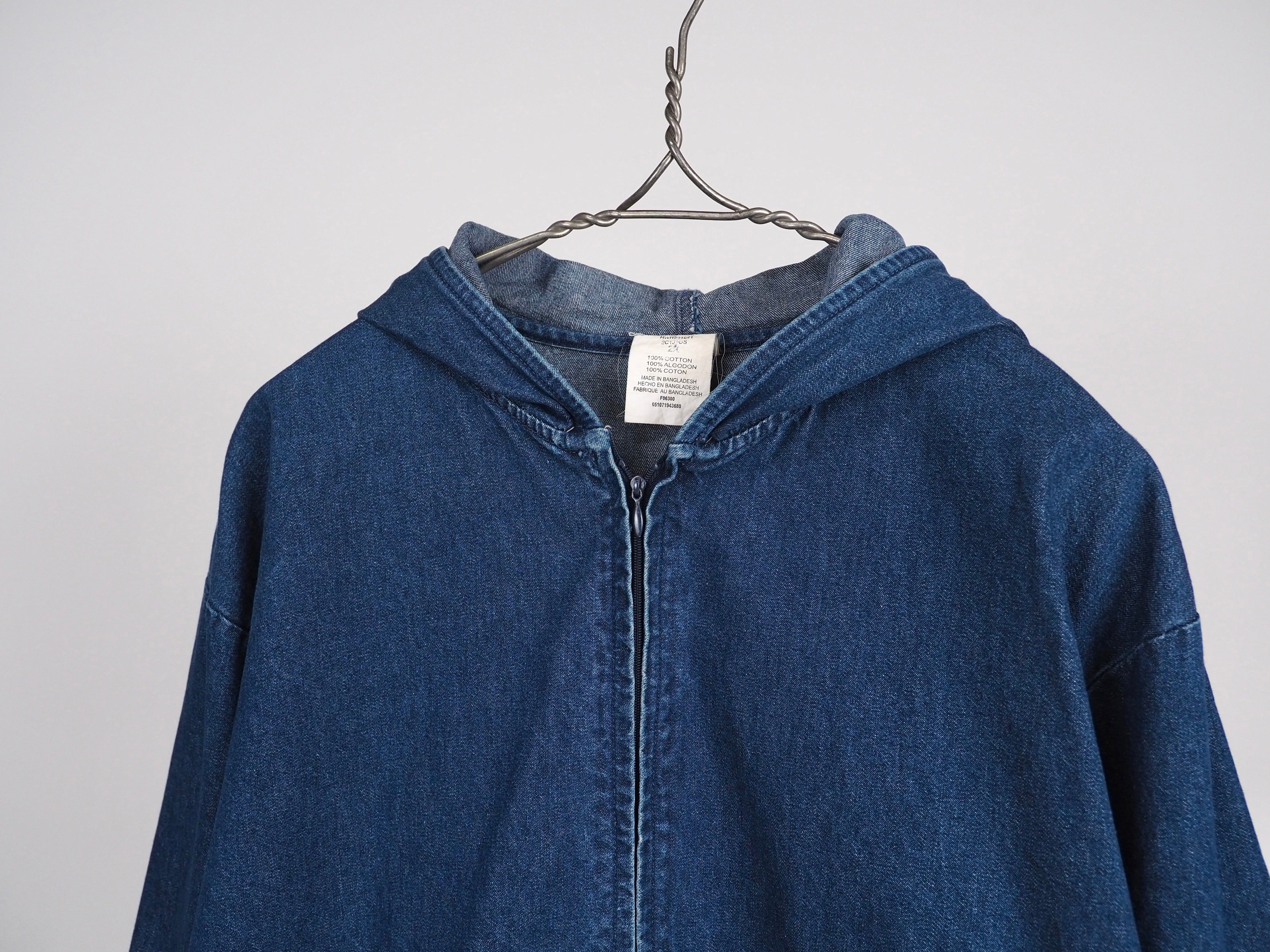 ジップアップのデニムパーカー。