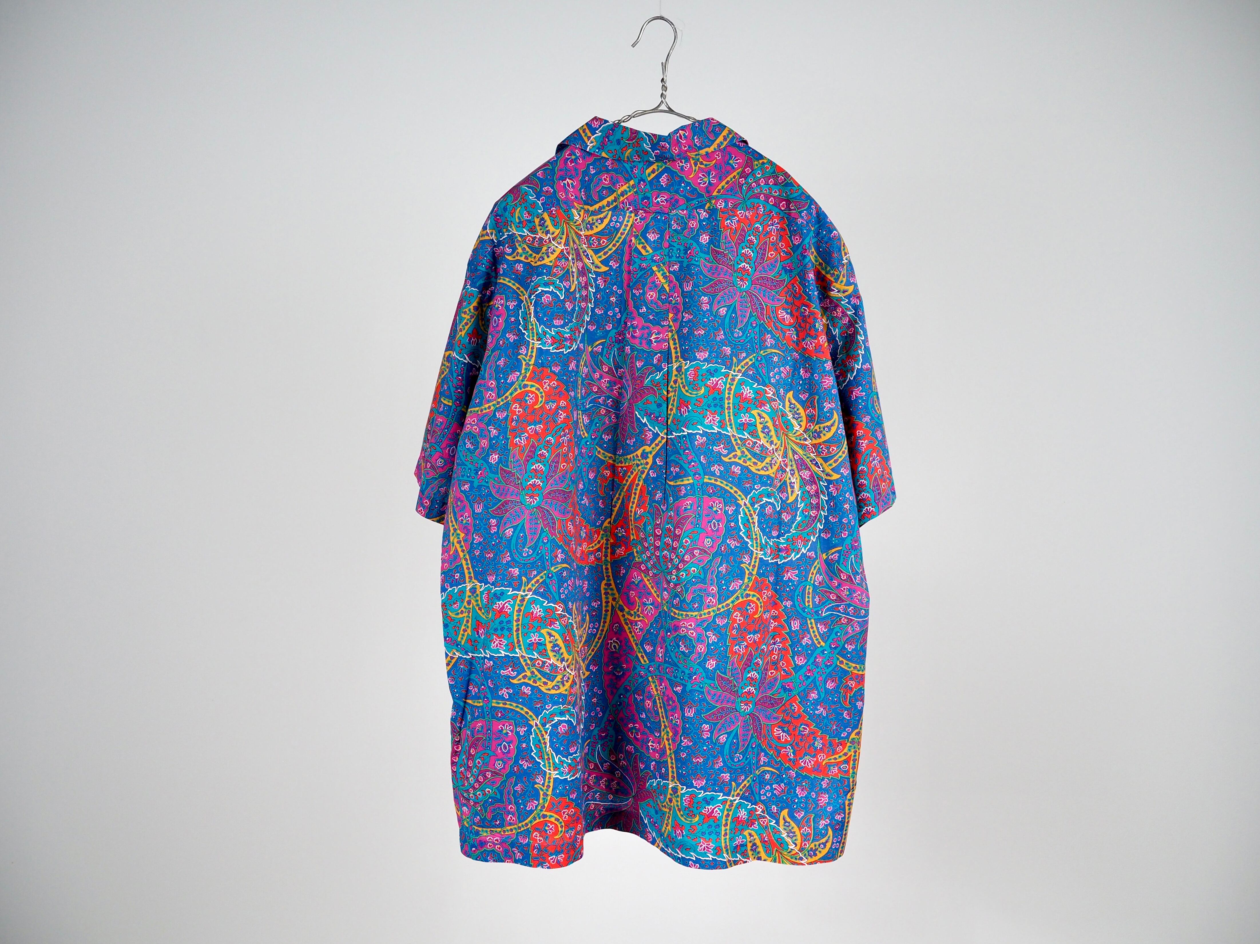 鮮やかなブルーベースの色味が目を惹く総柄デザインです。
