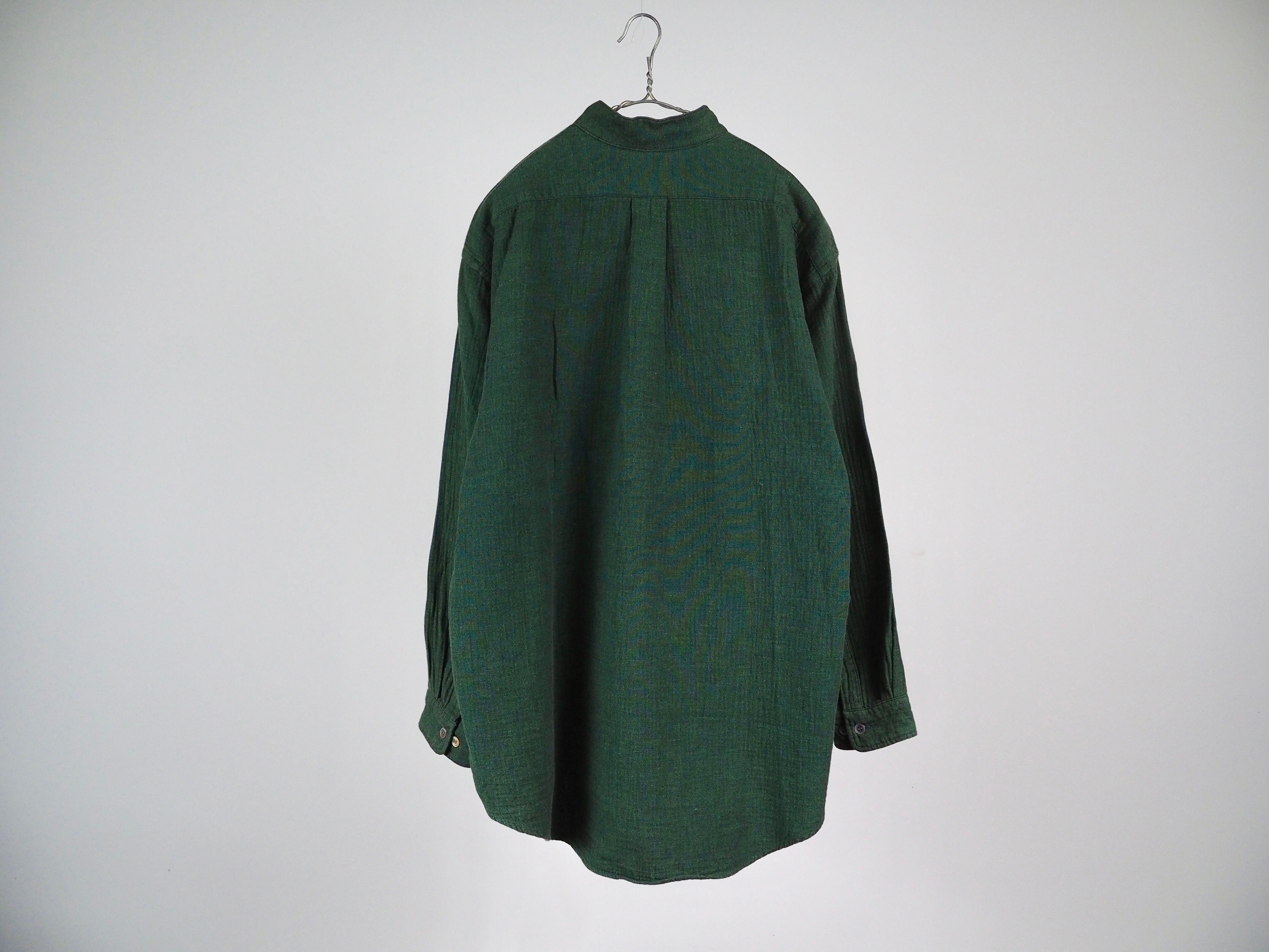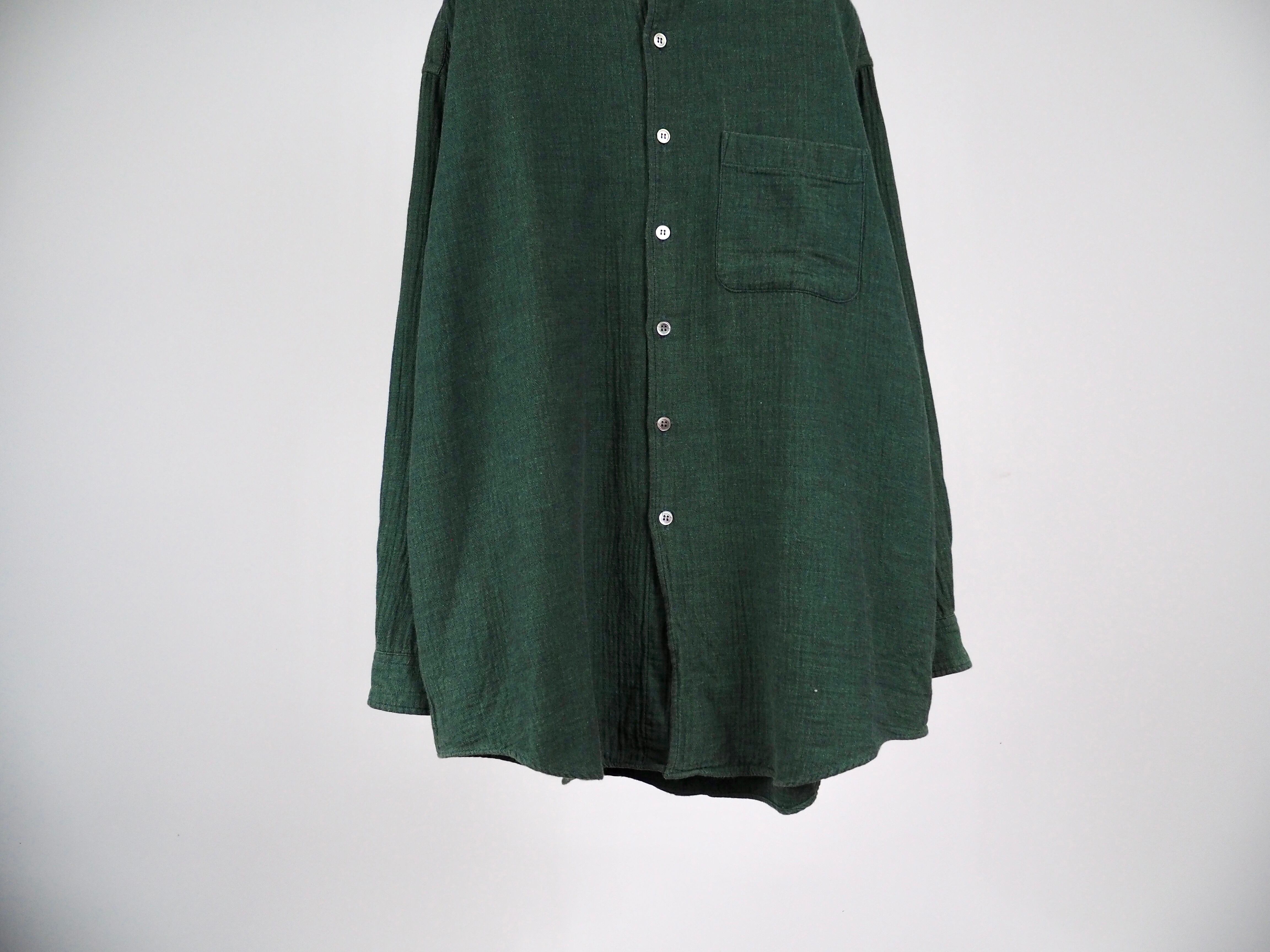 バンドカラーと大きめのチェストポケットが特徴的なビッグシルエットのオールドシャツです。