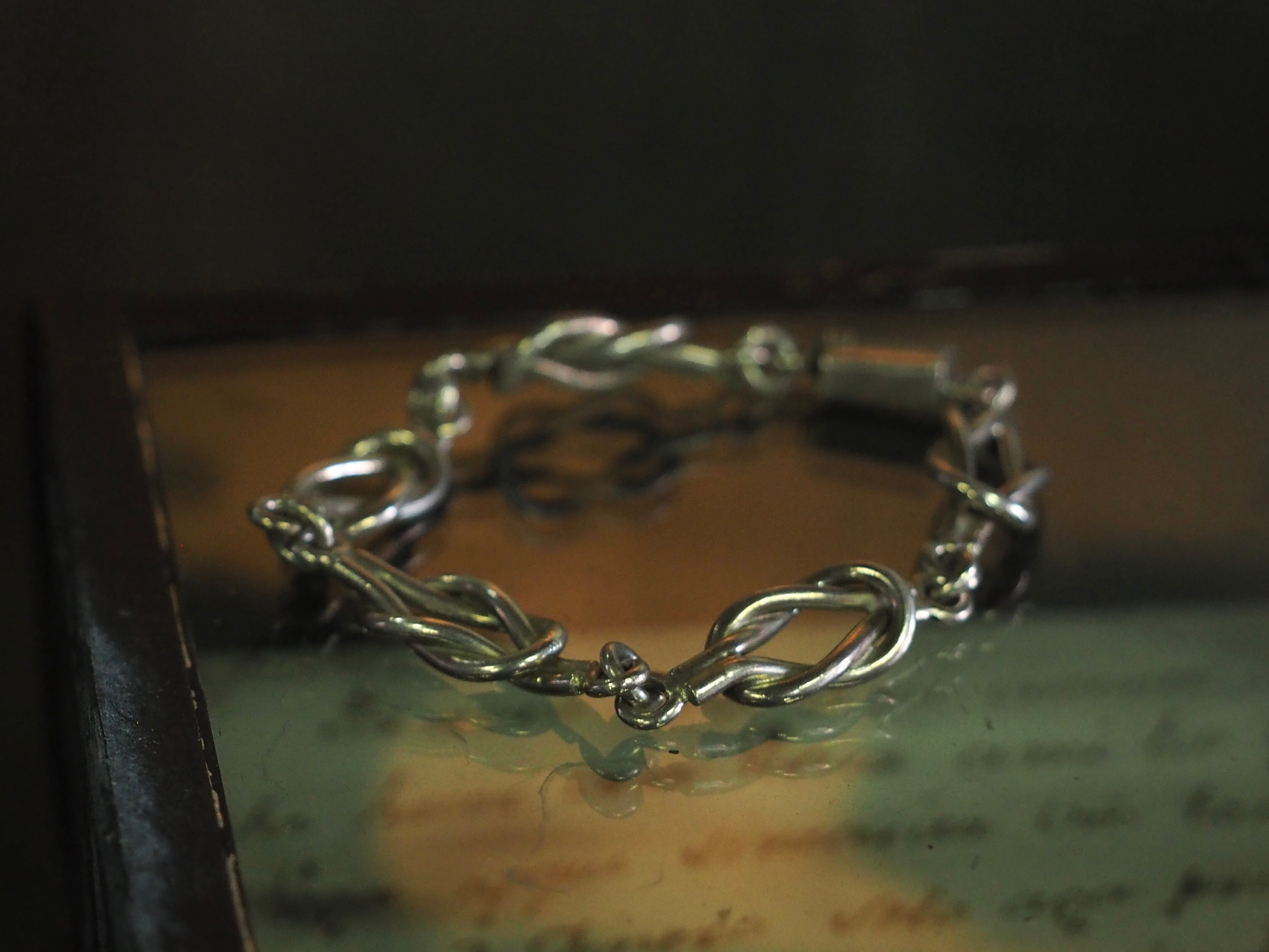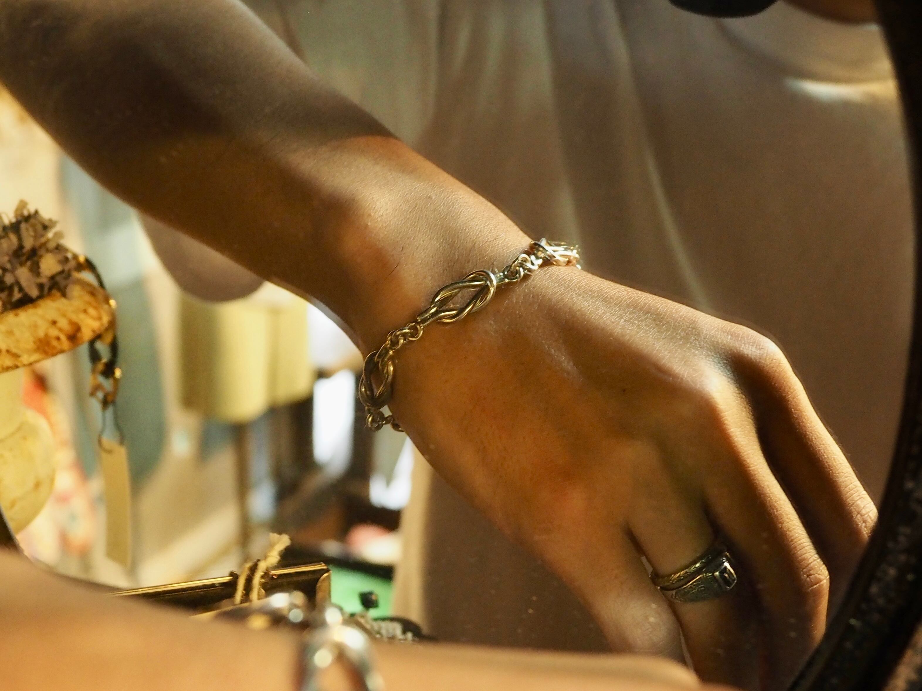 適度な太さと重みのあるノットデザインのチェーンブレスレット。