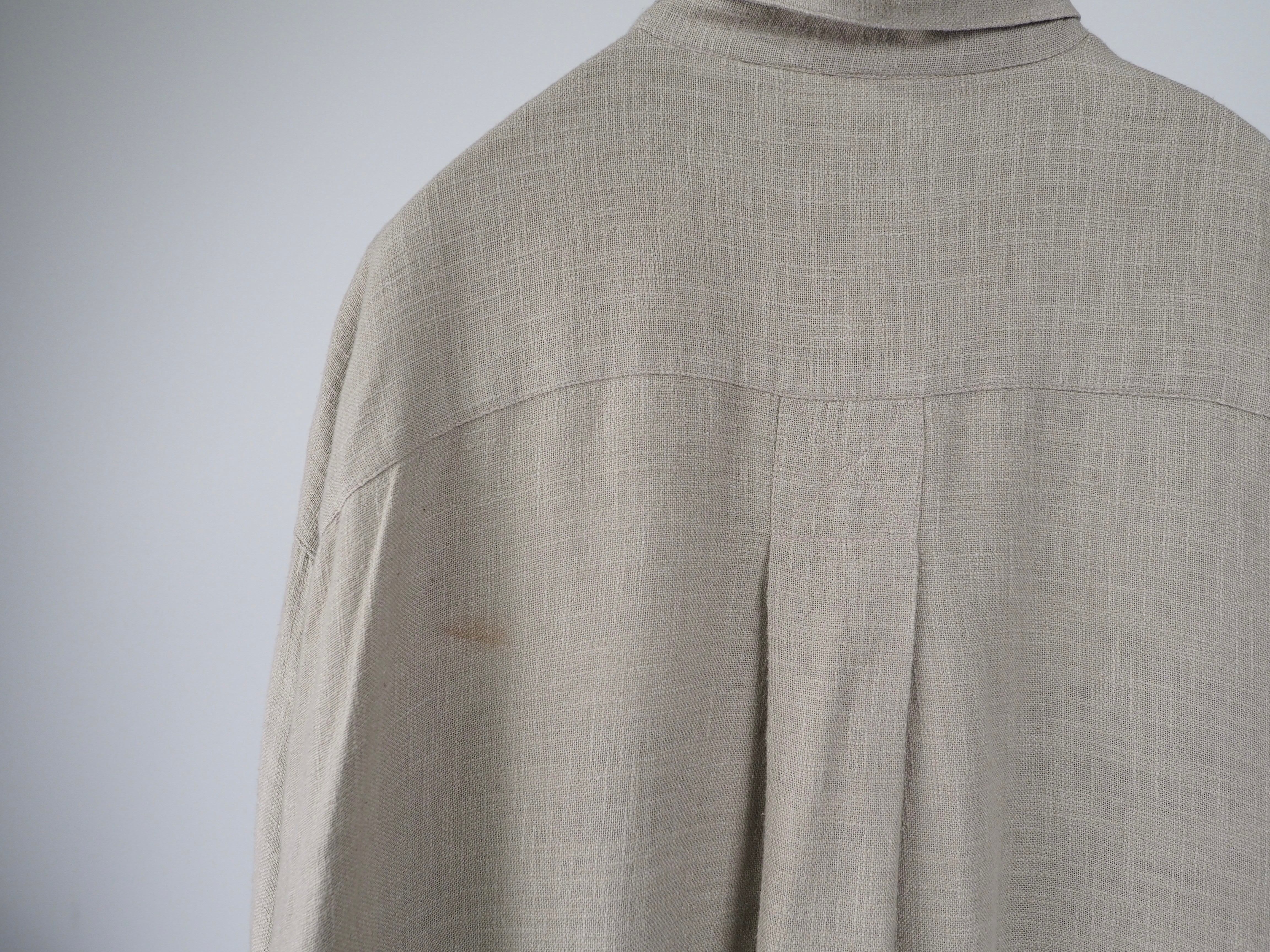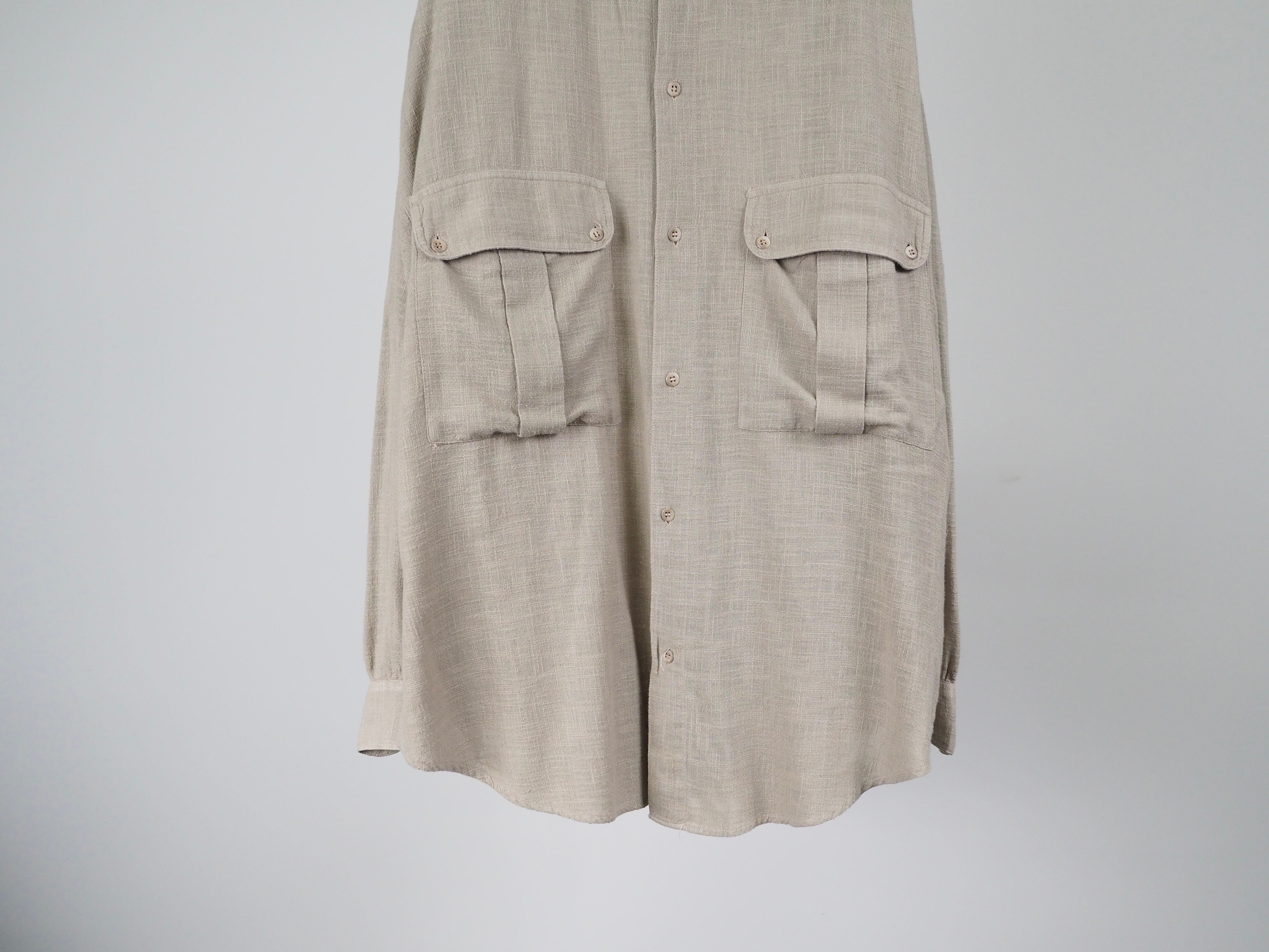 通常よりも低めににデザインされた大きなチェストポケットが特徴的なビッグシルエットの長袖シャツ。