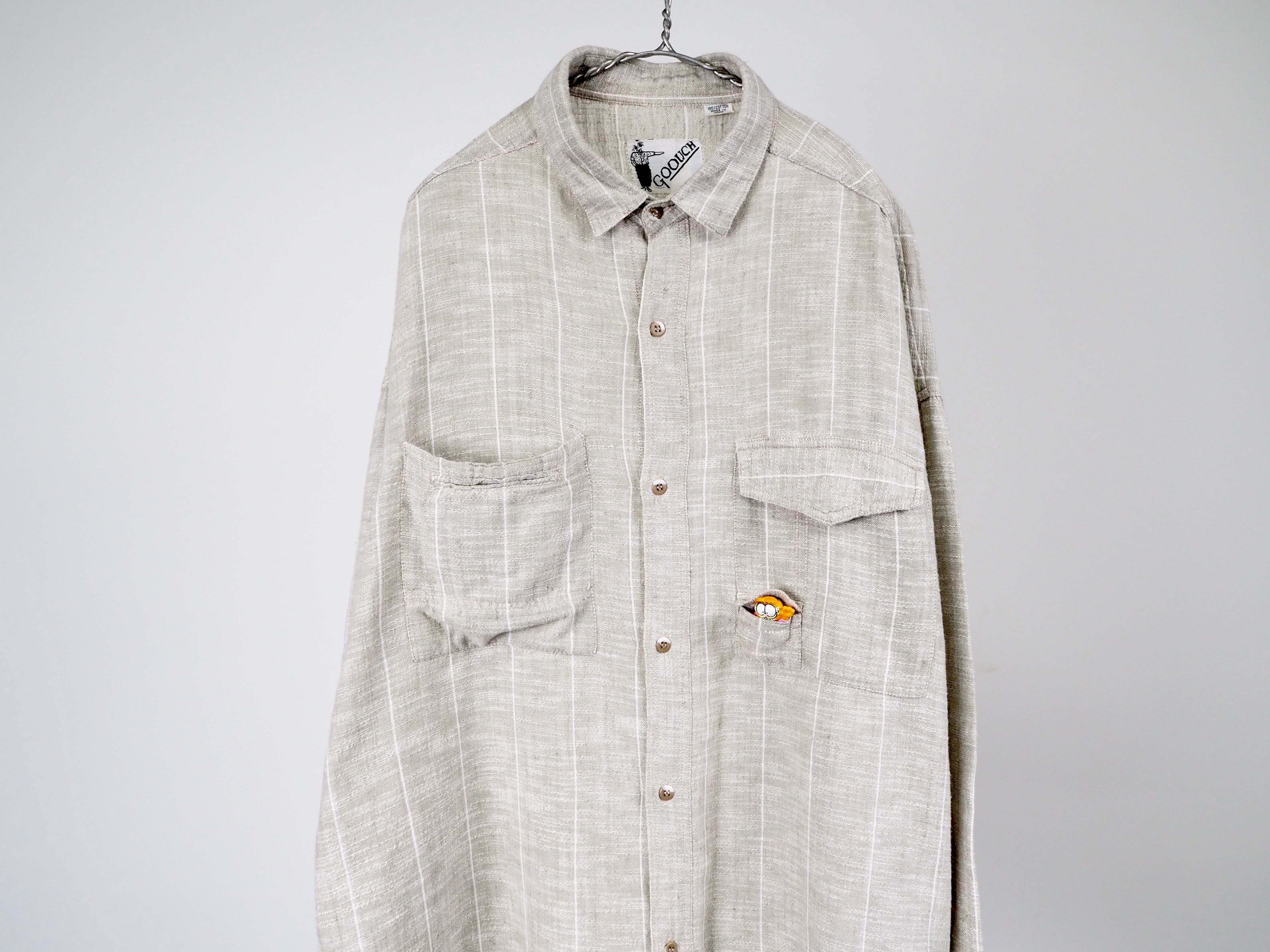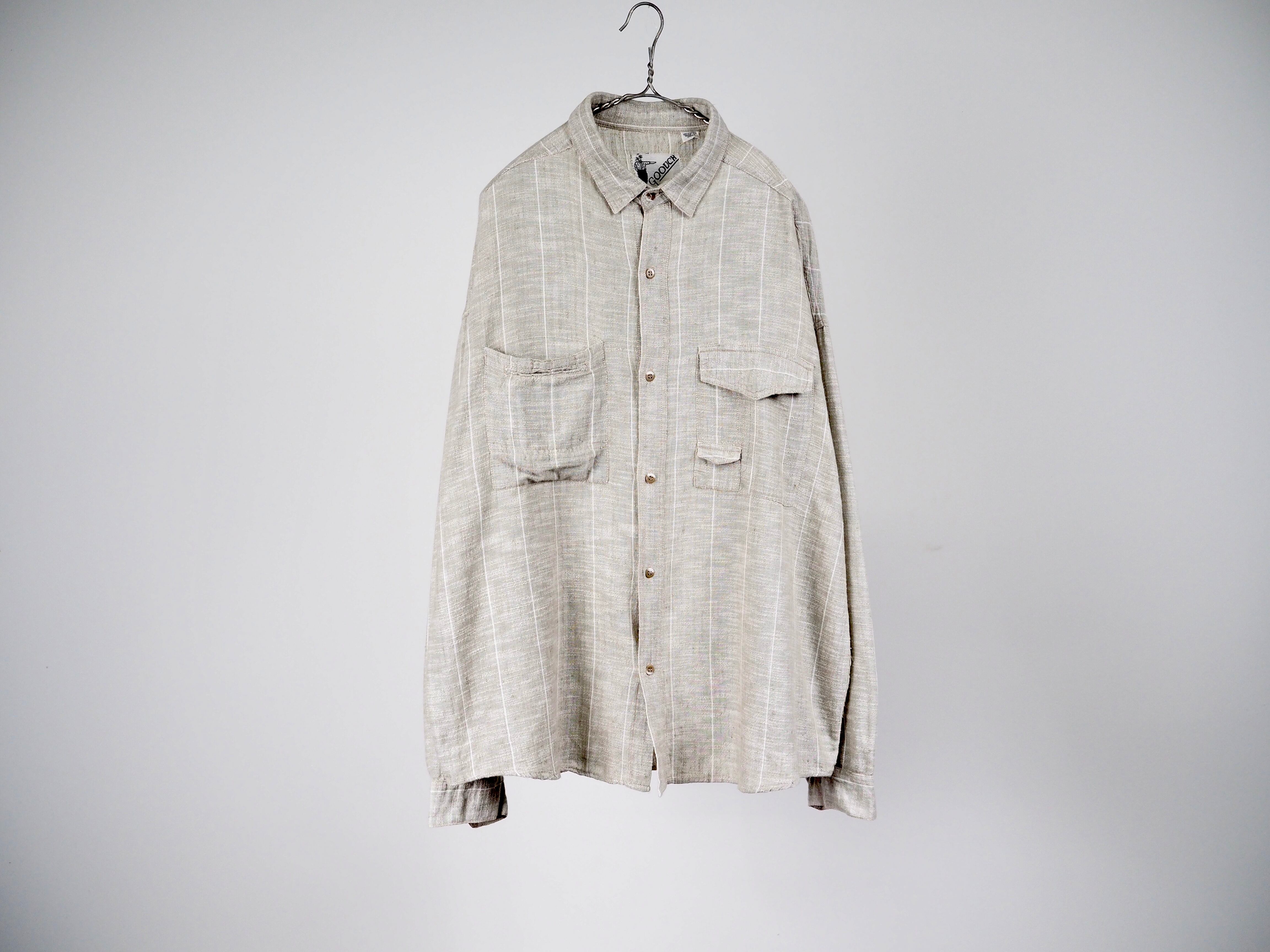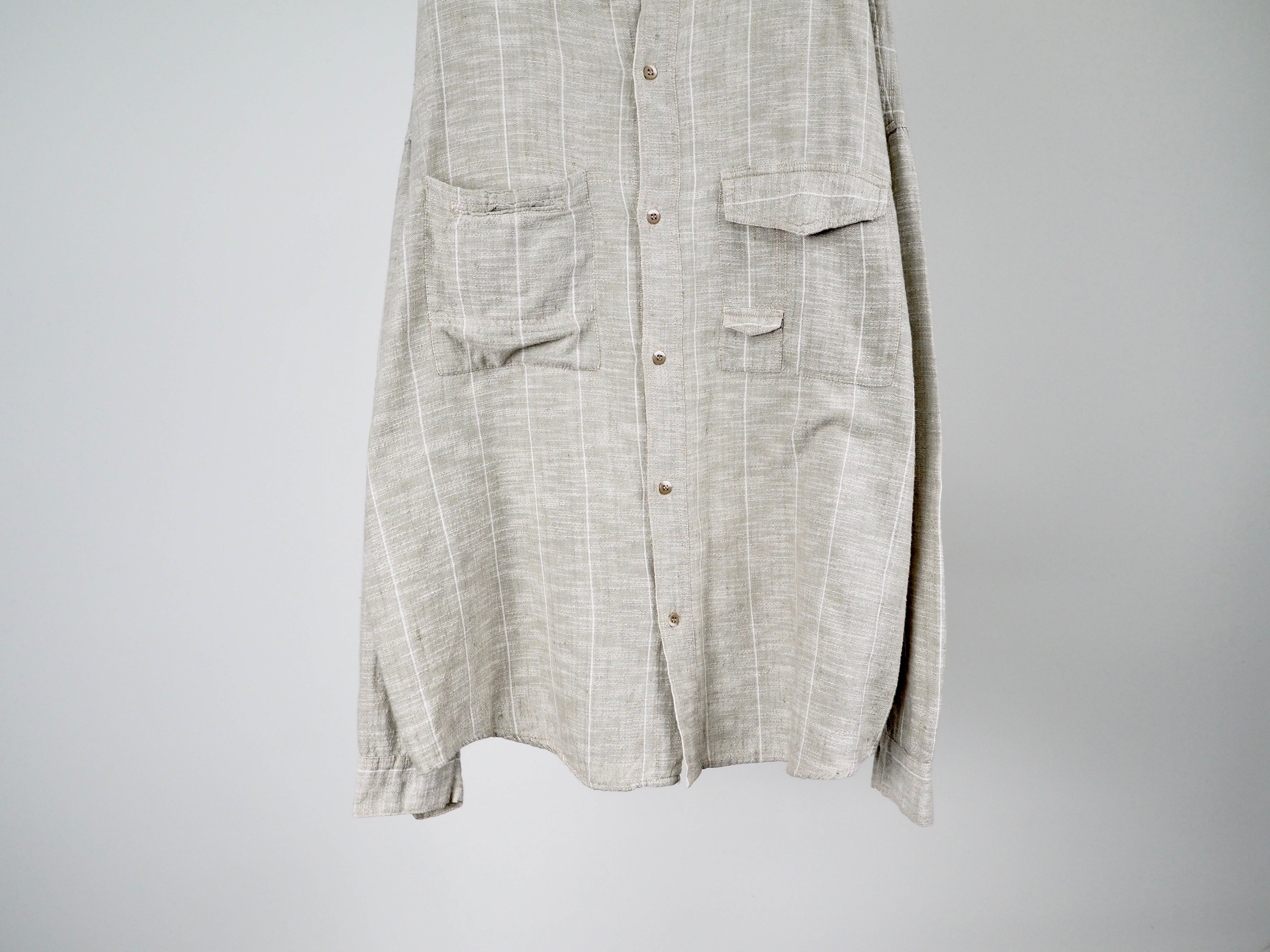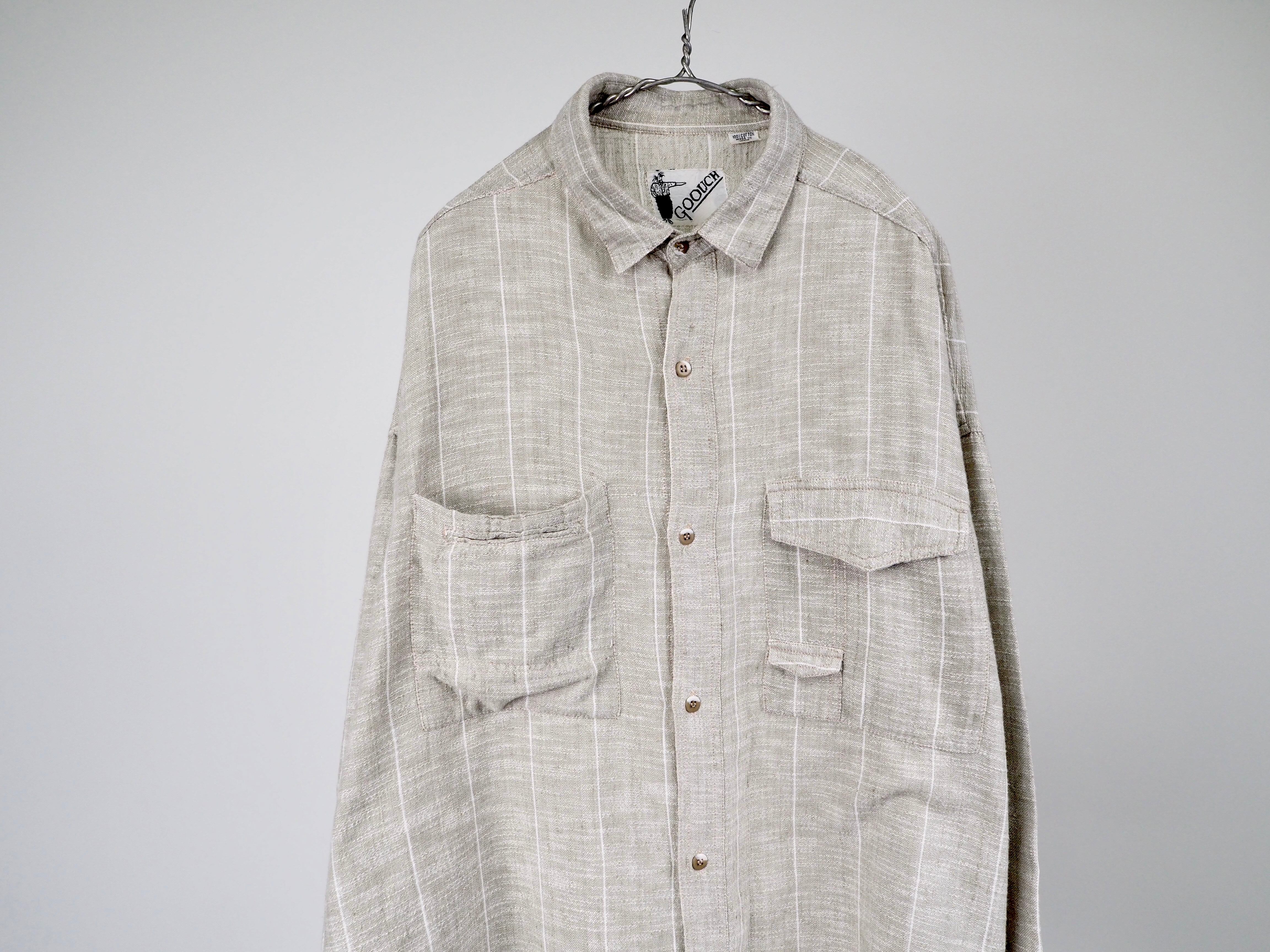 GOOUCH unusual pocket stripe L/S shirt XL / made in INDIA