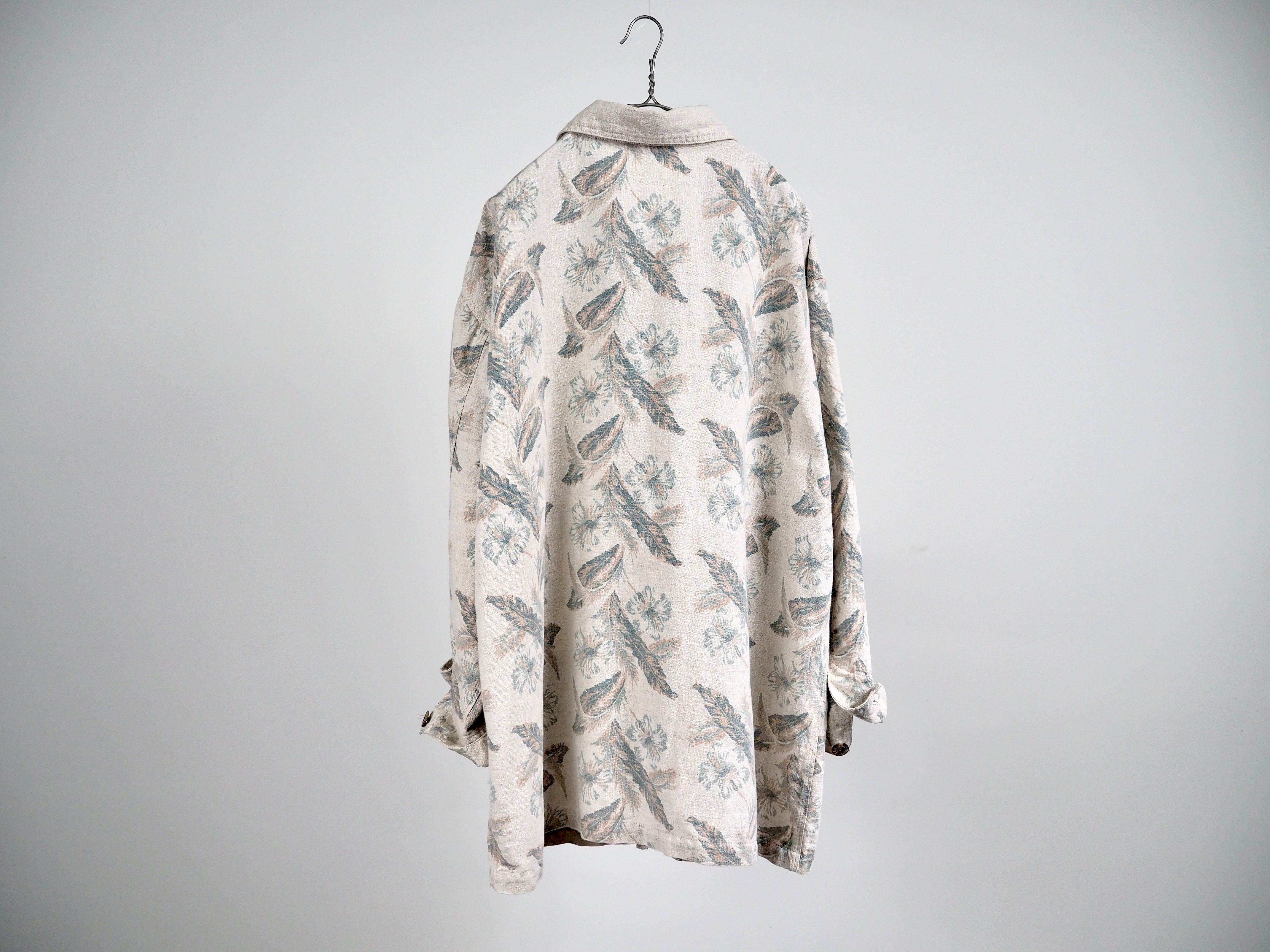 リネン混紡の粗めの織りながらゴワつきはなく、ビッグサイズで落ちるシルエット。