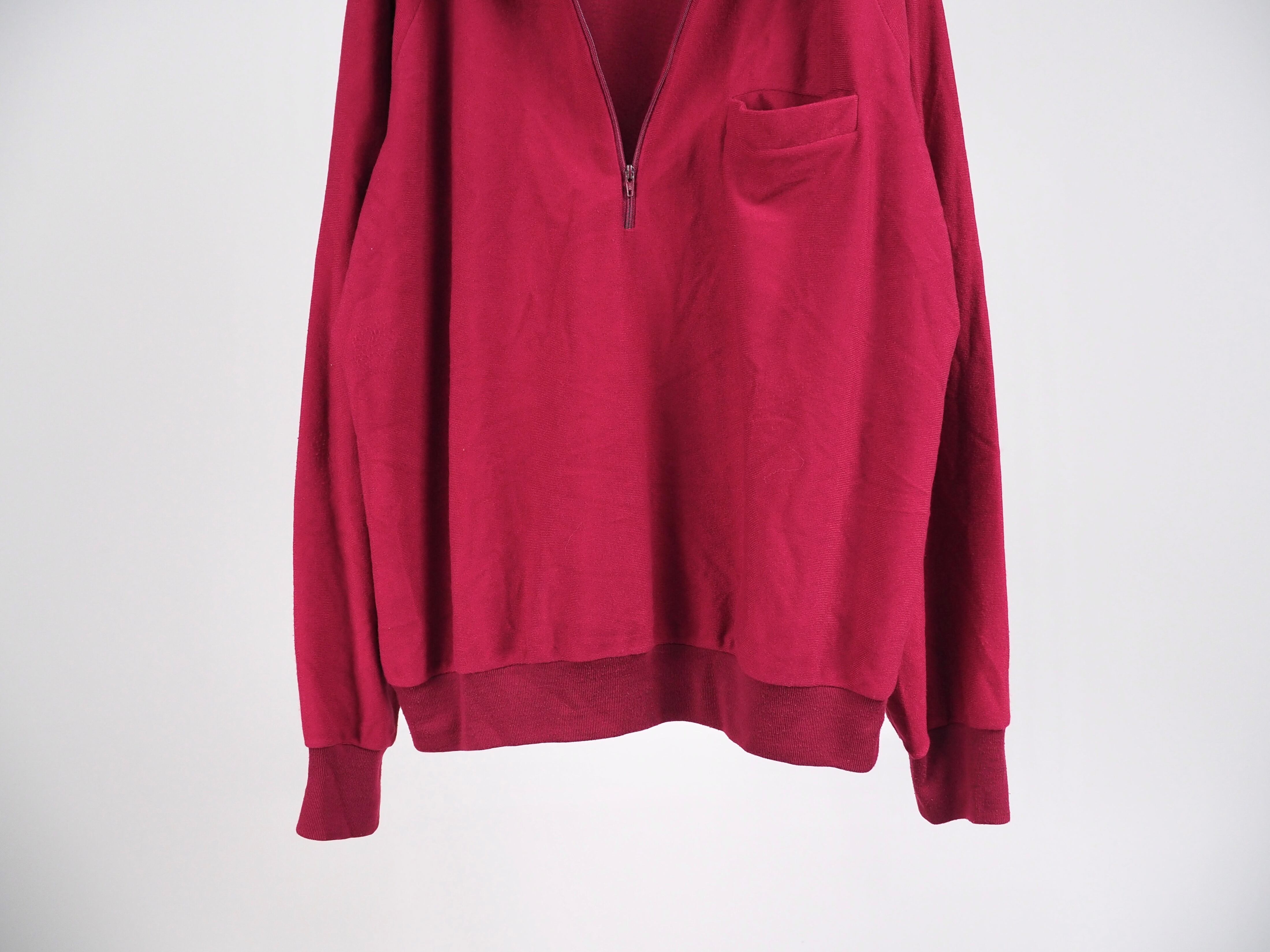 ポリエステル100%、ハーフジップのプルオーバートップス。