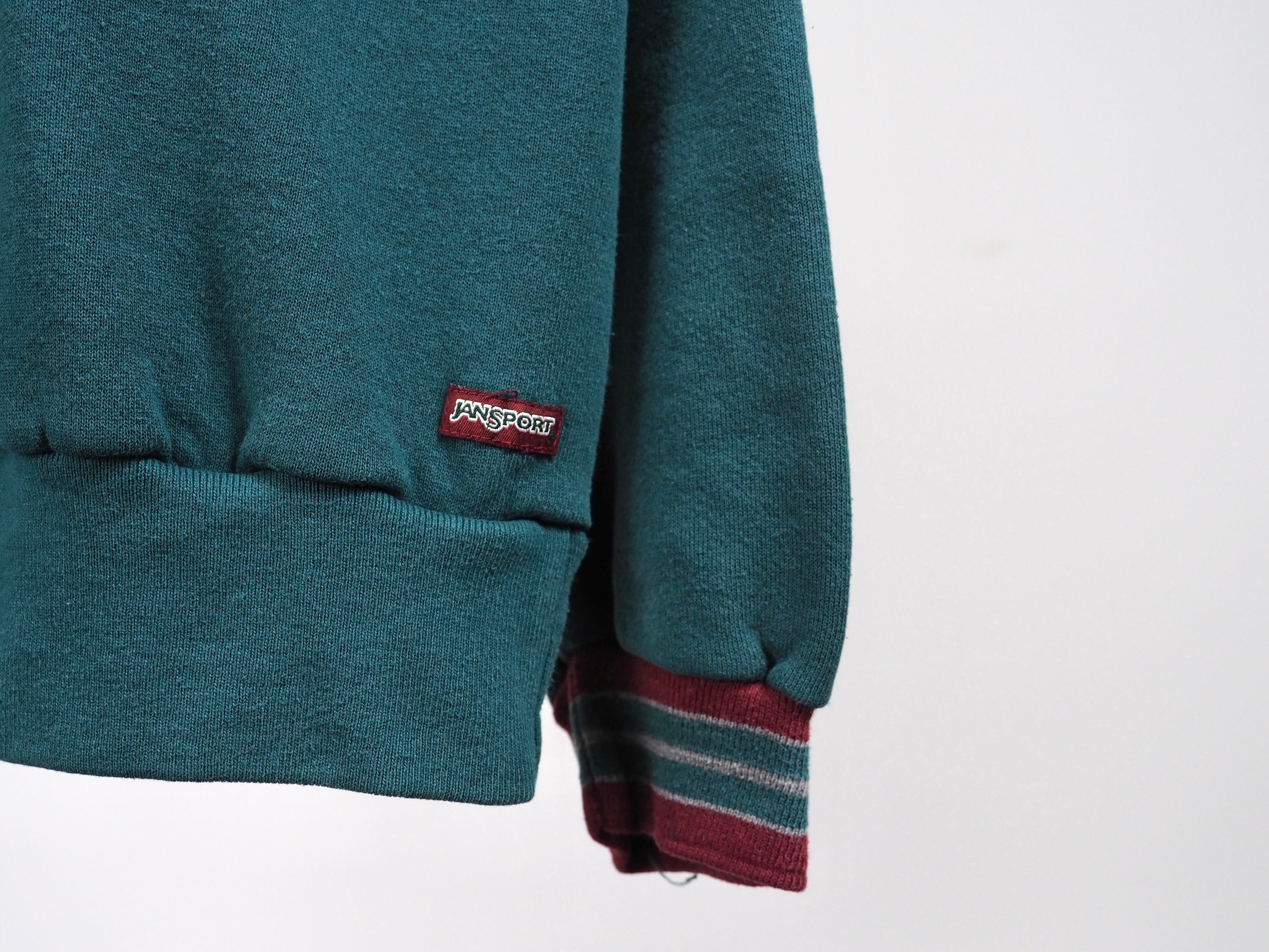 90's JANSPORT striped rib sweatshirt XL /made in USA /green