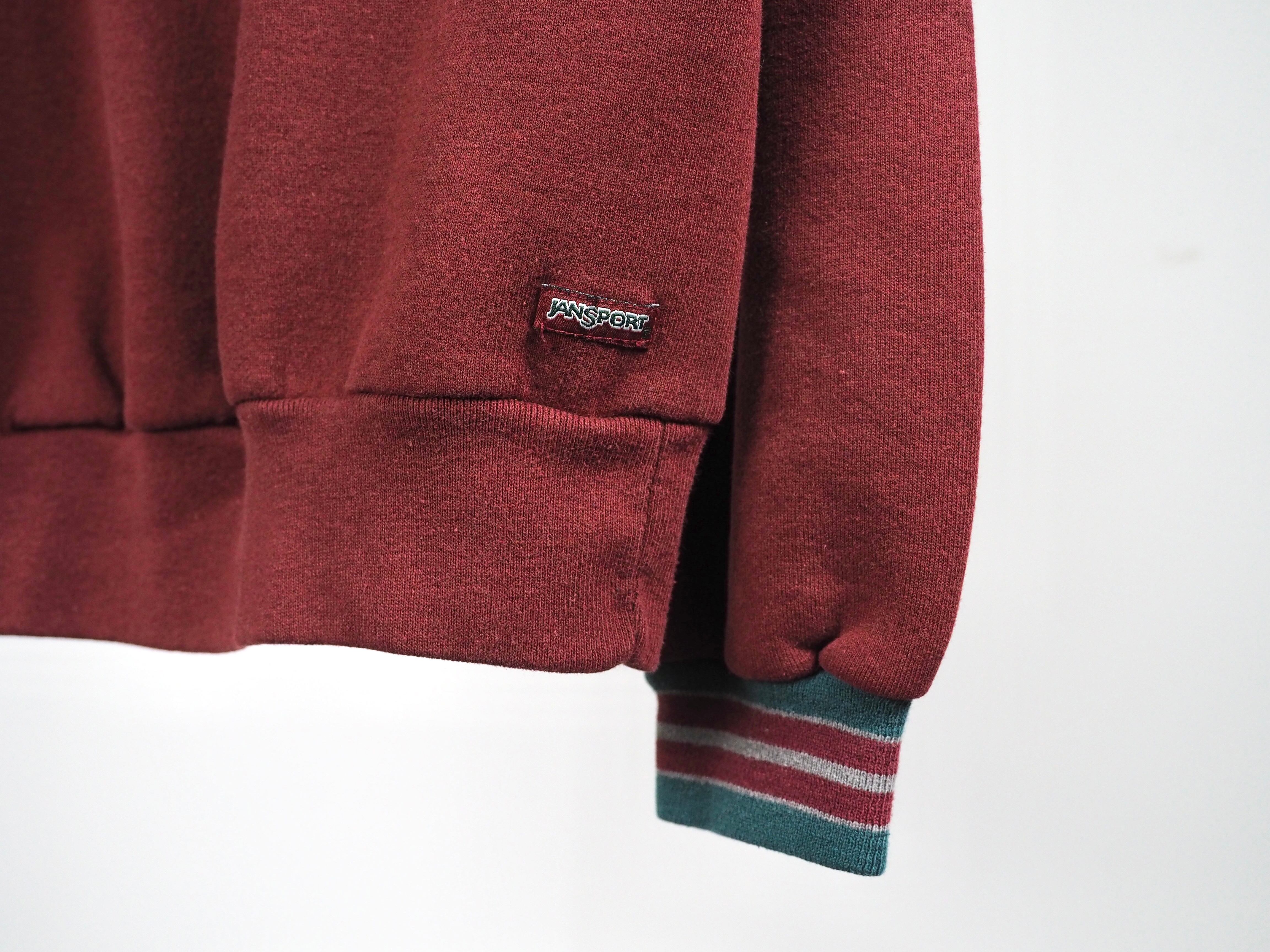 90's JANSPORT striped rib sweatshirt XL /made in USA /Burgundy