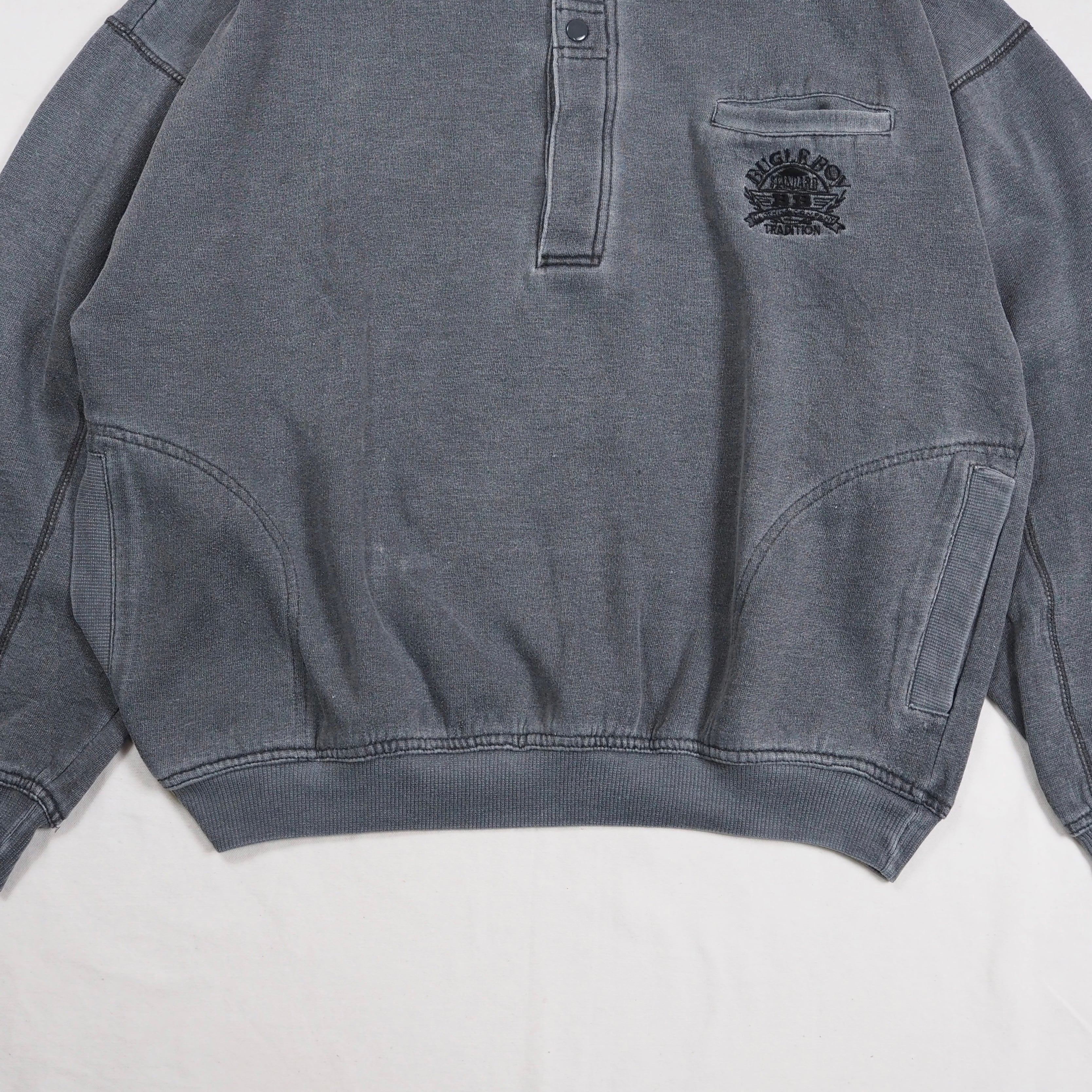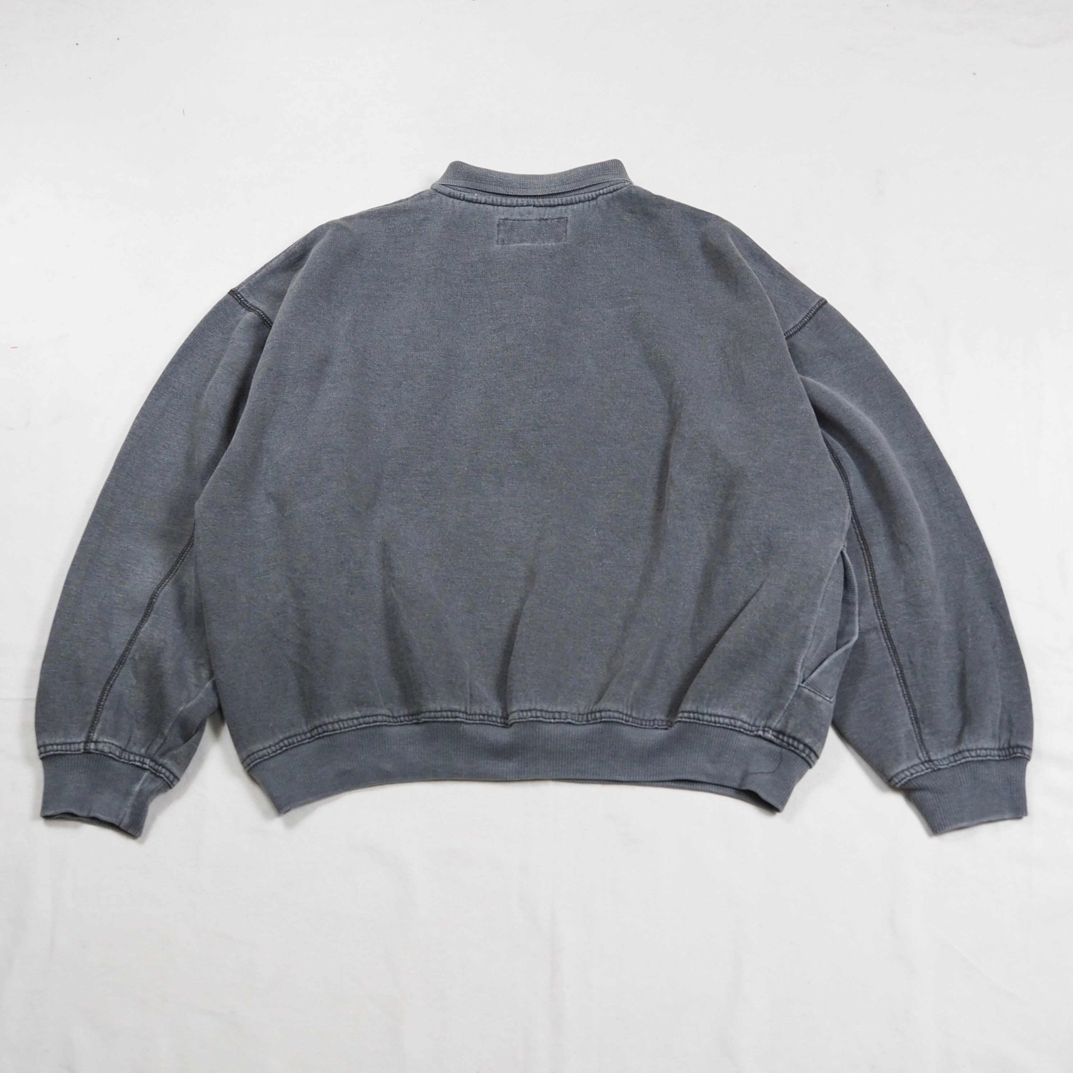 ストーンウォッシュのようなグレーカラーの襟付きプルオーバースウェット。