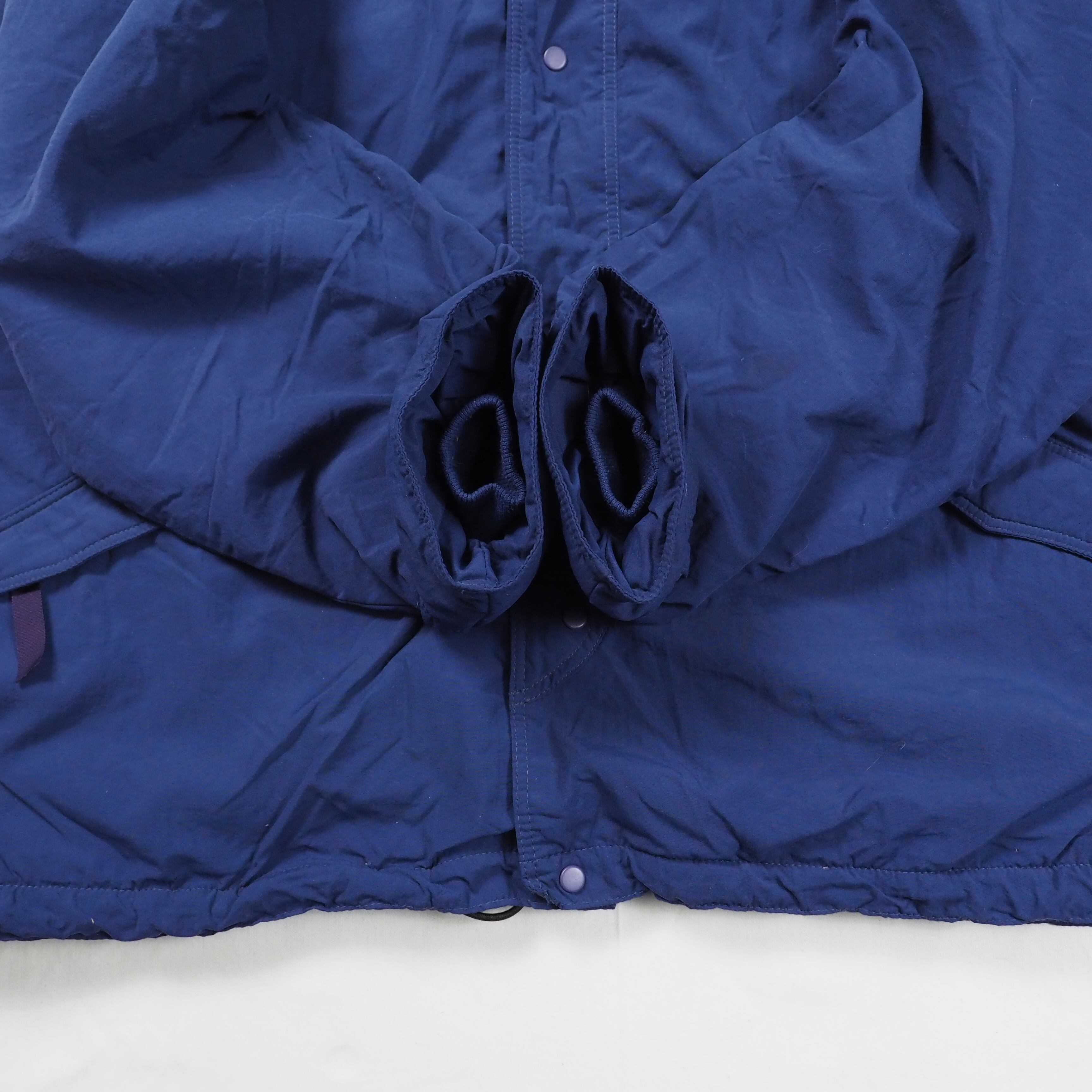 フロントはジッパー+スナップ留め、裾ドローコード、袖先内側はリブ仕様。