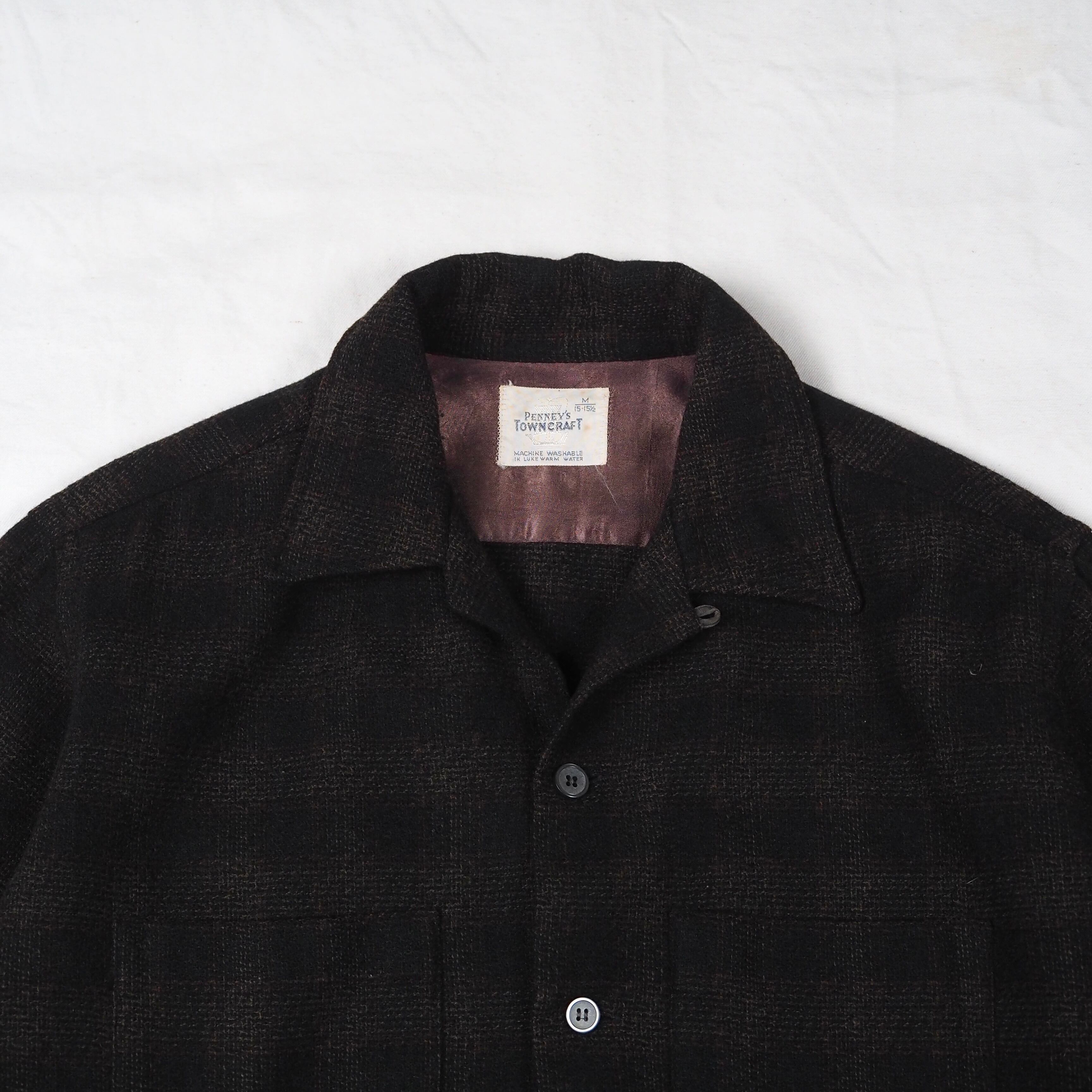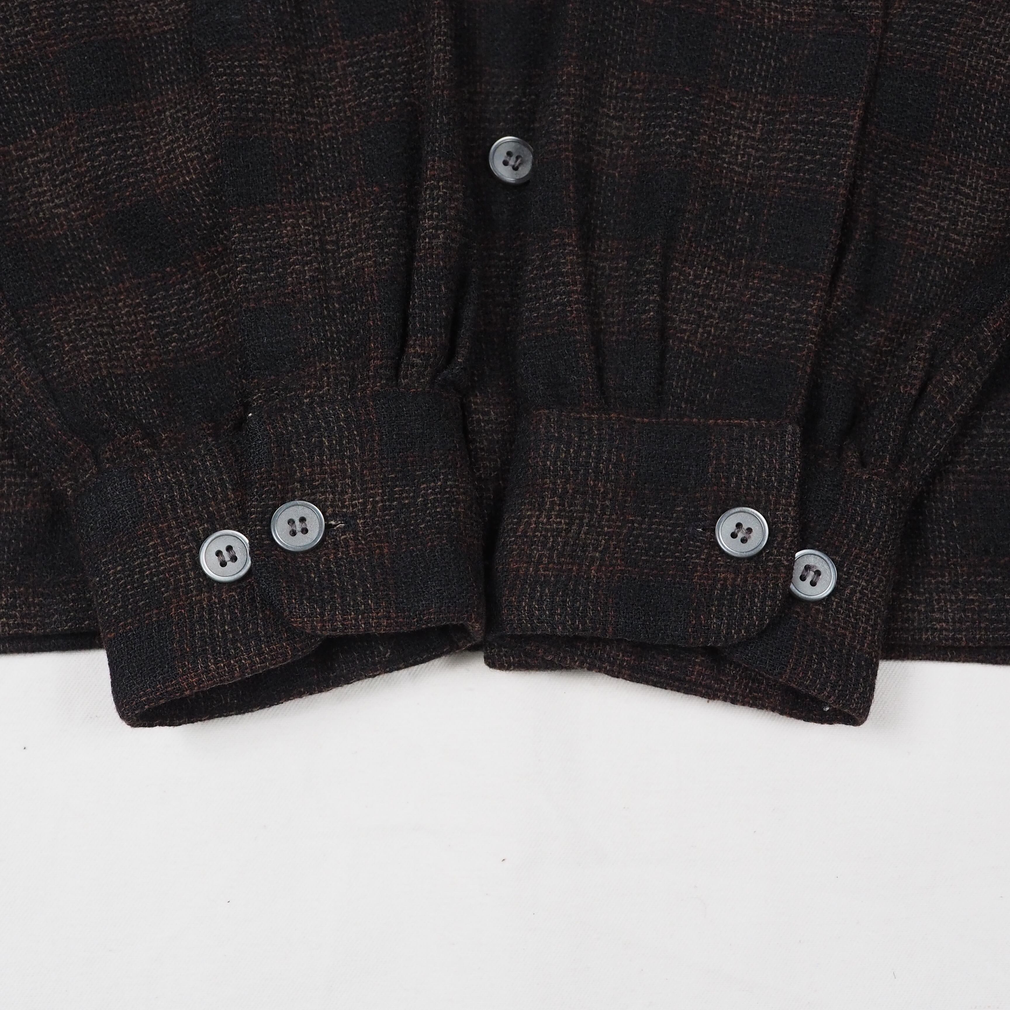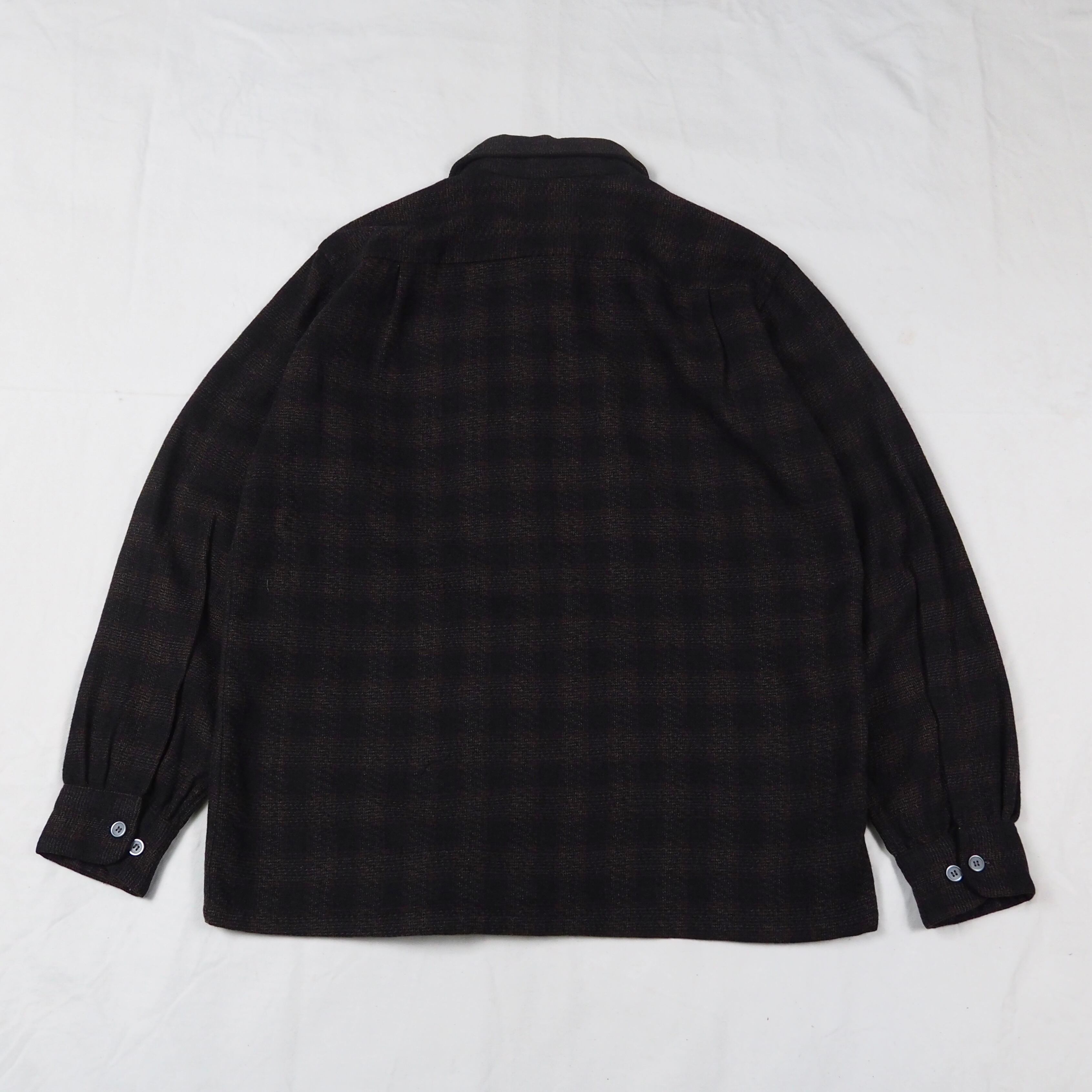 ループ留めのオープンカラー、ボックスシルエットのウールシャツ。