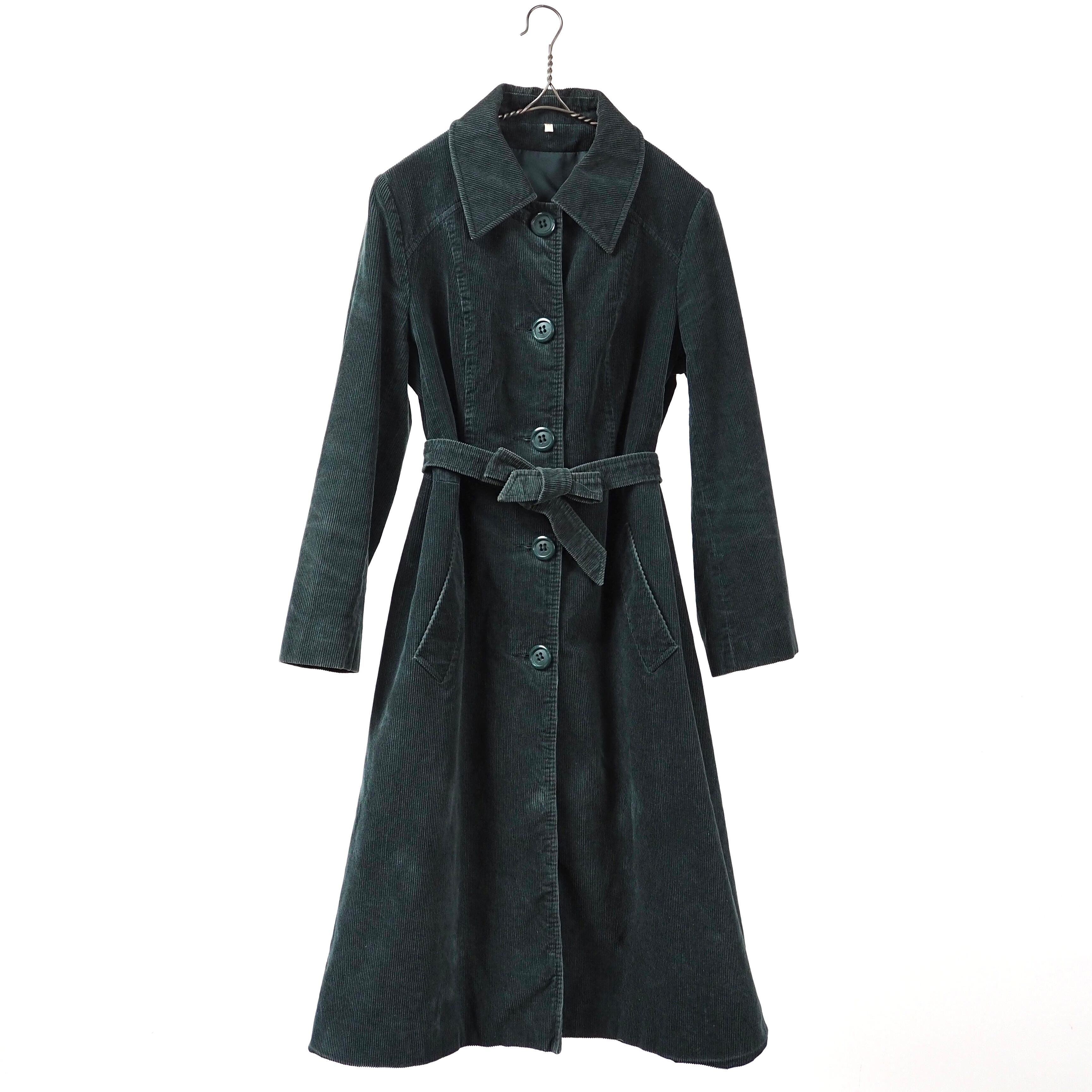FRANCE製、コーデュロイ生地のベルテッドロングコート。
