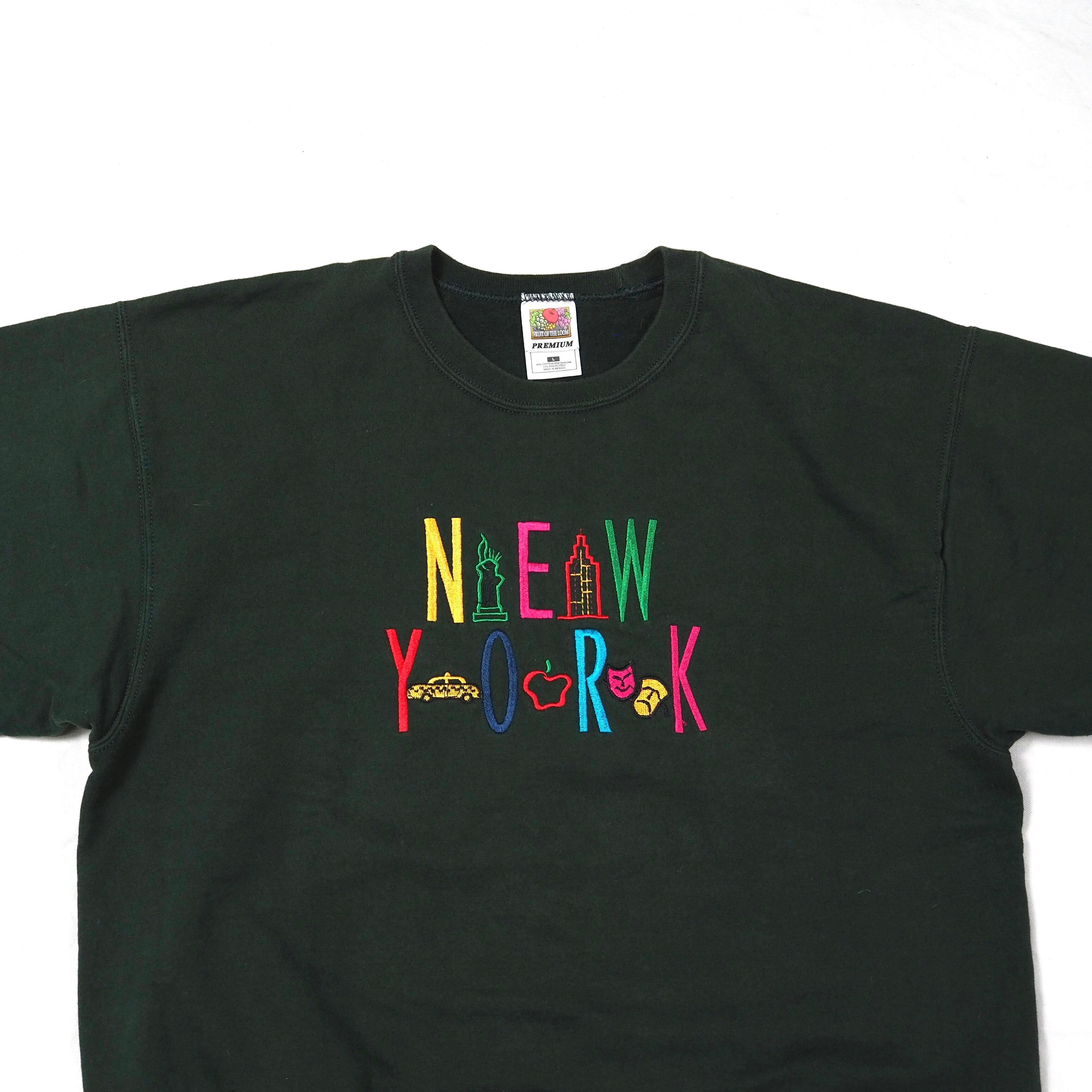 90's NEW YORK souvenir embroidered sweatshirt L/dark green