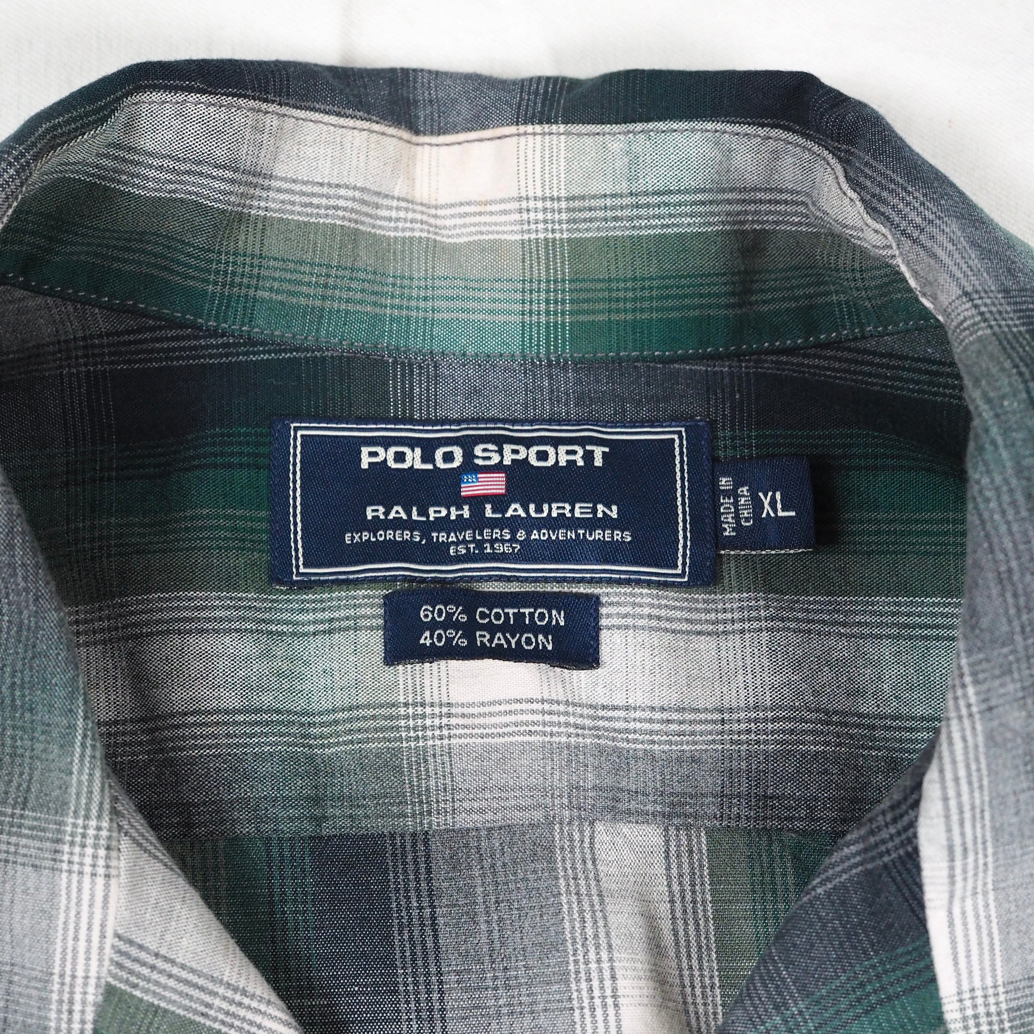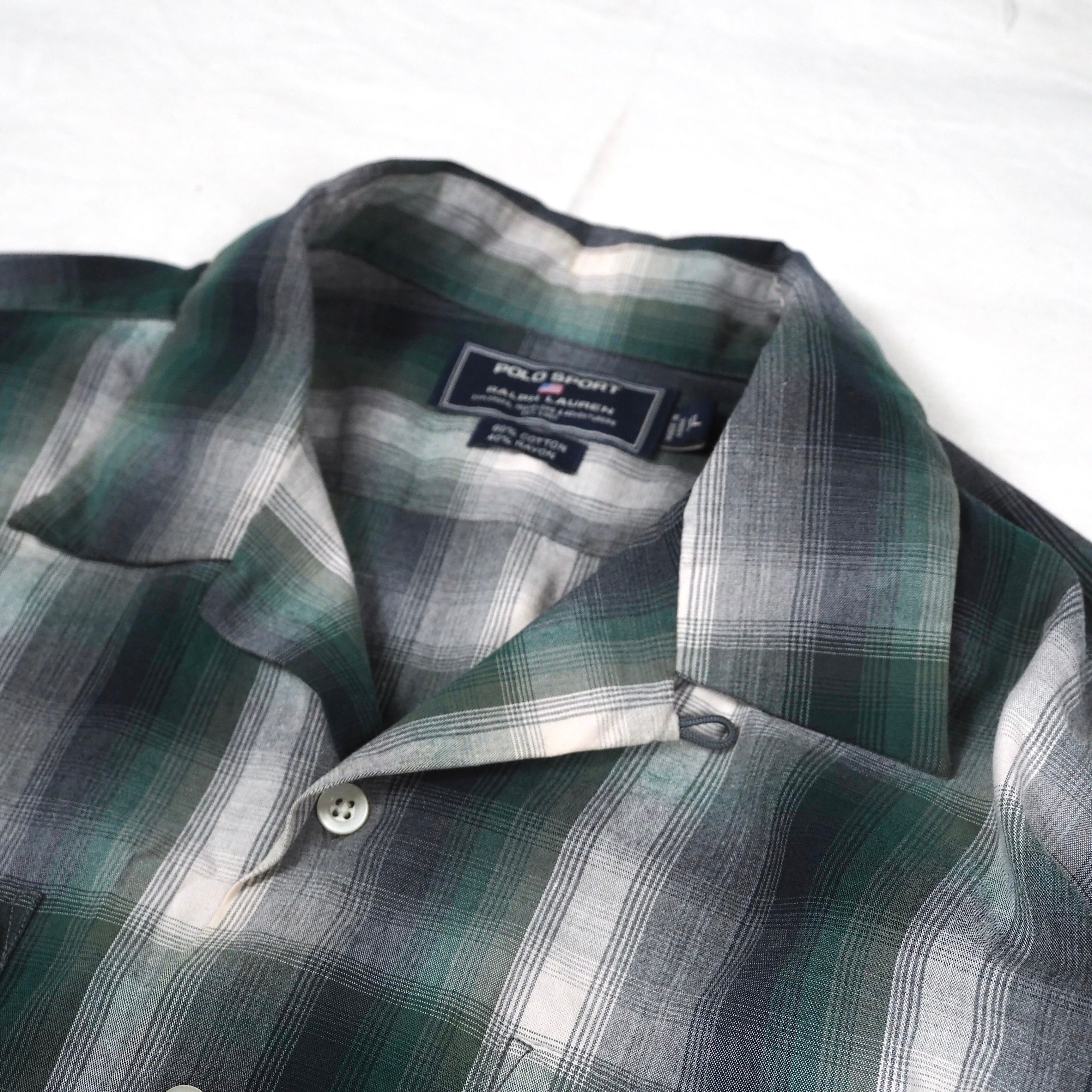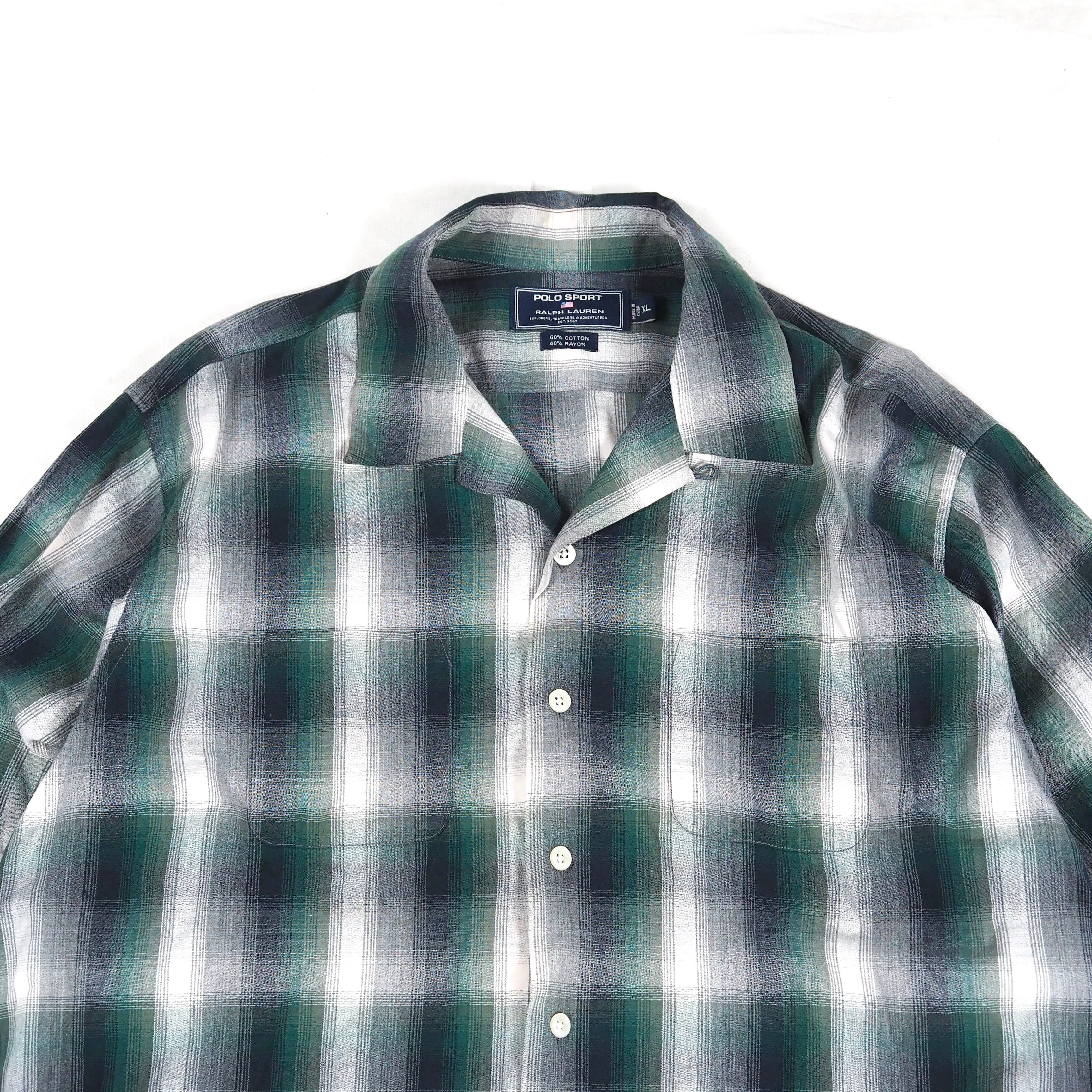 POLO SPORTS RALPH LAUREN ombre check open collar l/s shirt XL
