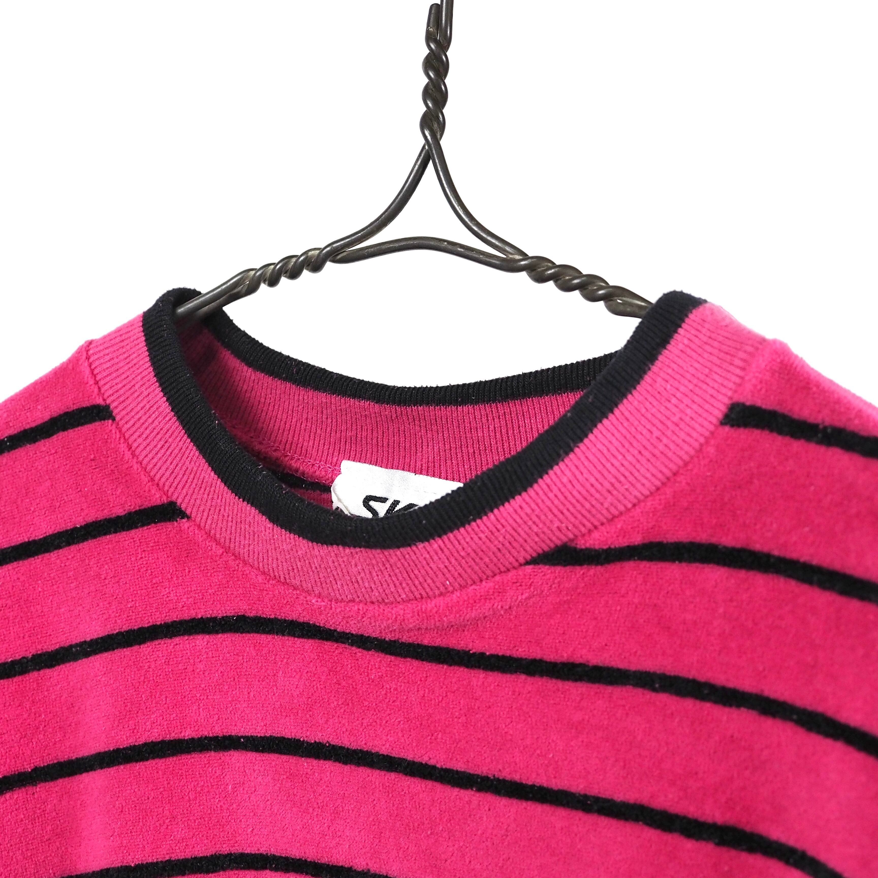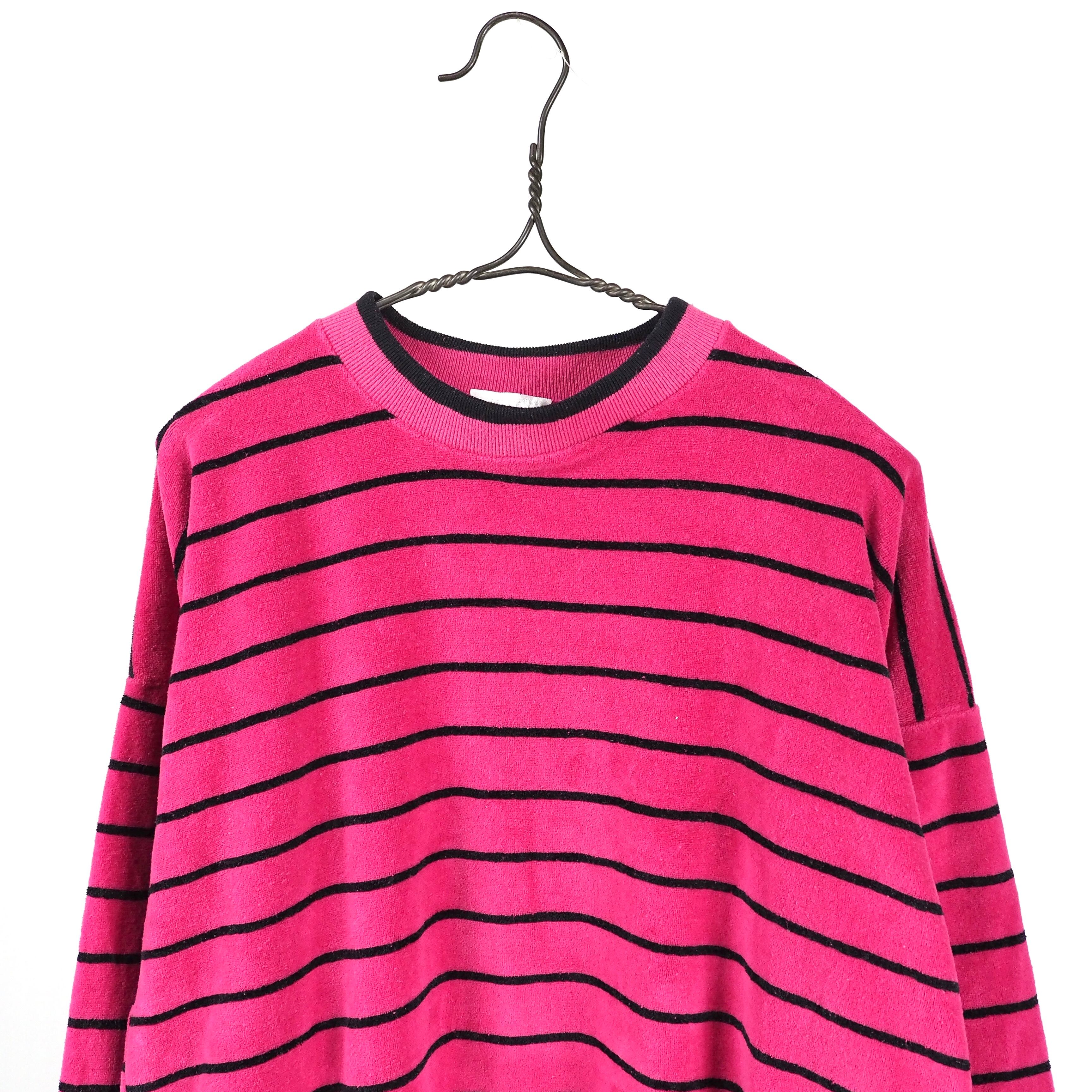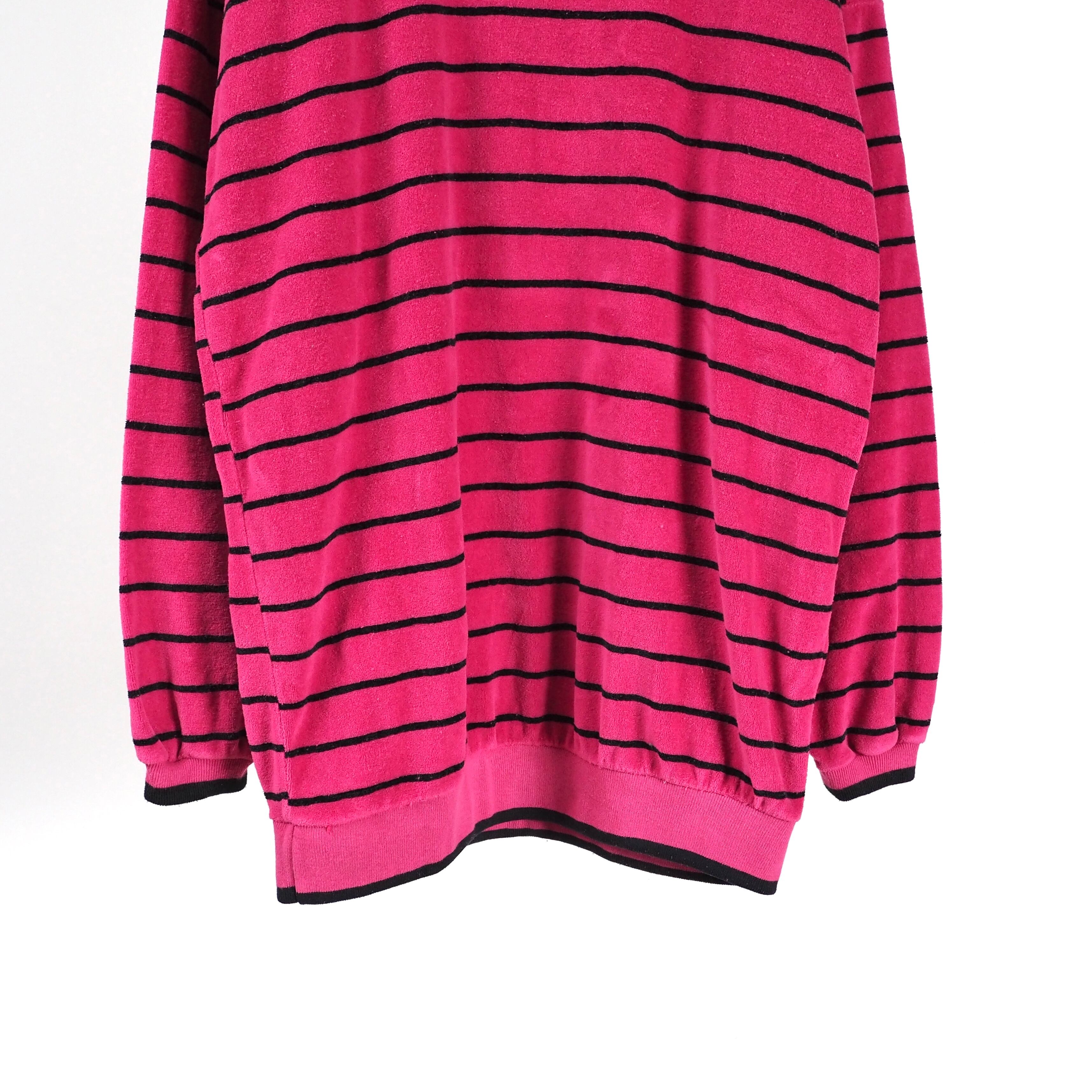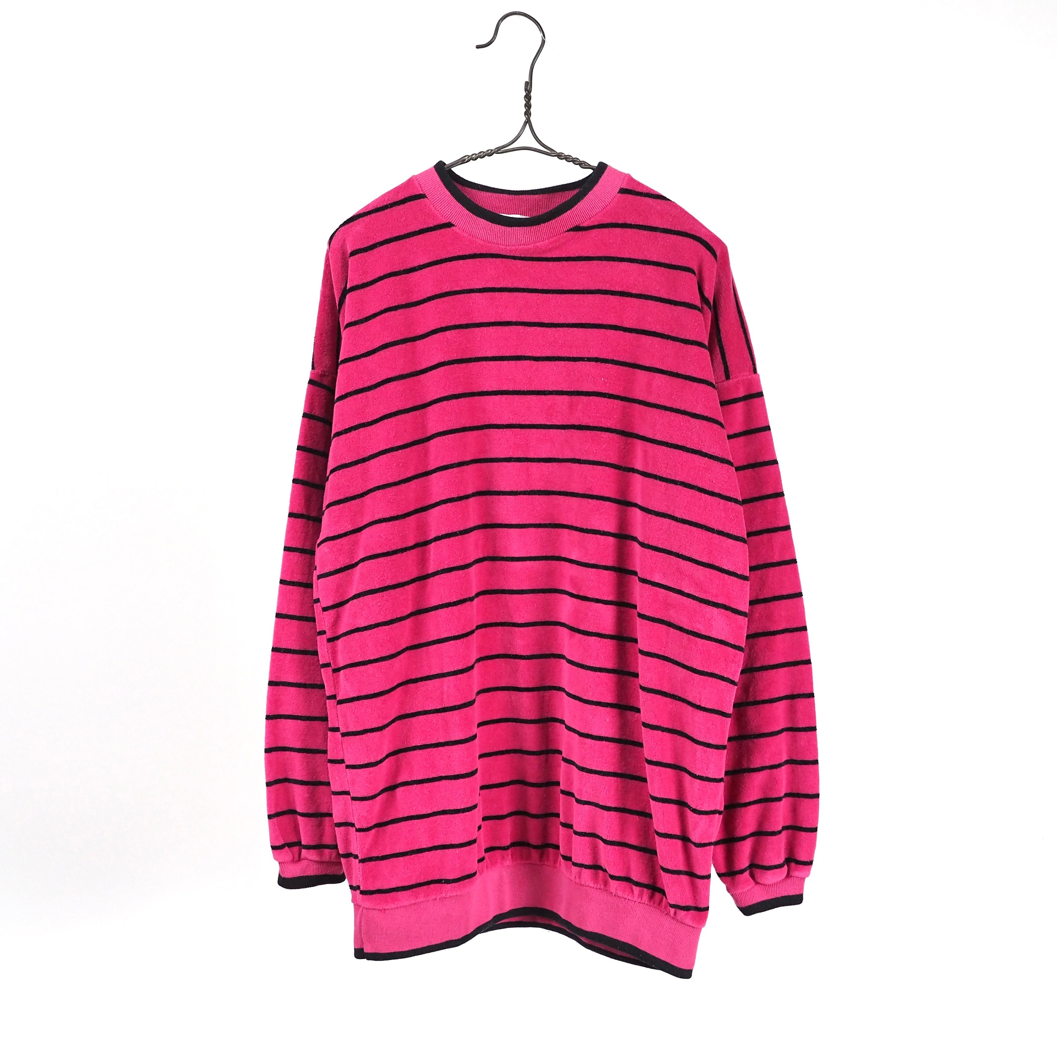 USA製、ピンク×ブラックのベルベット生地のプルオーバースウェット。