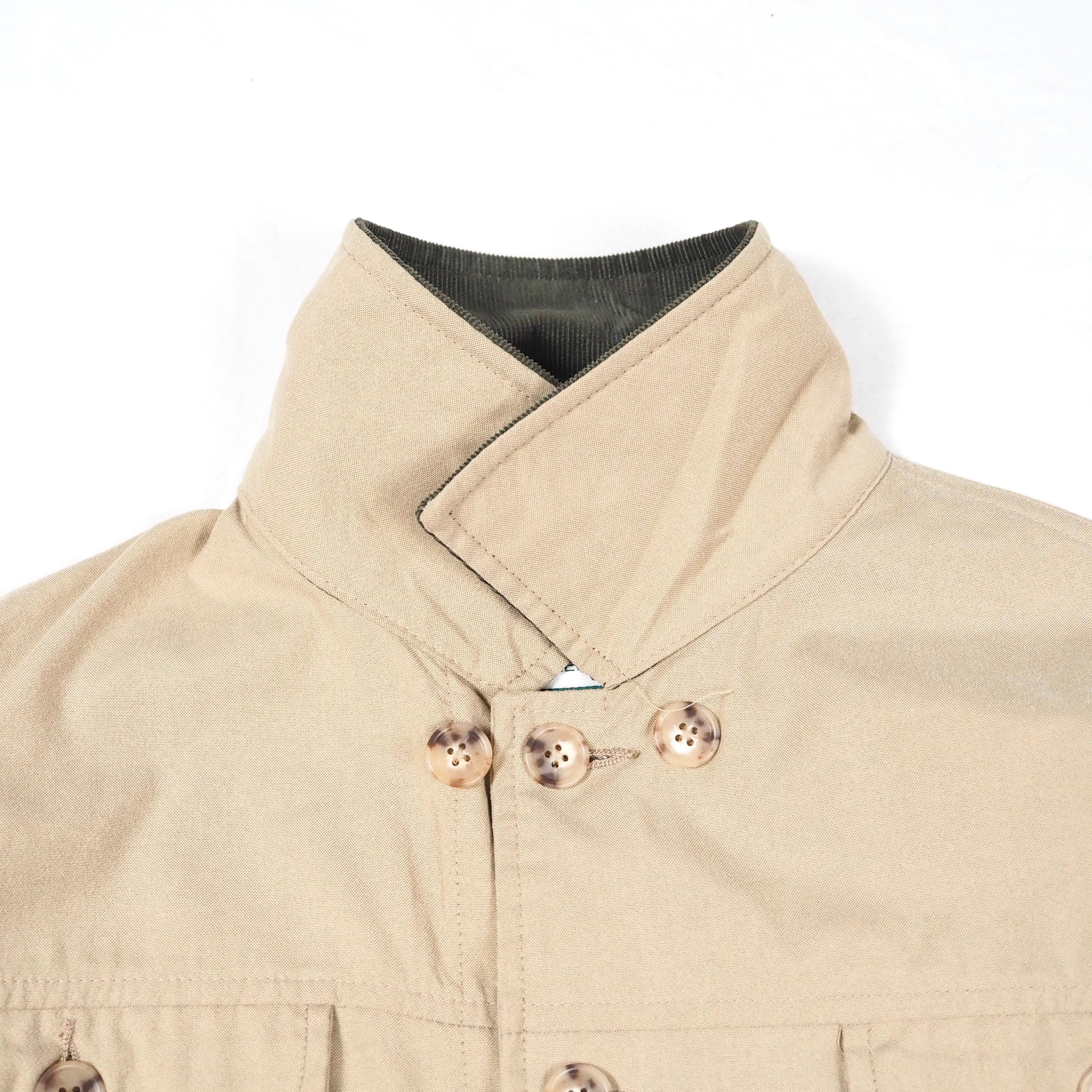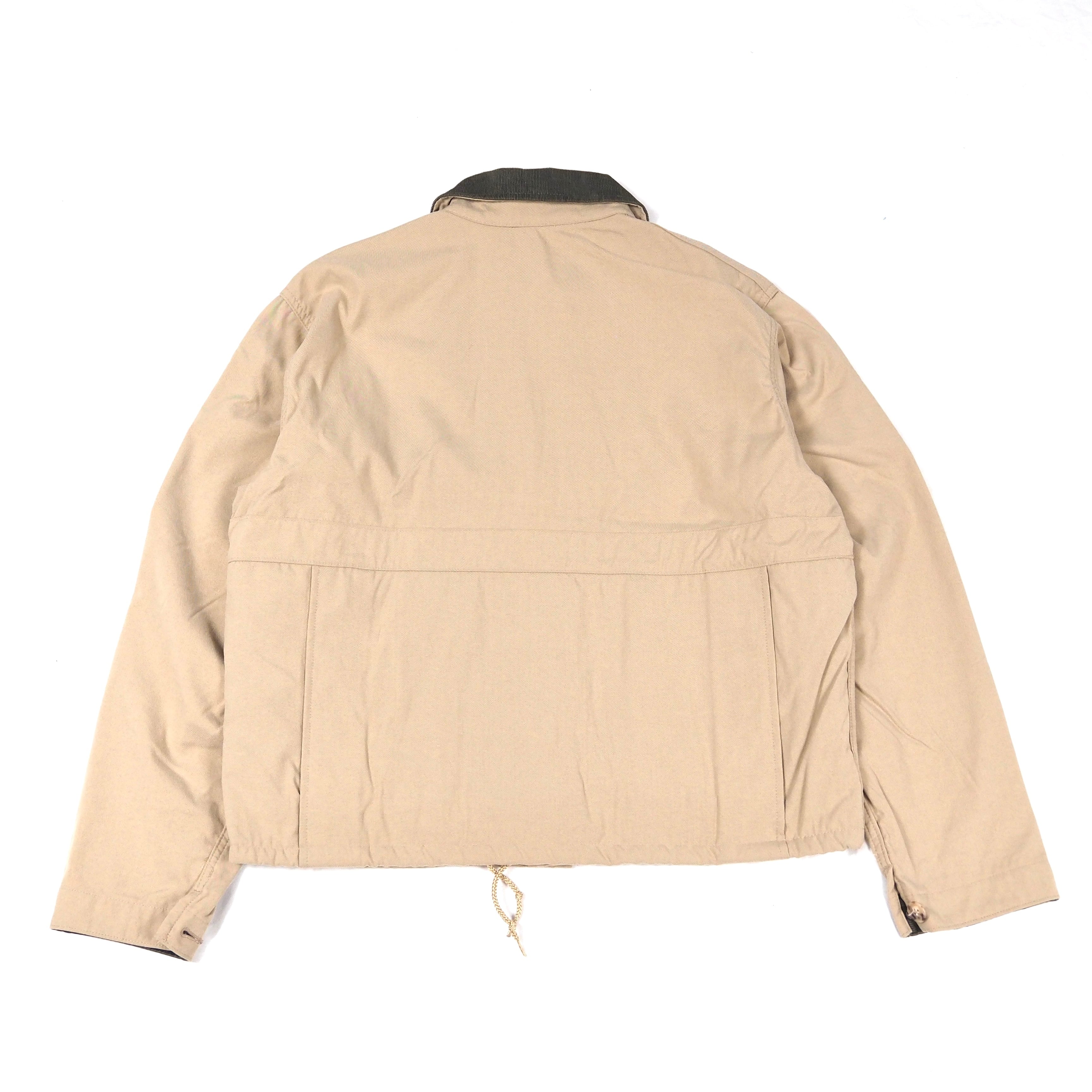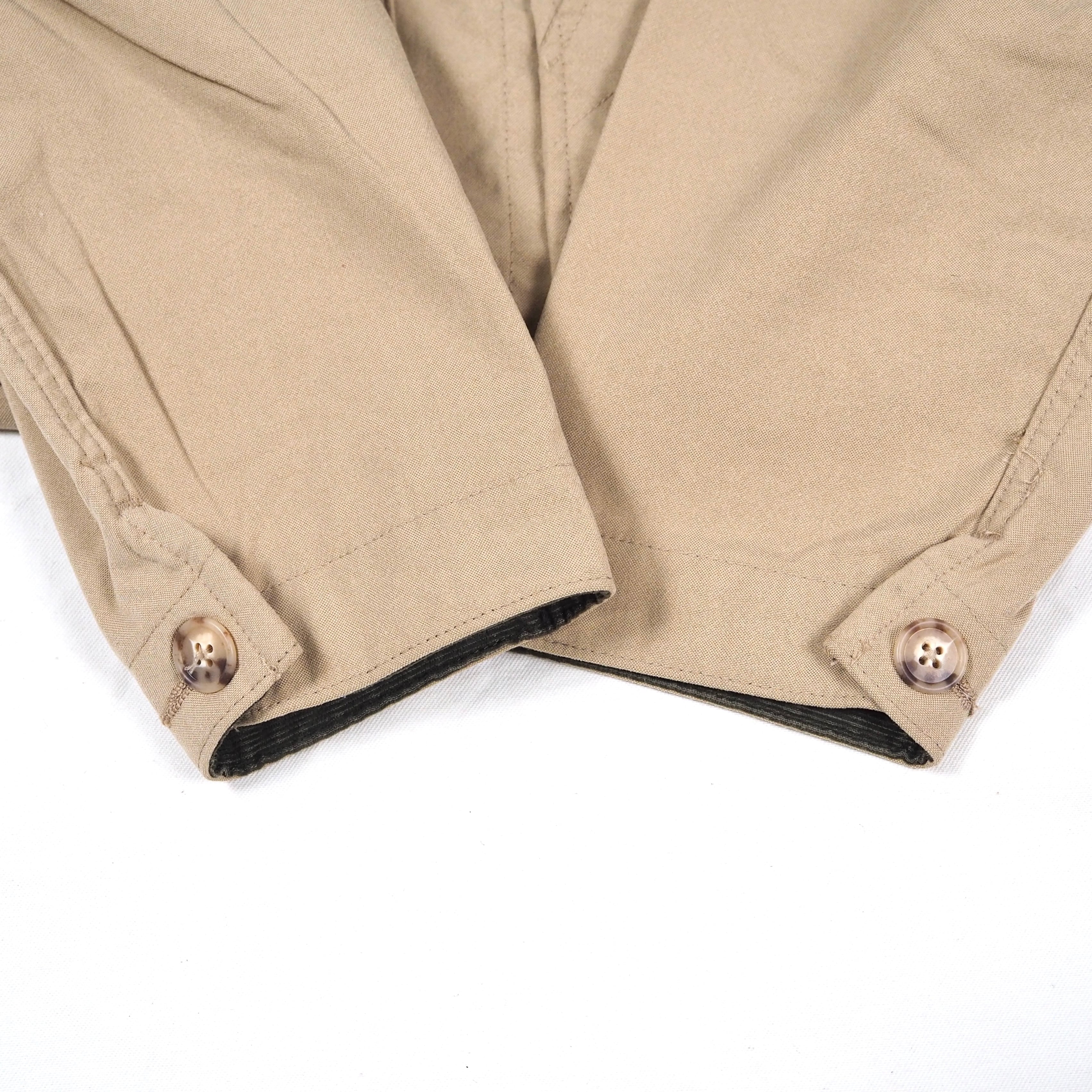 襟や袖裏のコーデュロイ仕様やチンストラップ、4ポケットのフロントはwarden jacketを踏襲するデザイン。