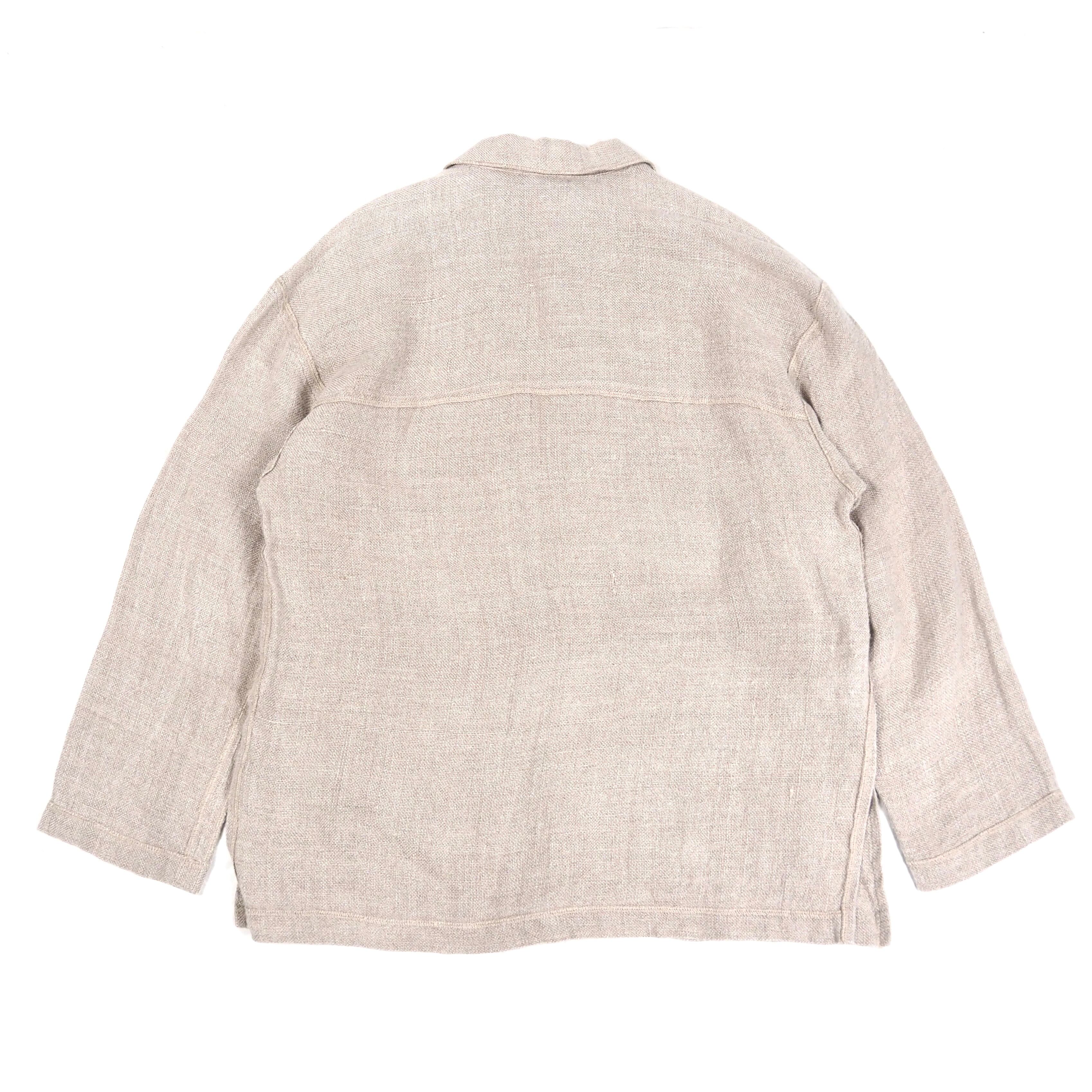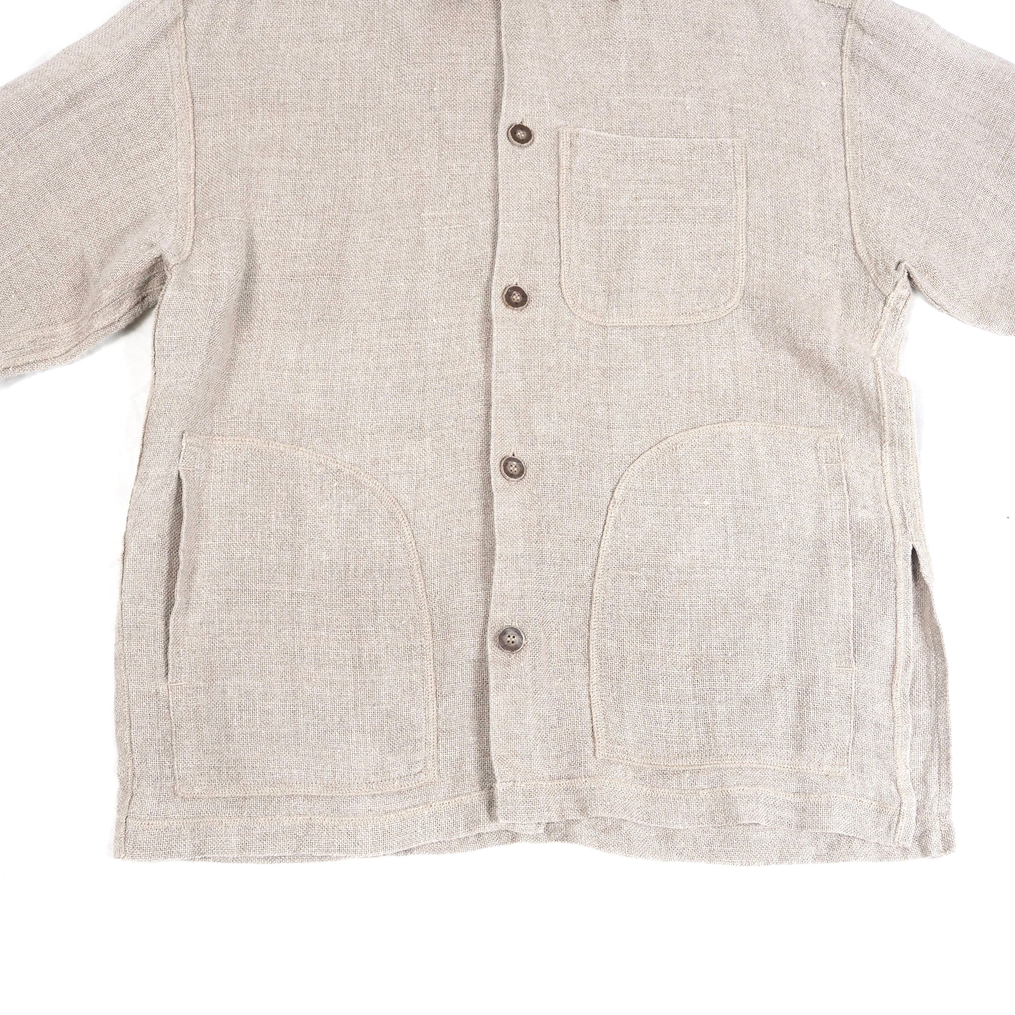 深めにサイドベンツの入ったボックスシルエットのリネンジャケット。