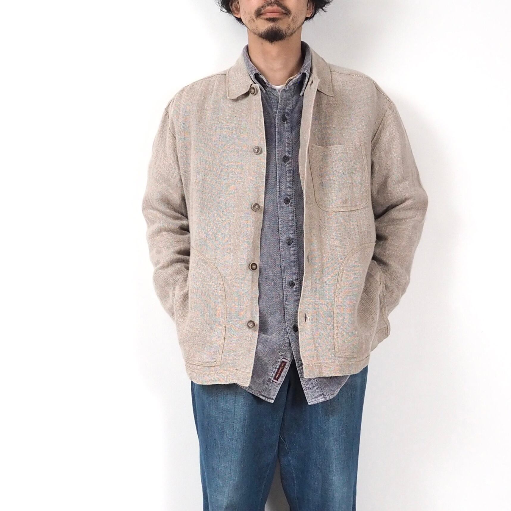 90s Liz wear【unisex】side vents linen jacket L /beige