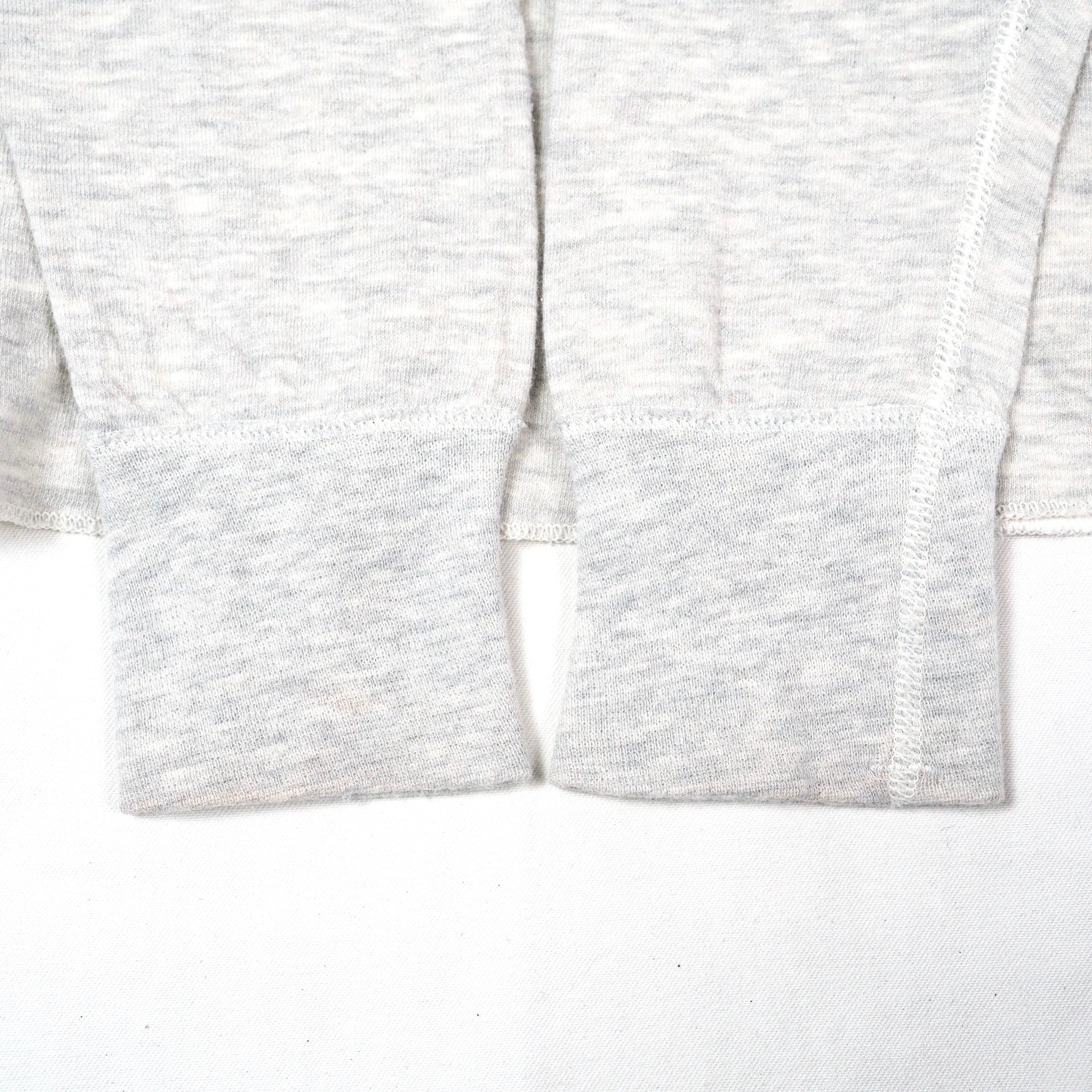 体に触れる内側の白い生地はコットン100%、外側の杢グレー生地はコットン/ウール/ナイロンの混紡。