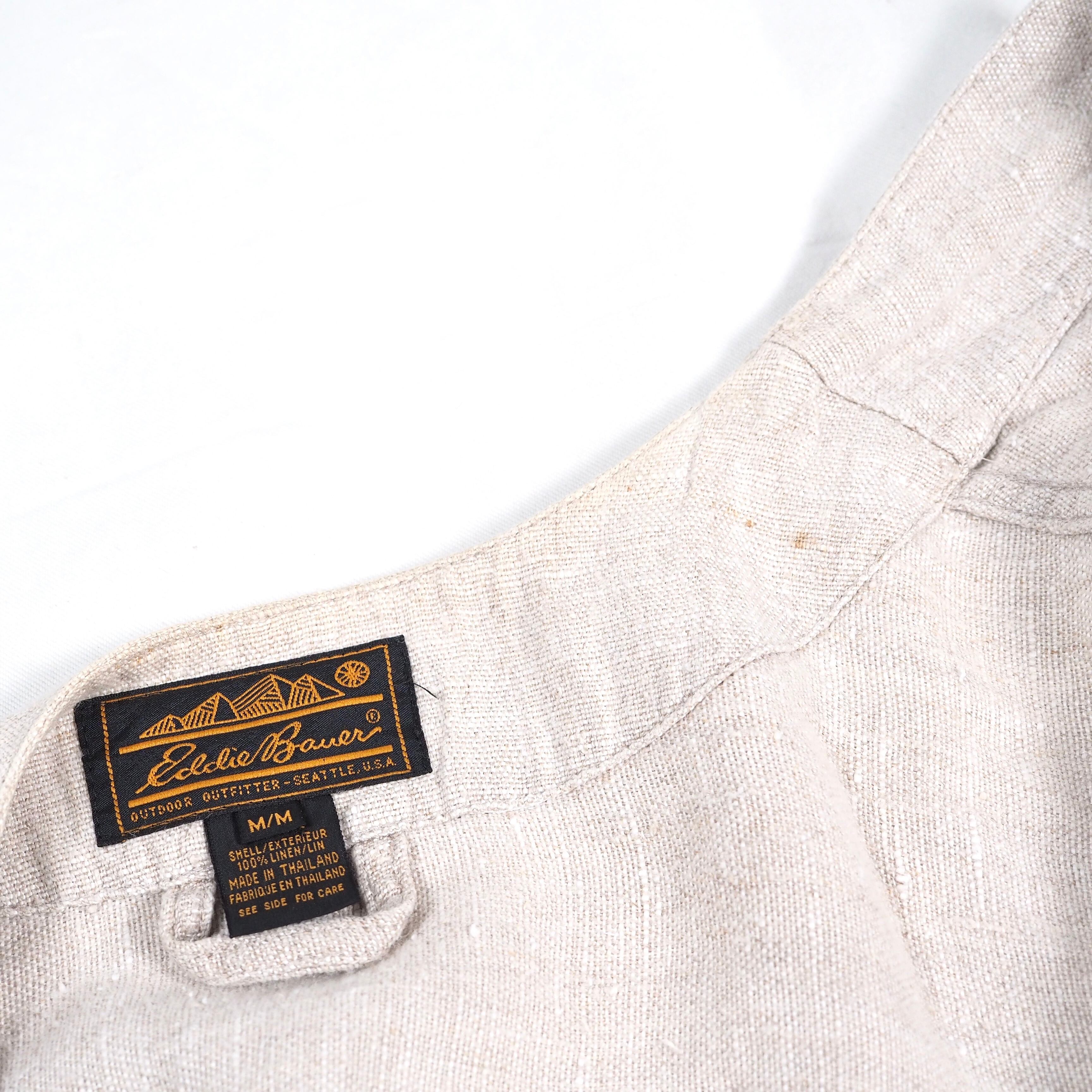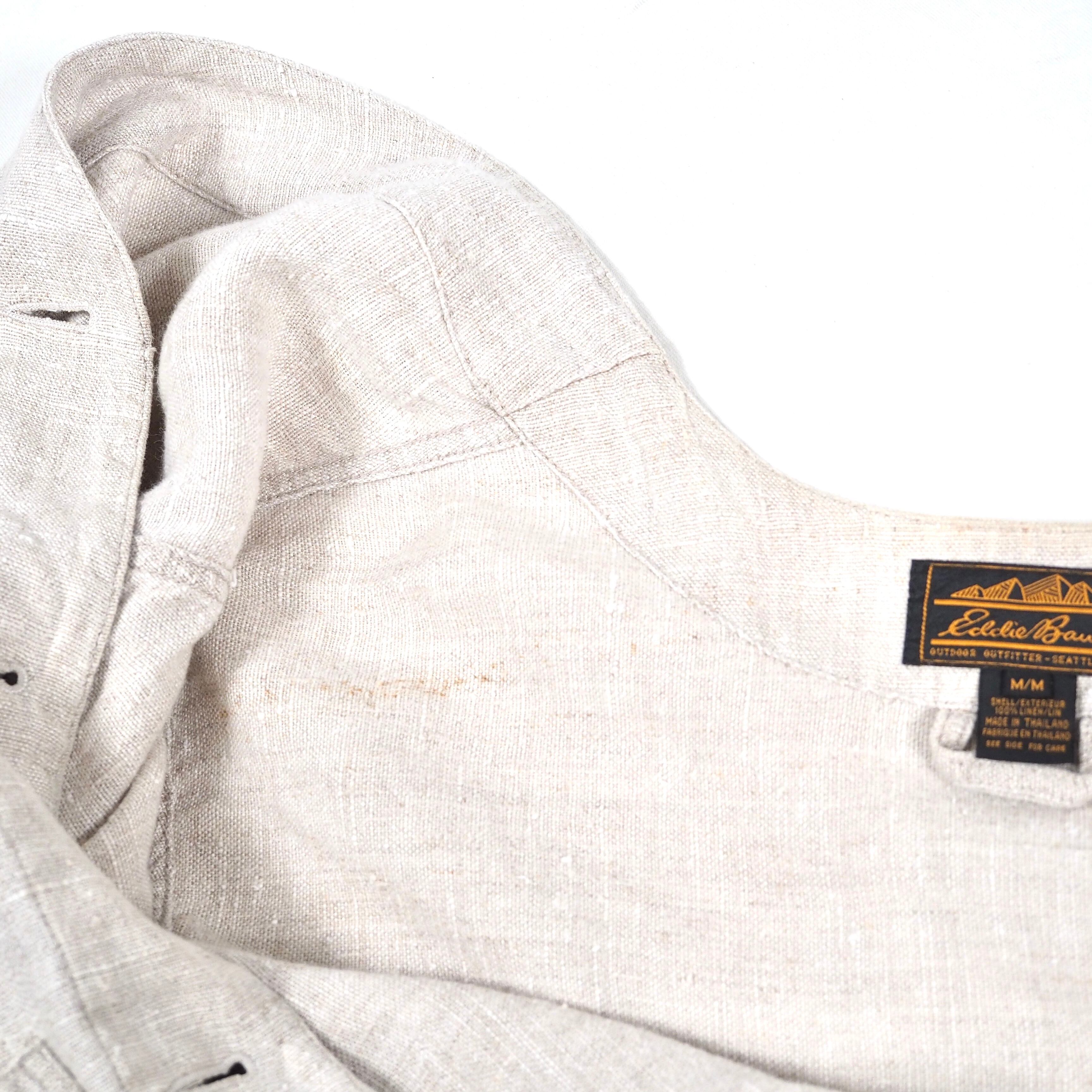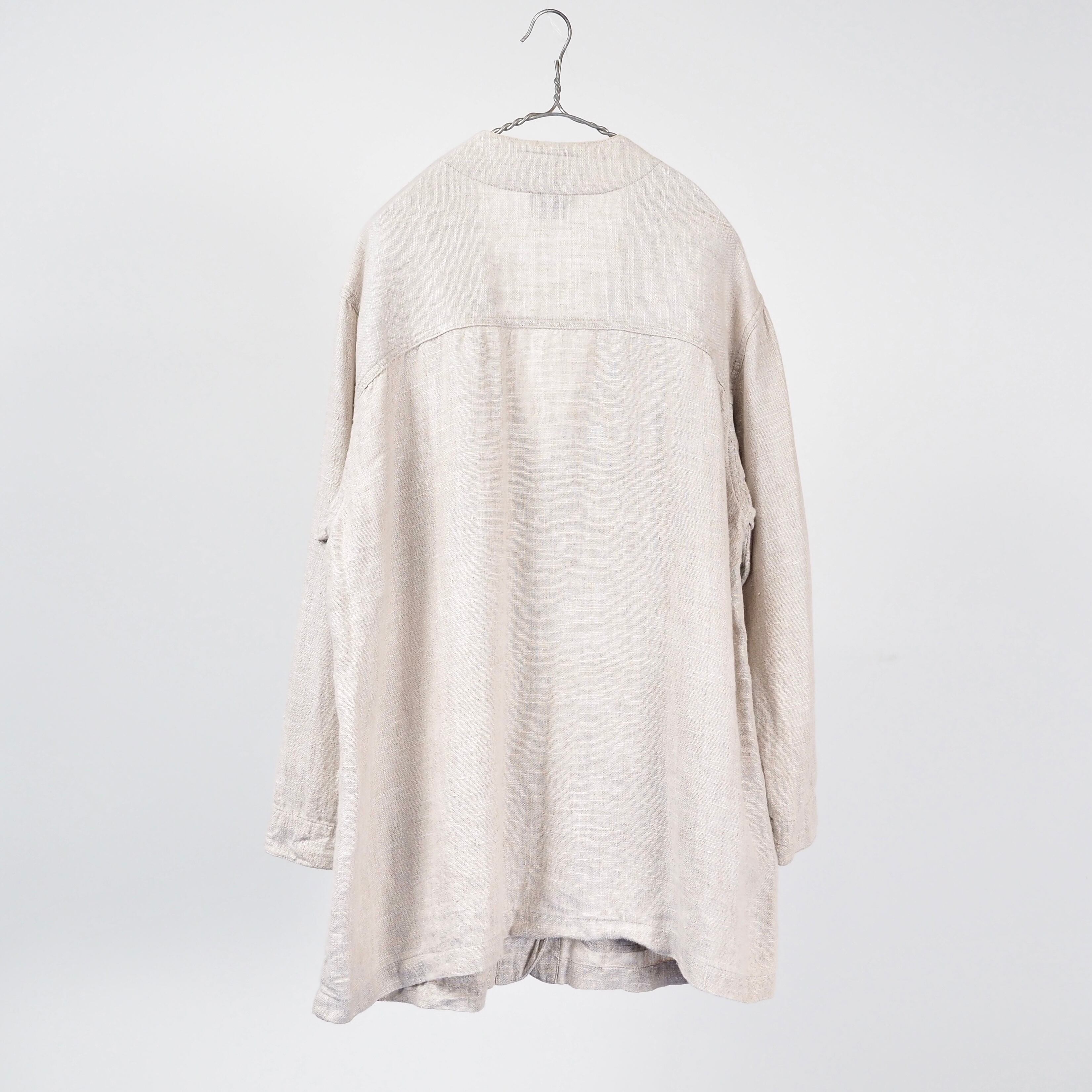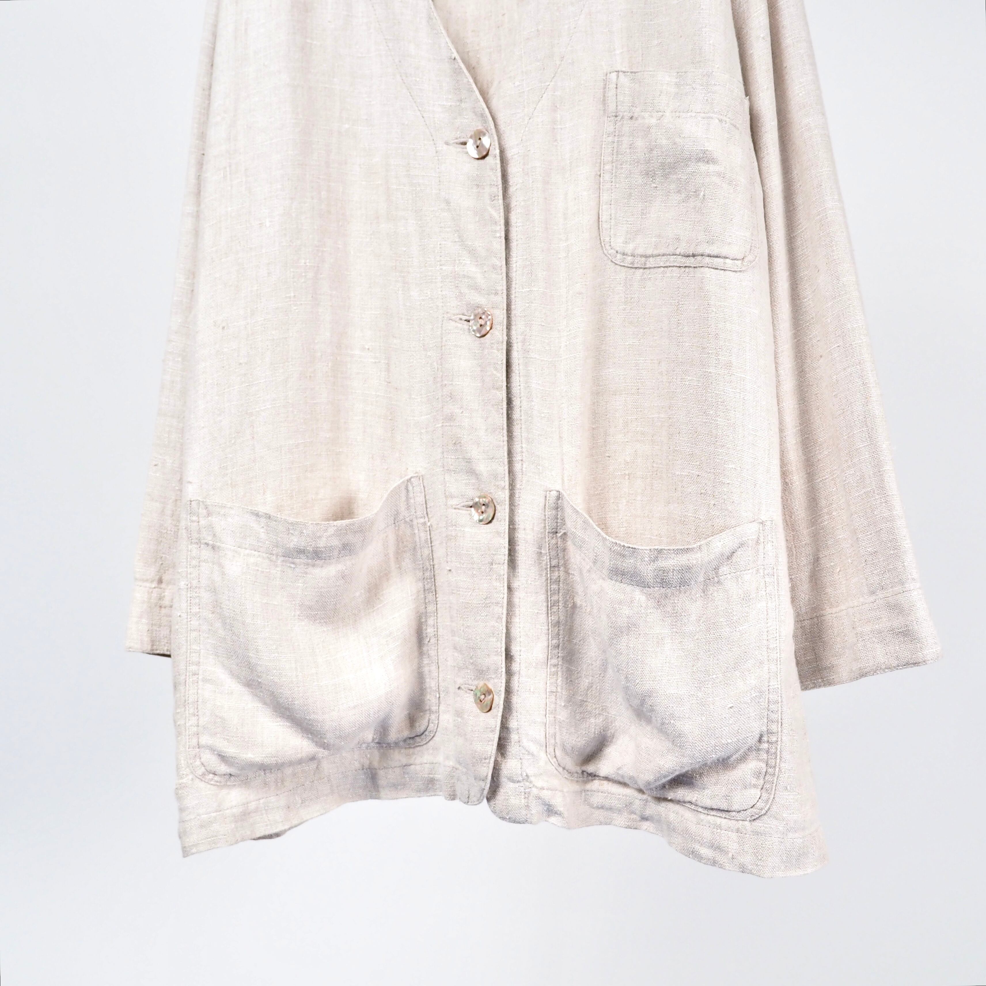 チェストポケット付きでワーク感のあるディテールに大ぶりなシェルボタンやリネンの高品質カジュアルを組み合わせたデザイン。