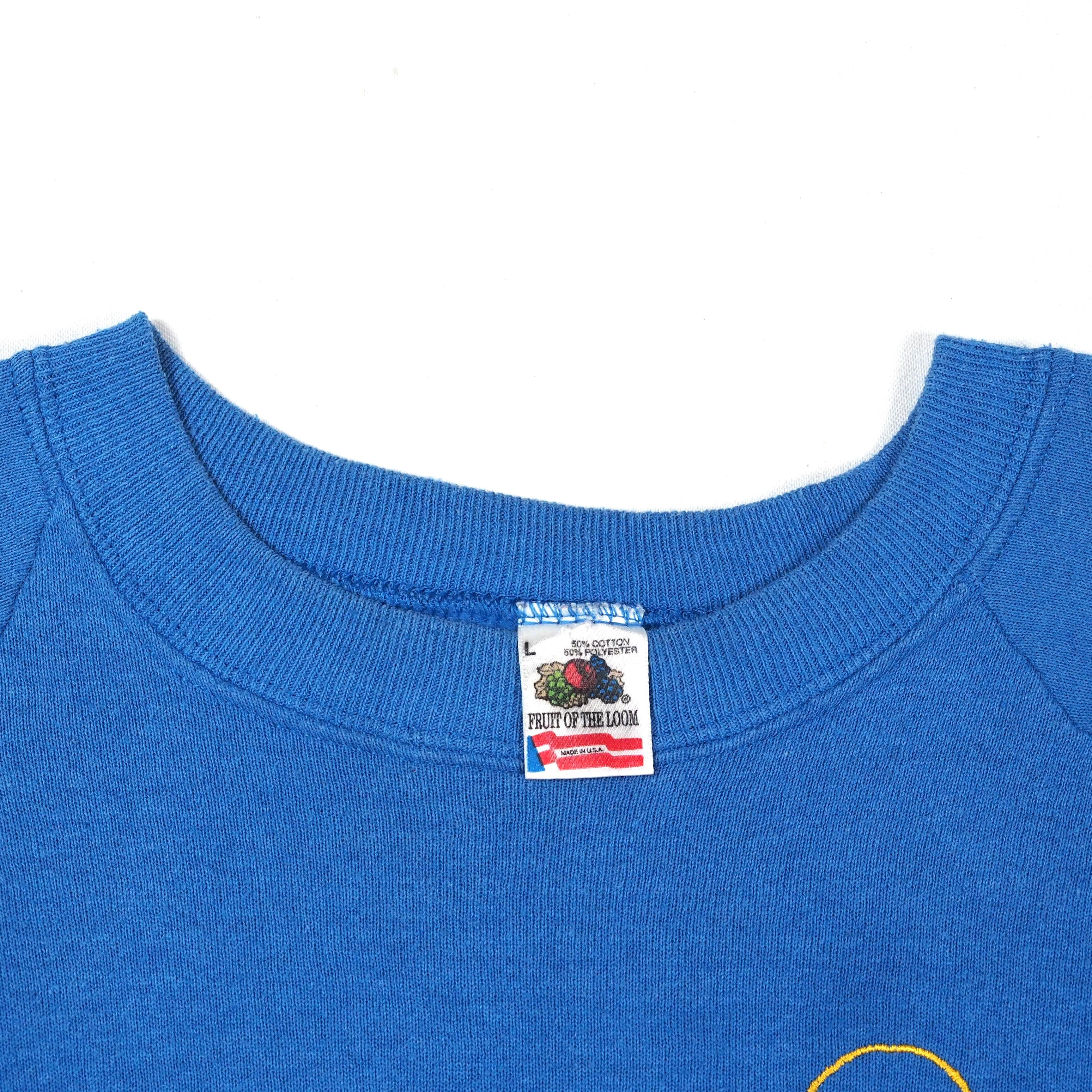 90s embroidered sweatshirt L / USA FRUIT OF THE LOOM vintage ラグランスウェット ブルー
