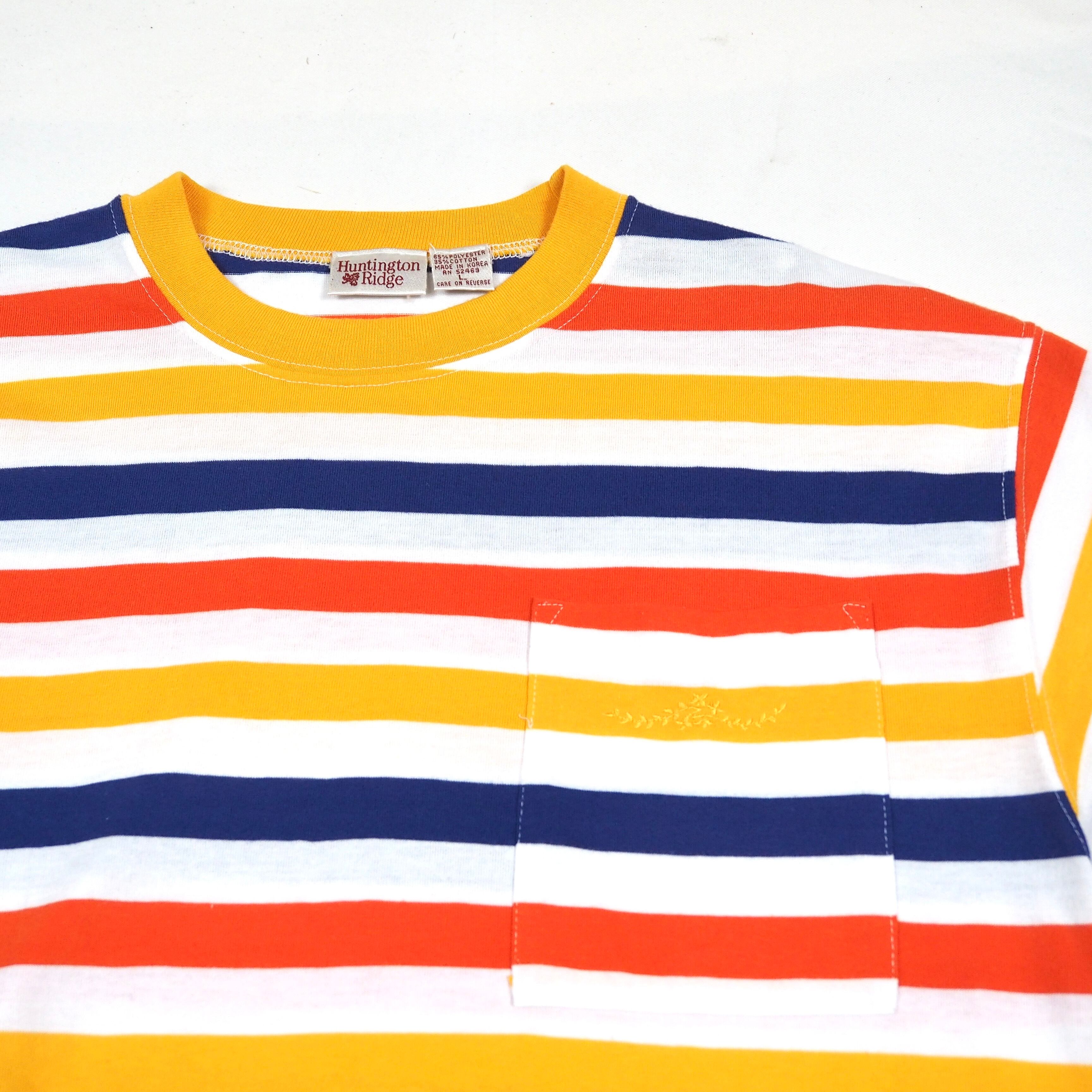 90s logo embroidered border pocket t-shirt multi color /L