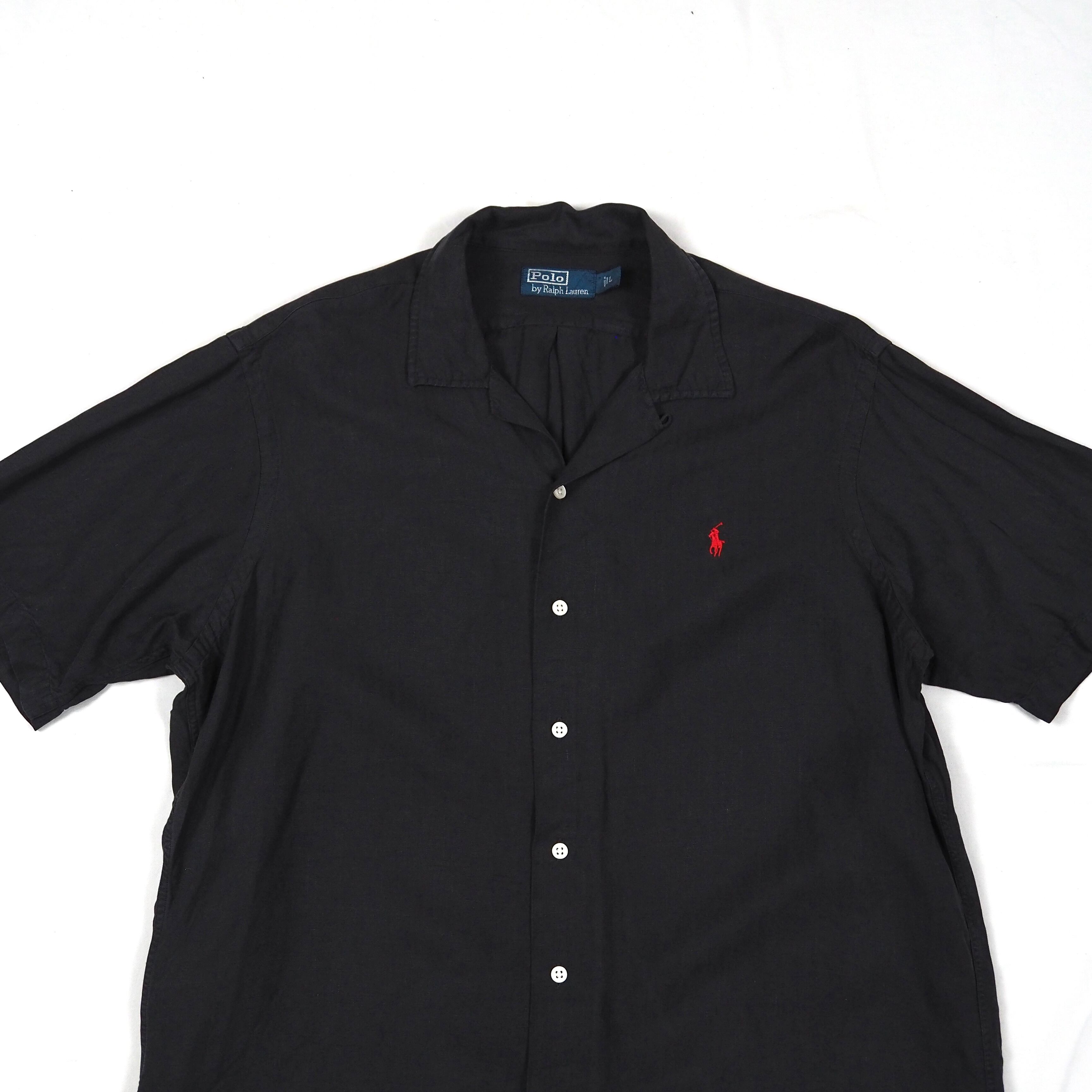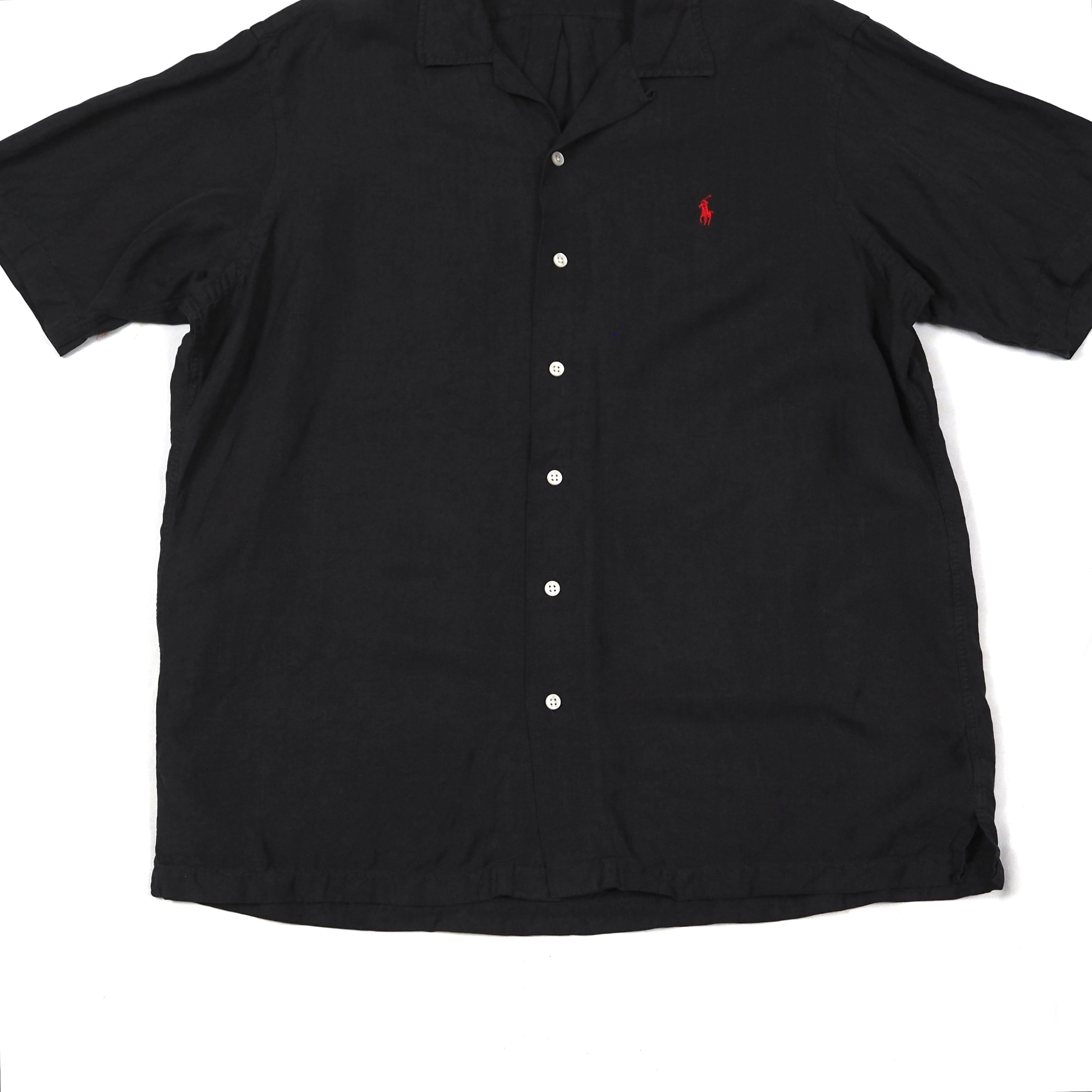 Polo by Ralph Lauren【Black】open collar s/s shirt Linen/Silk L