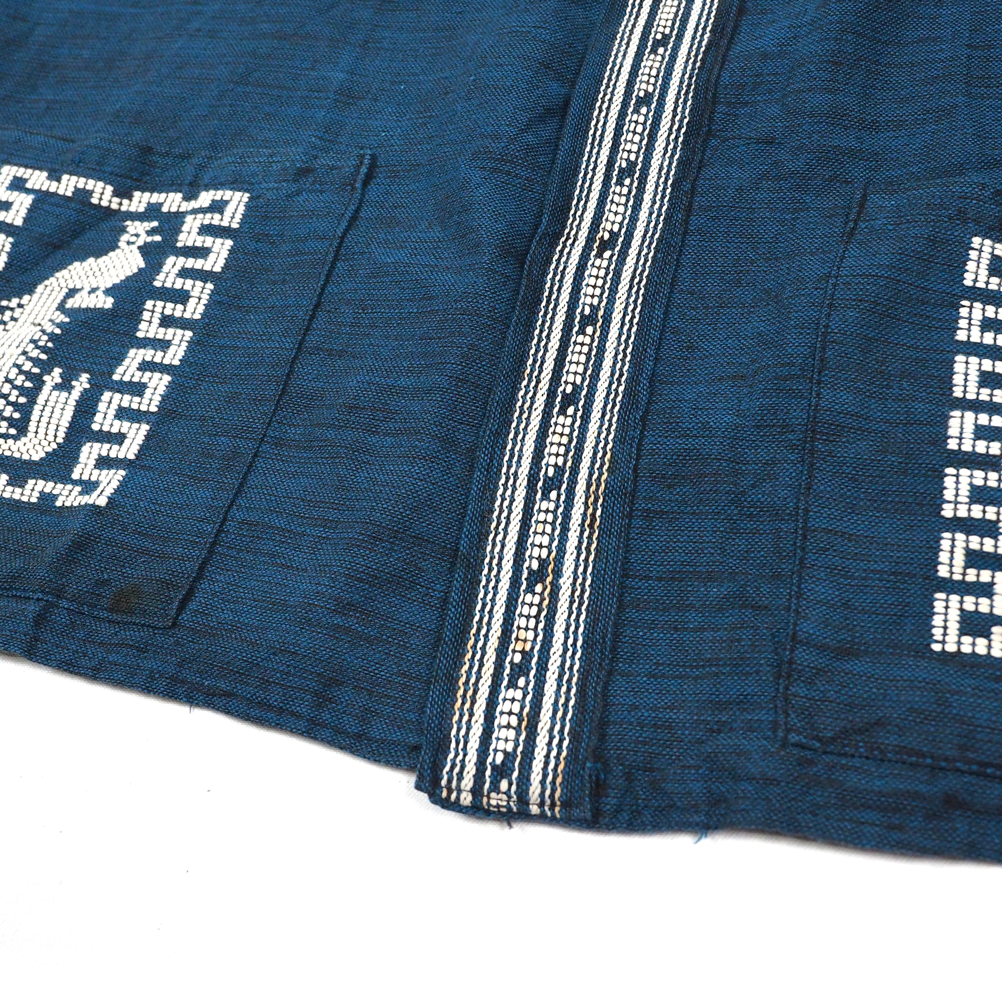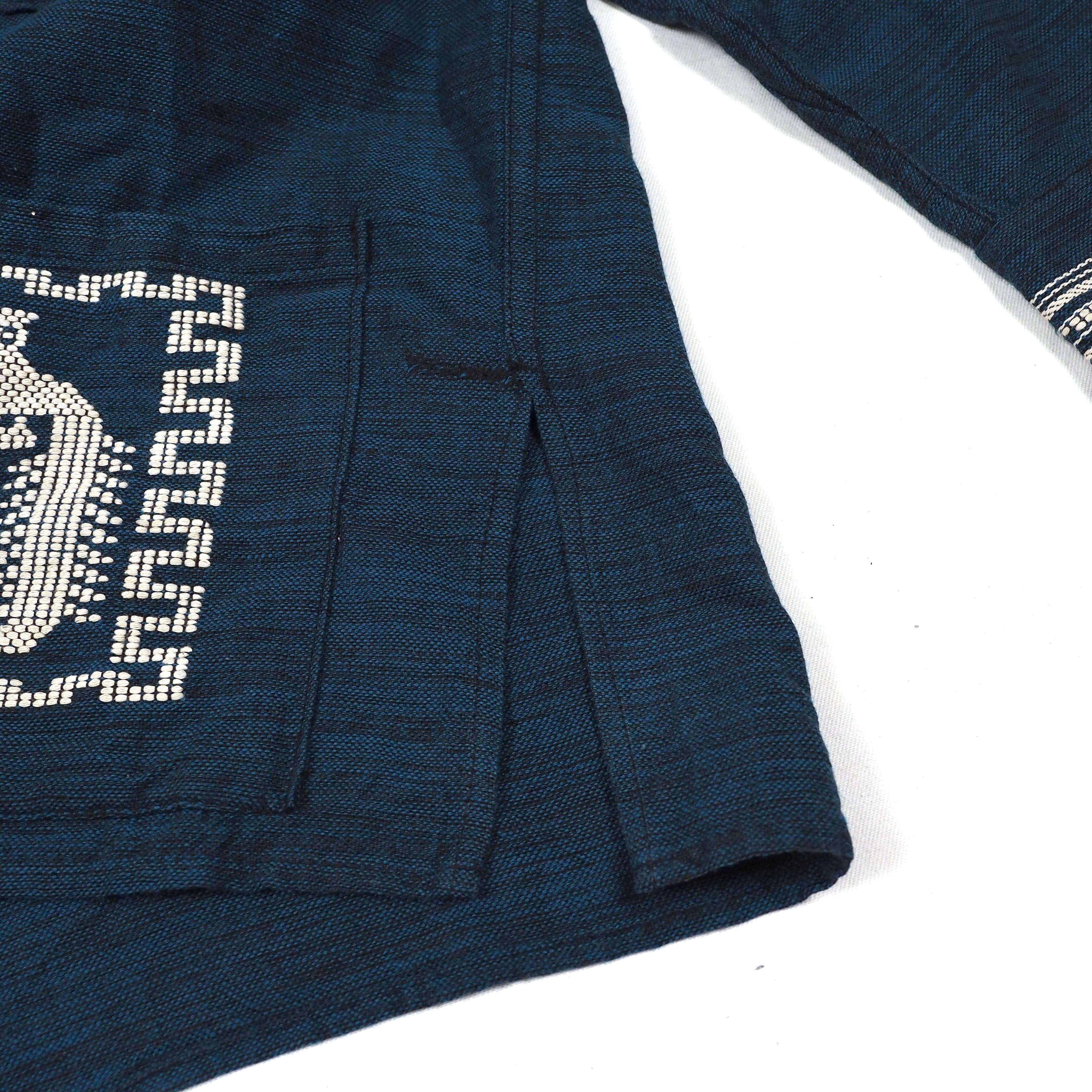 レアな単色刺繍、ボディーはブルーとブラックの2色の糸を使用した濃淡のあるブルーカラー。