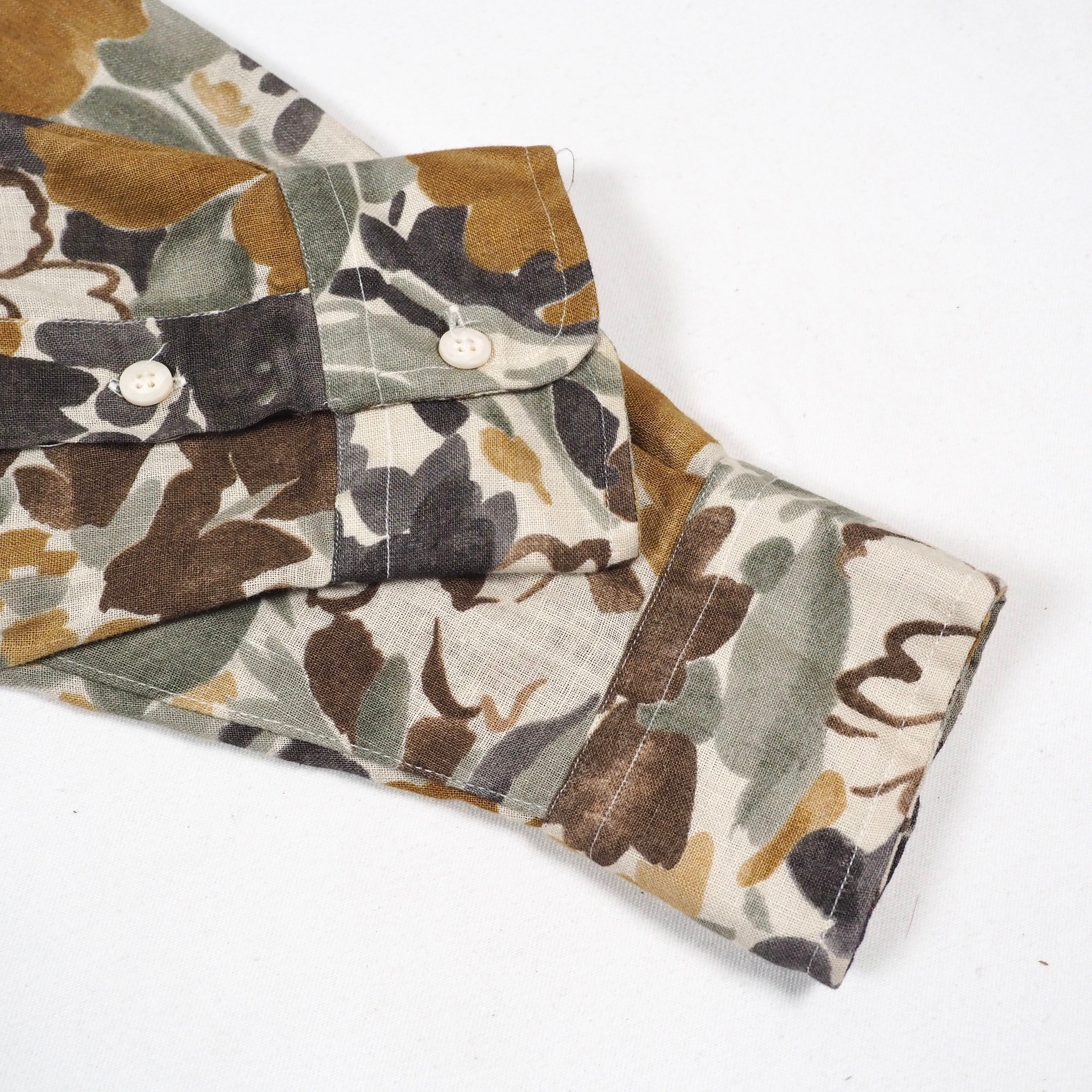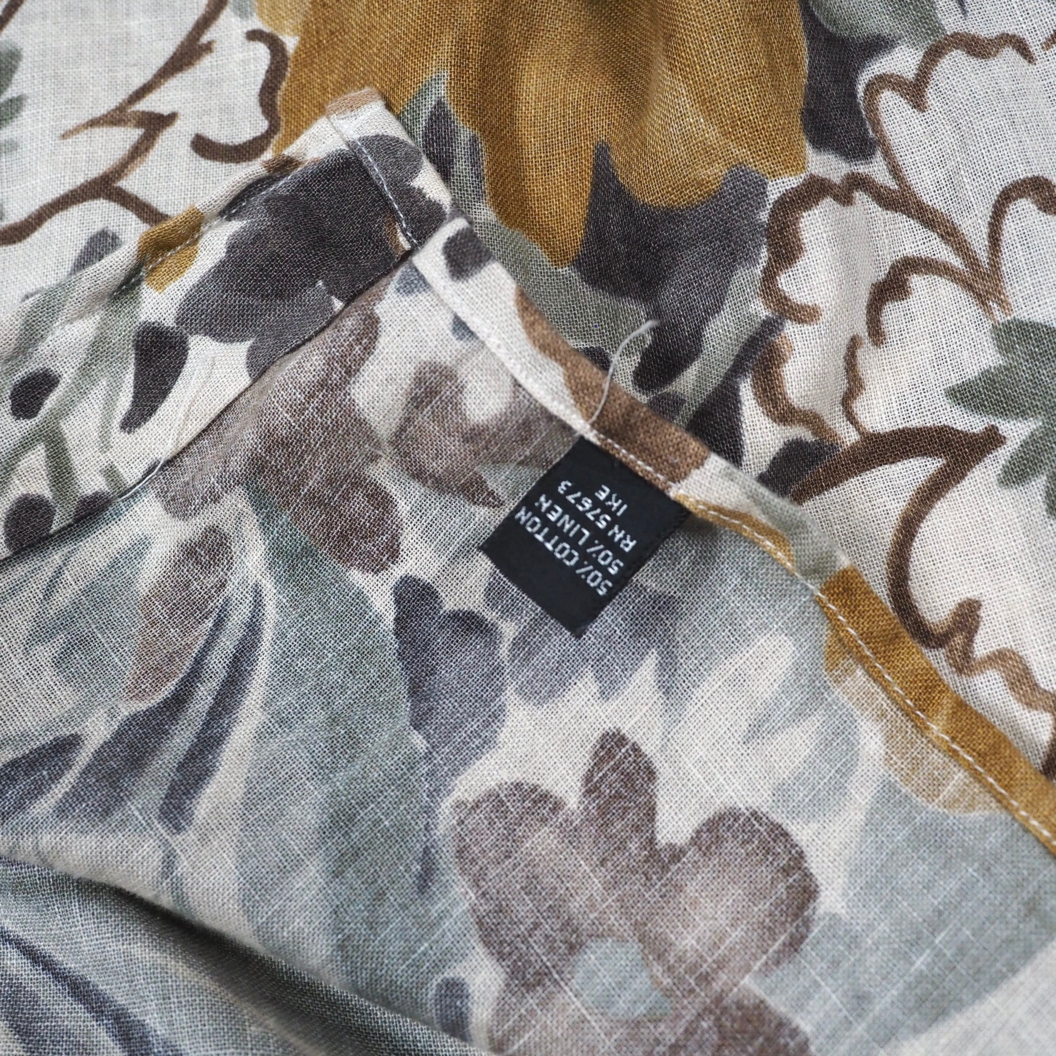 上質なシルク/コットン混紡の生地を使用、トーンを抑えアースカラーでまとめたフローラル柄。