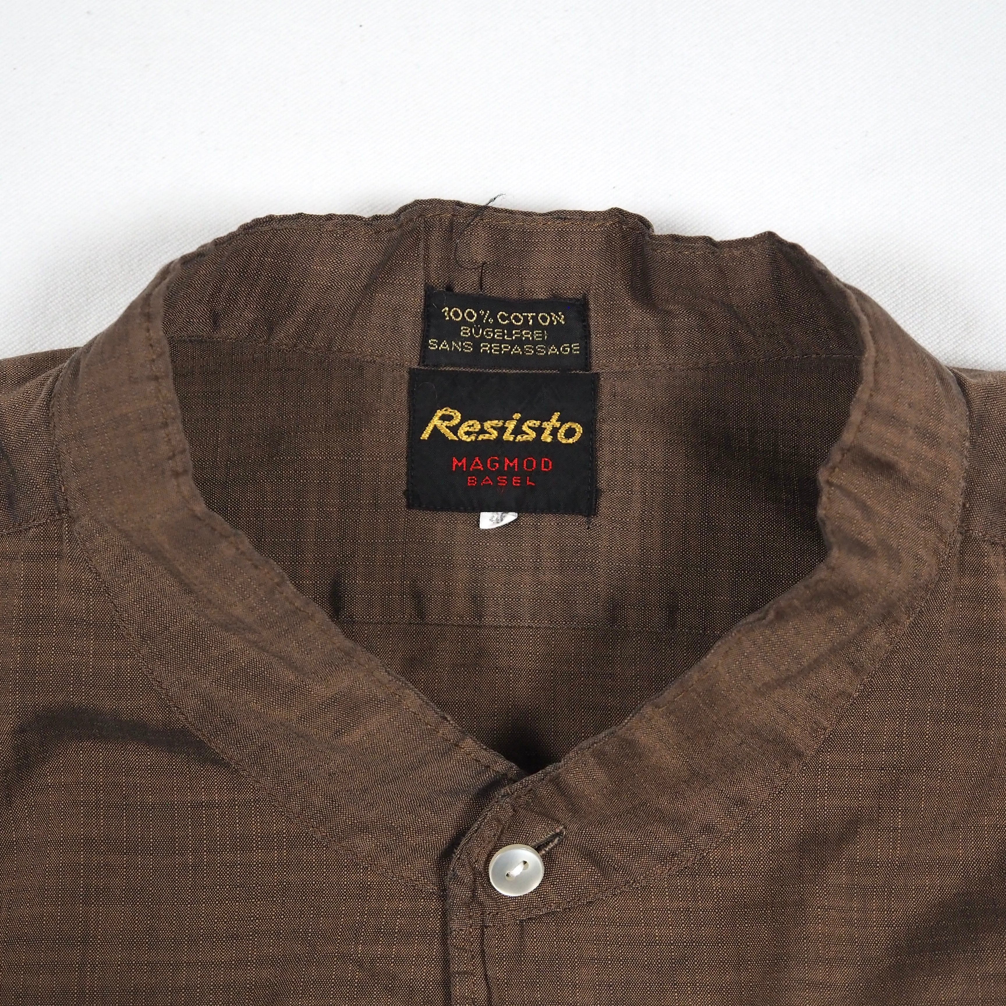 ブラウンのバンドカラーシャツ、おそらくドイツ製です。