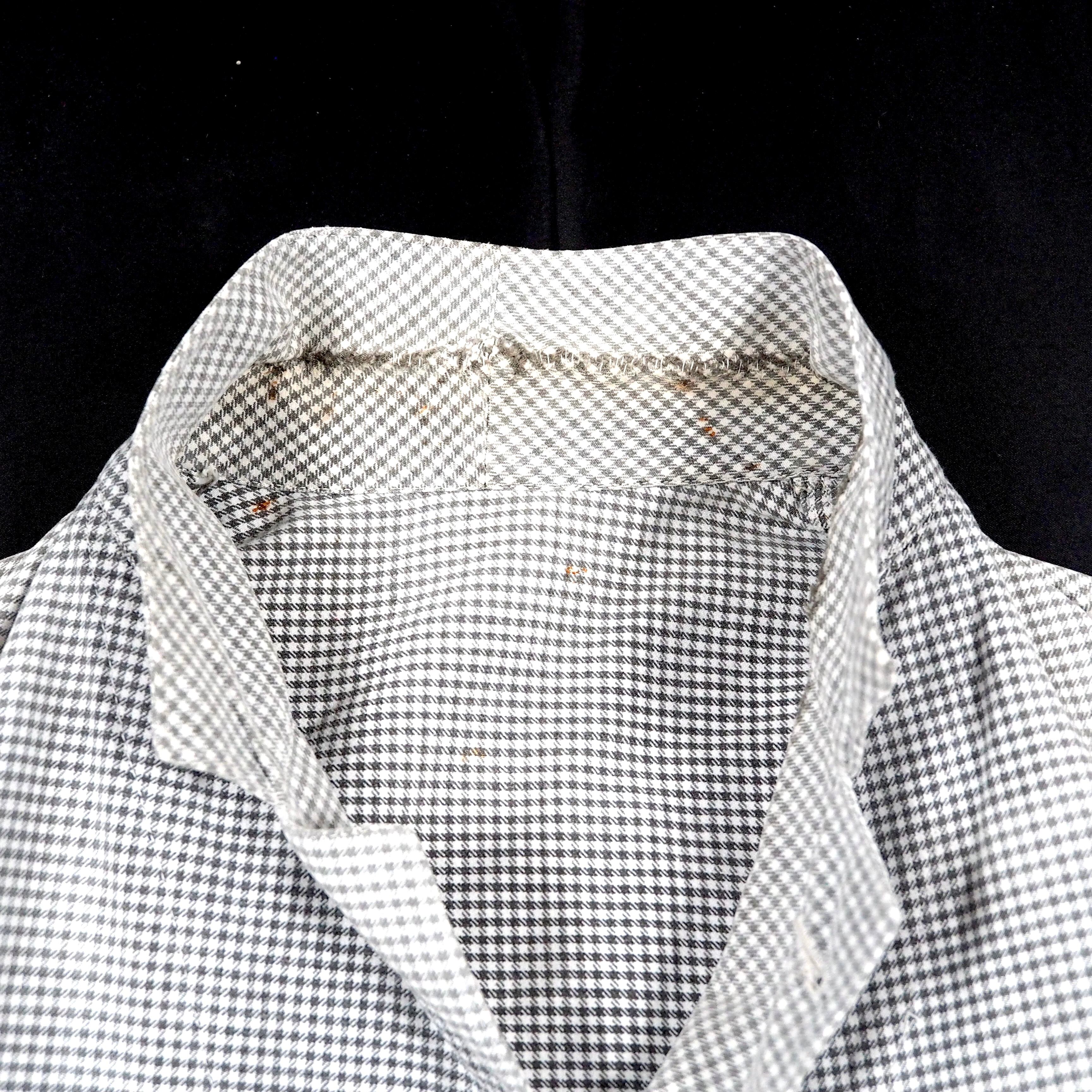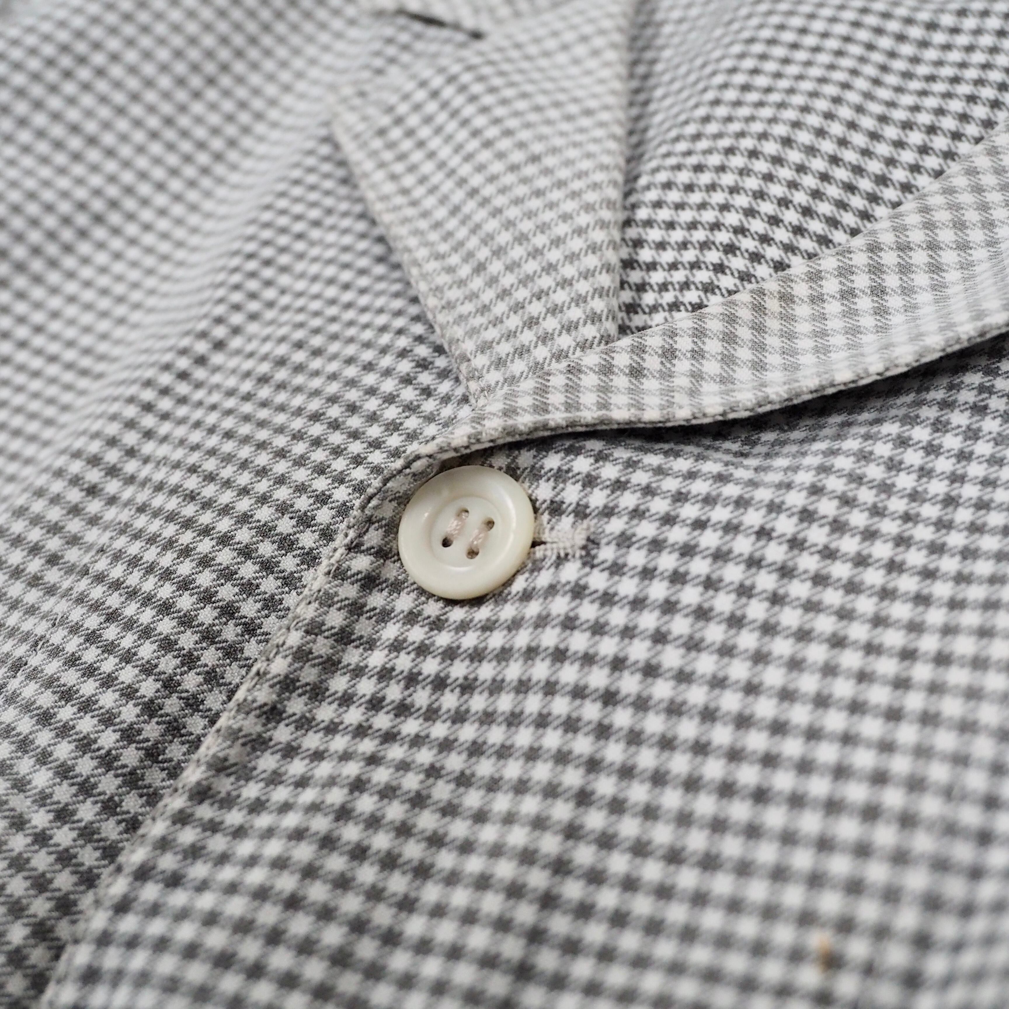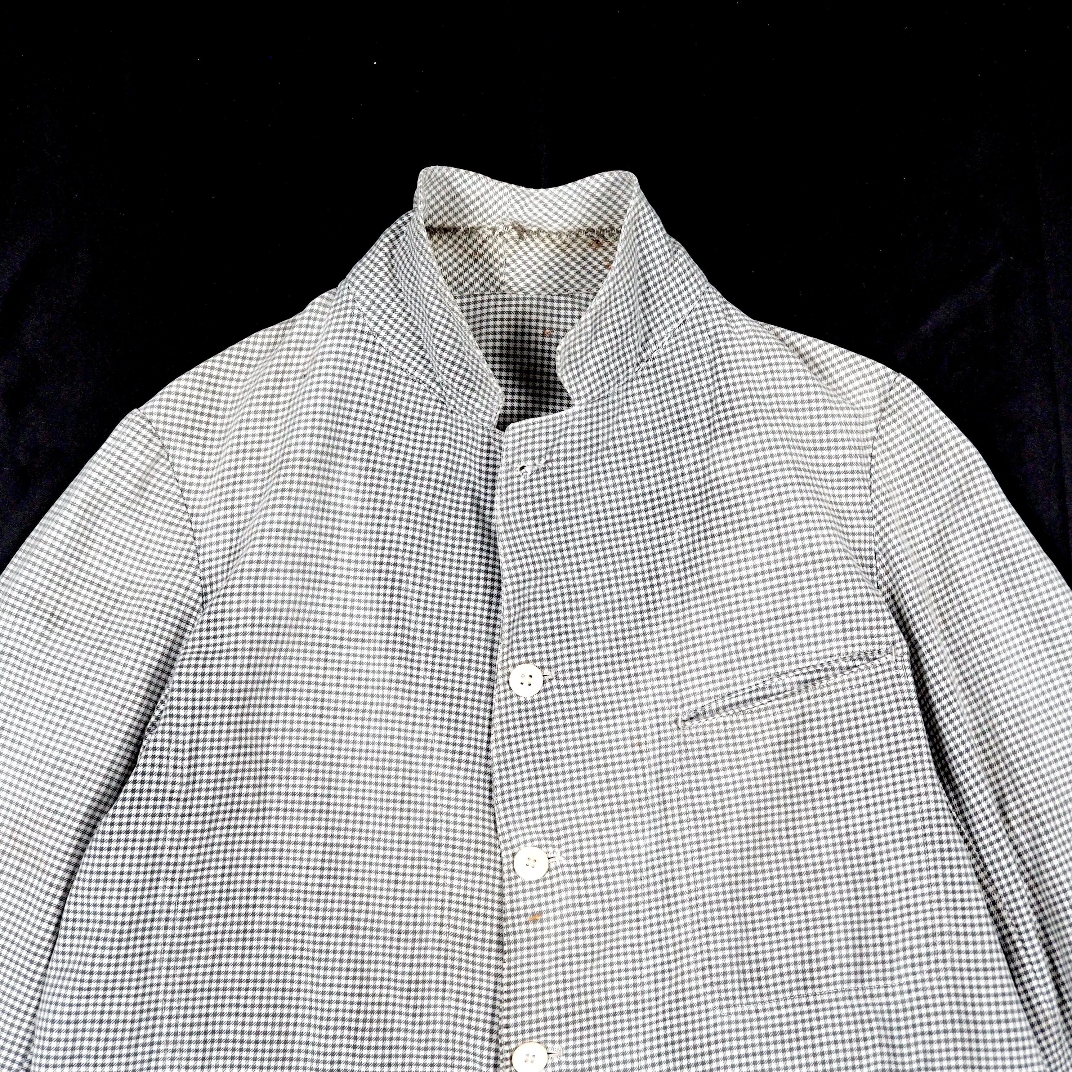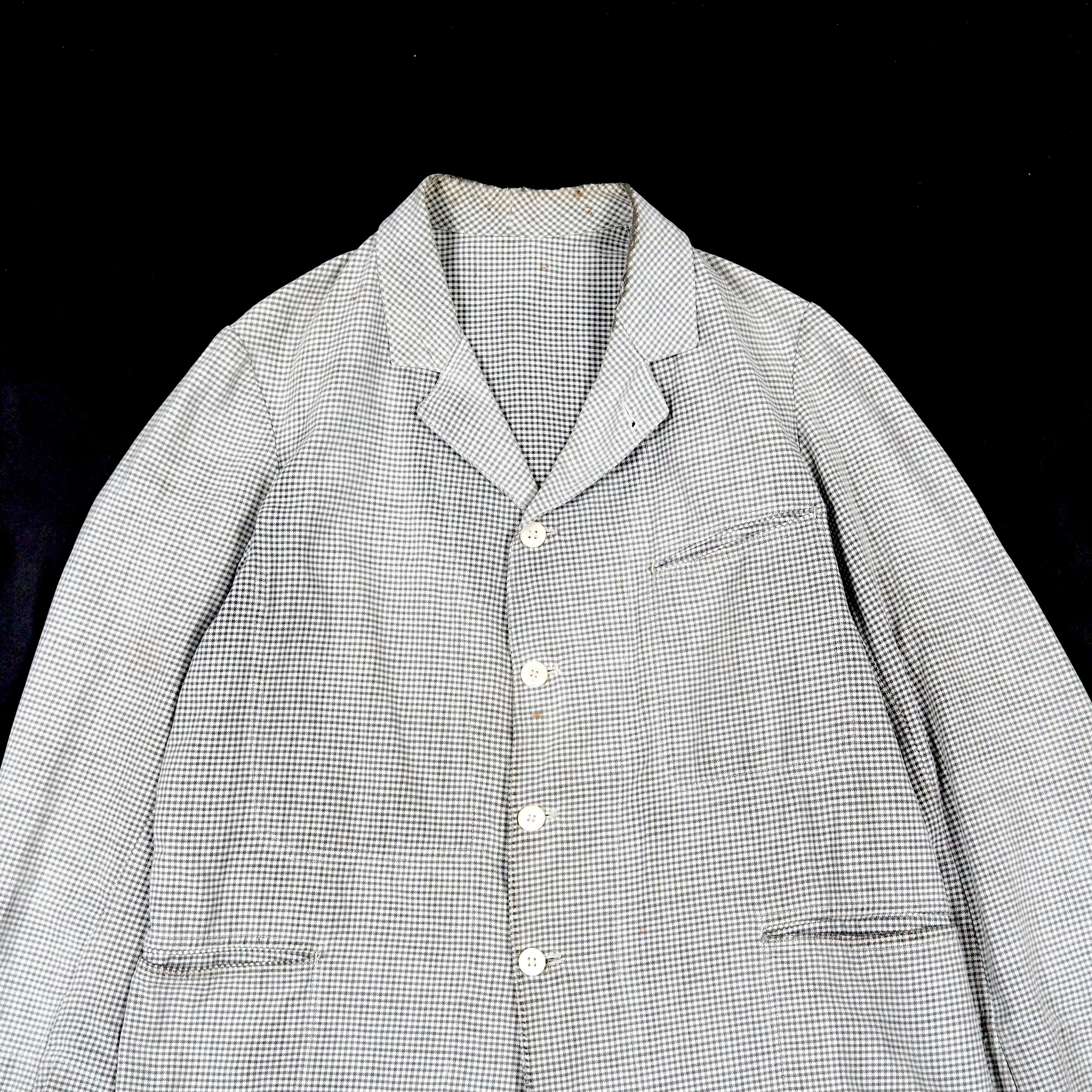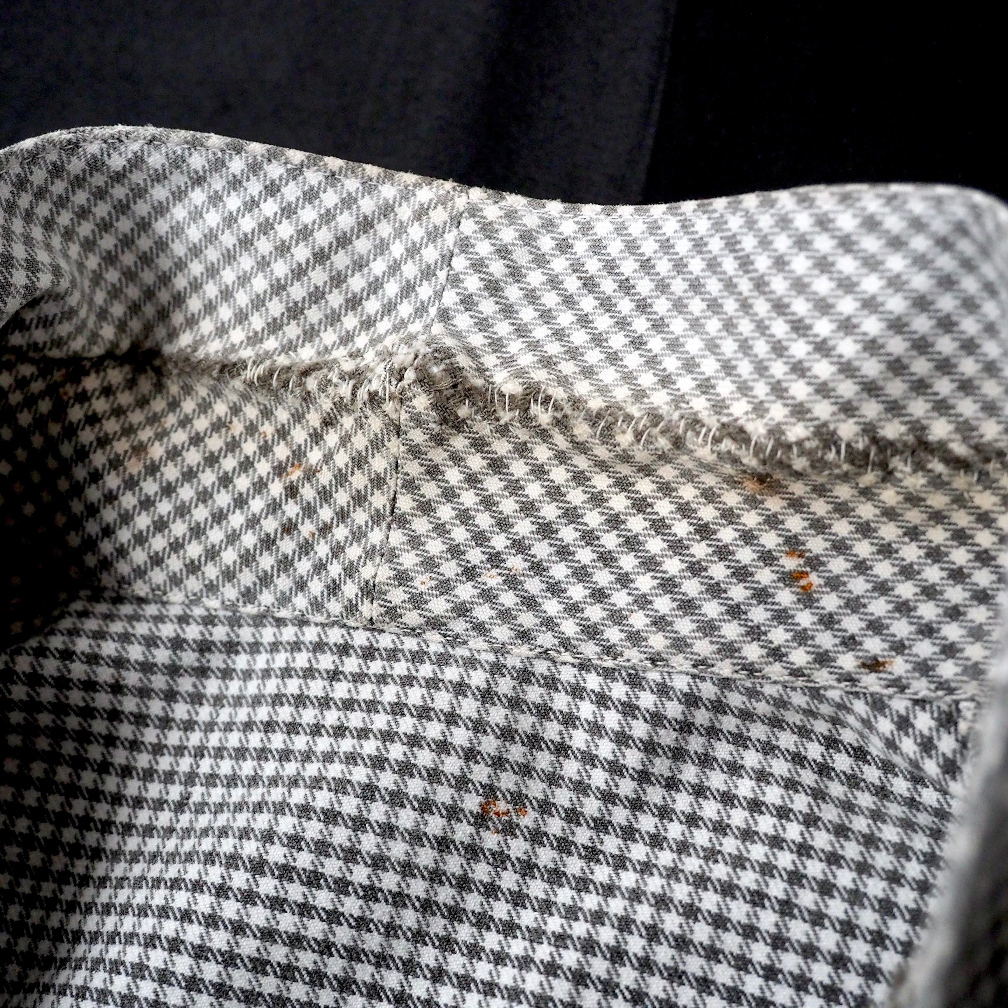 狭いVゾーンにAラインシルエット、フロントは大振りなシェルボタンでヴィンテージならではのシルエット。