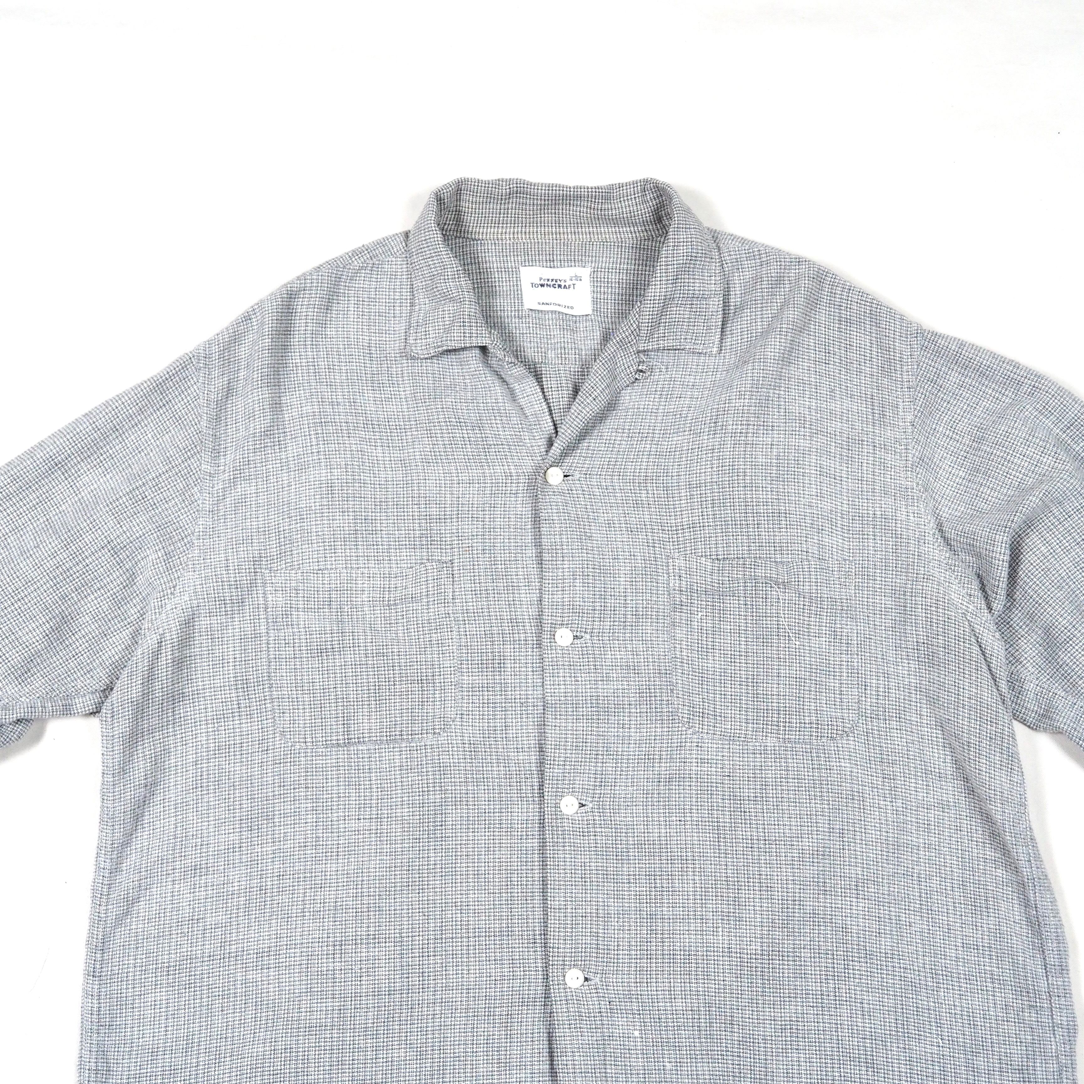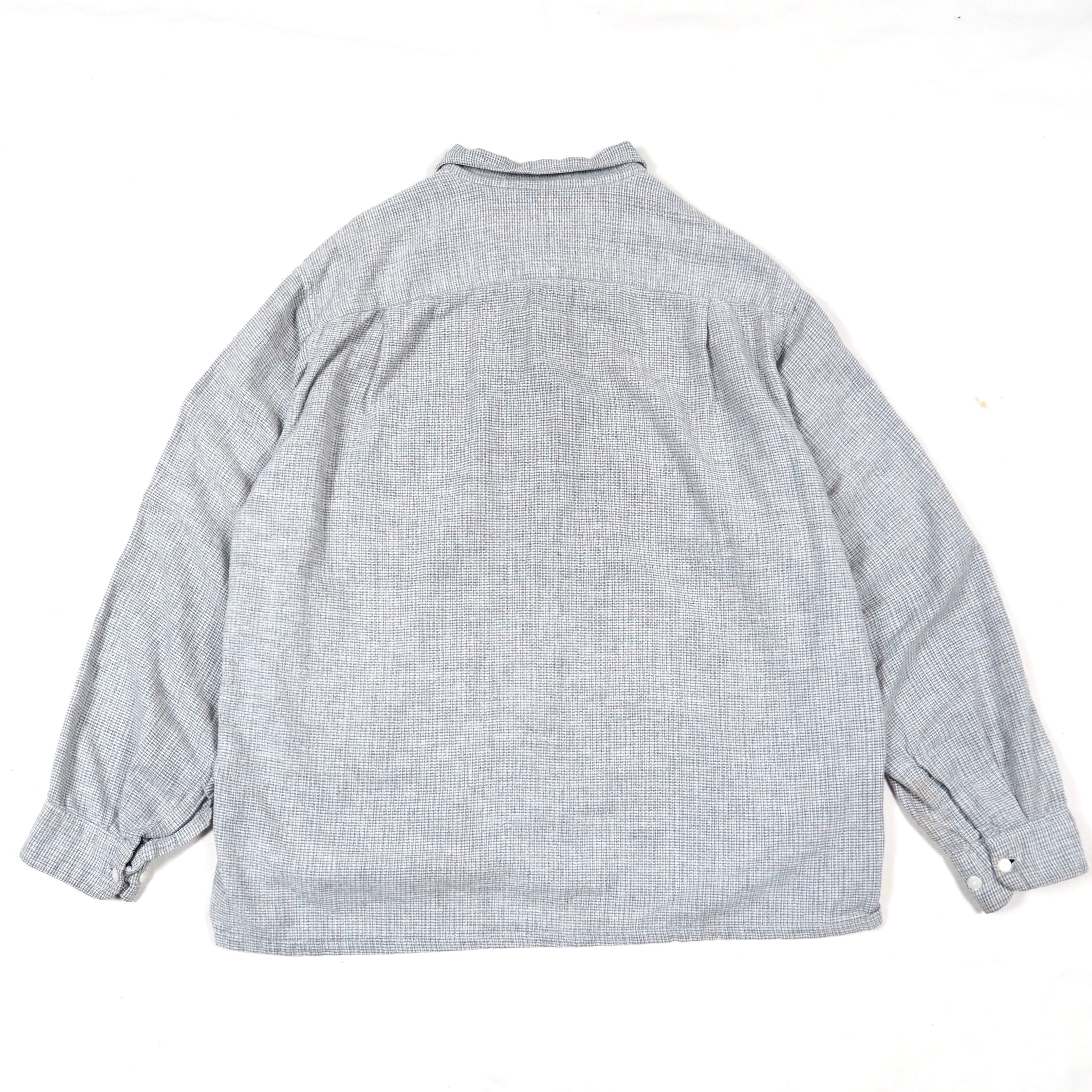 ホワイト×グレー、織柄のオープンカラーシャツ。