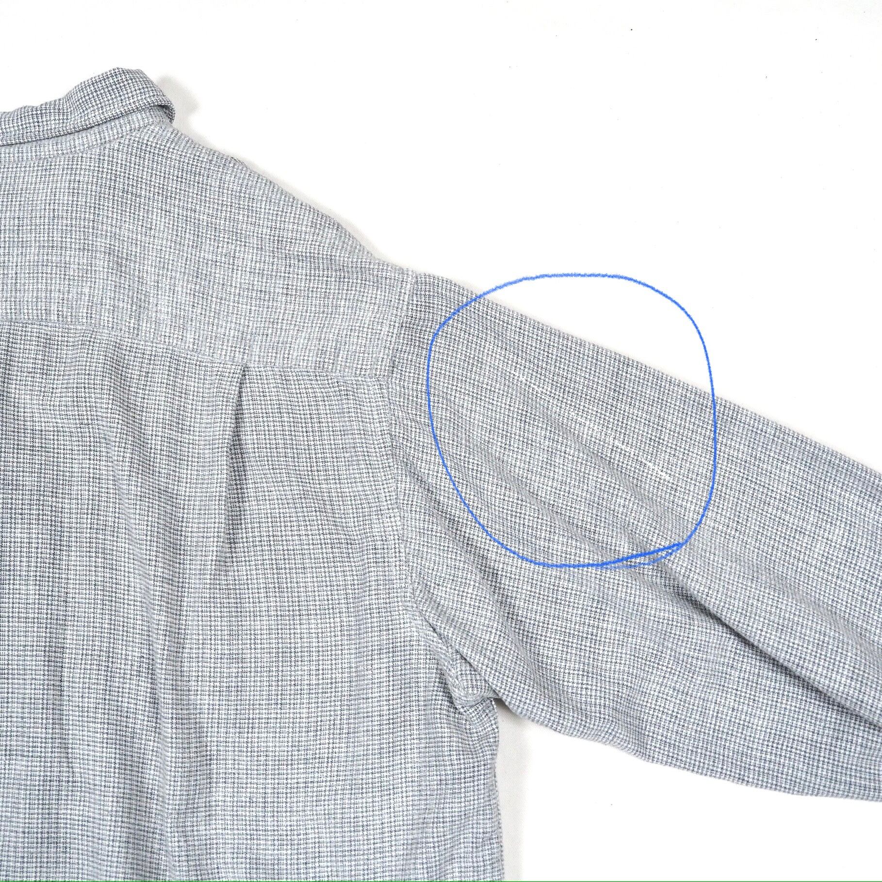 フロントの左裾、背面右肩付近にペンキの付着、右袖口に薄汚れがございます。