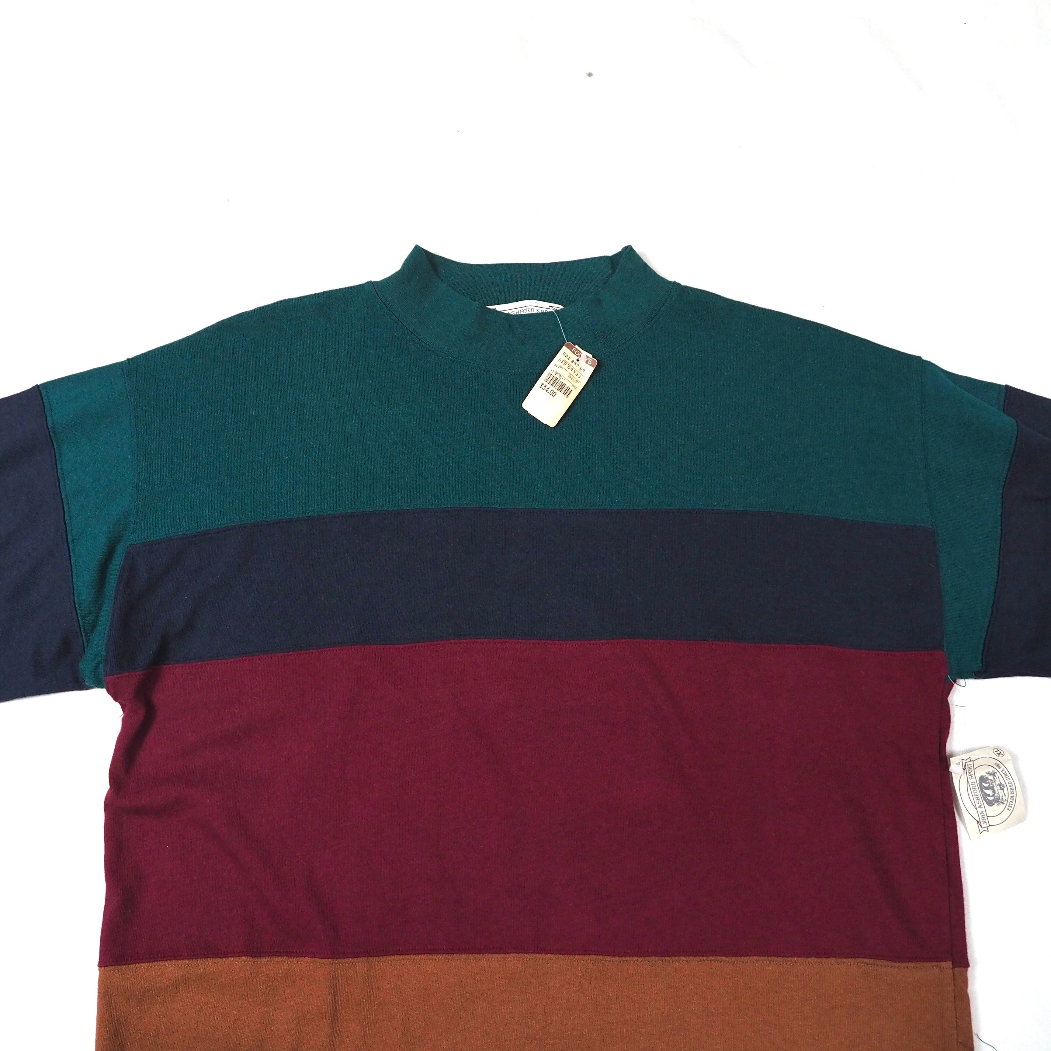 【NOS】JOHN ASHFORD SPORT moc neck cotton border l/s t-shirt XL