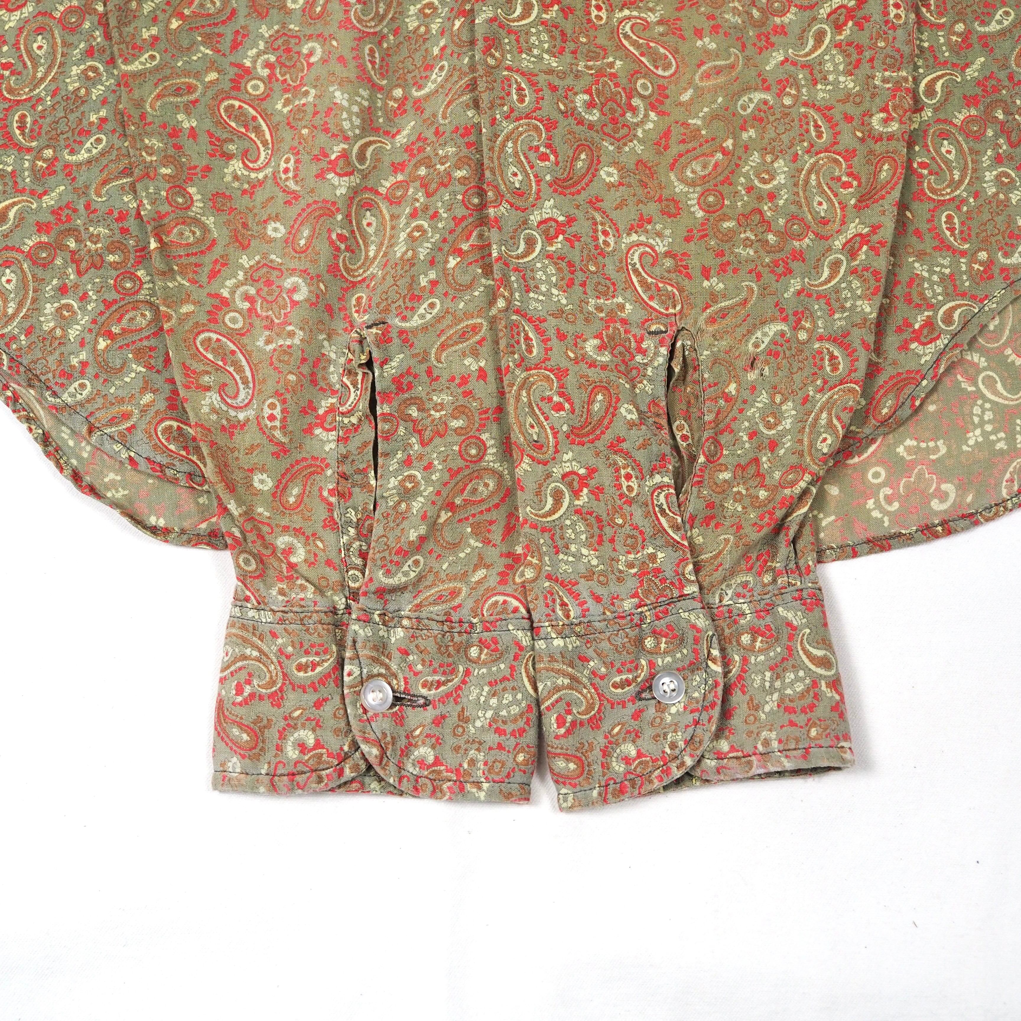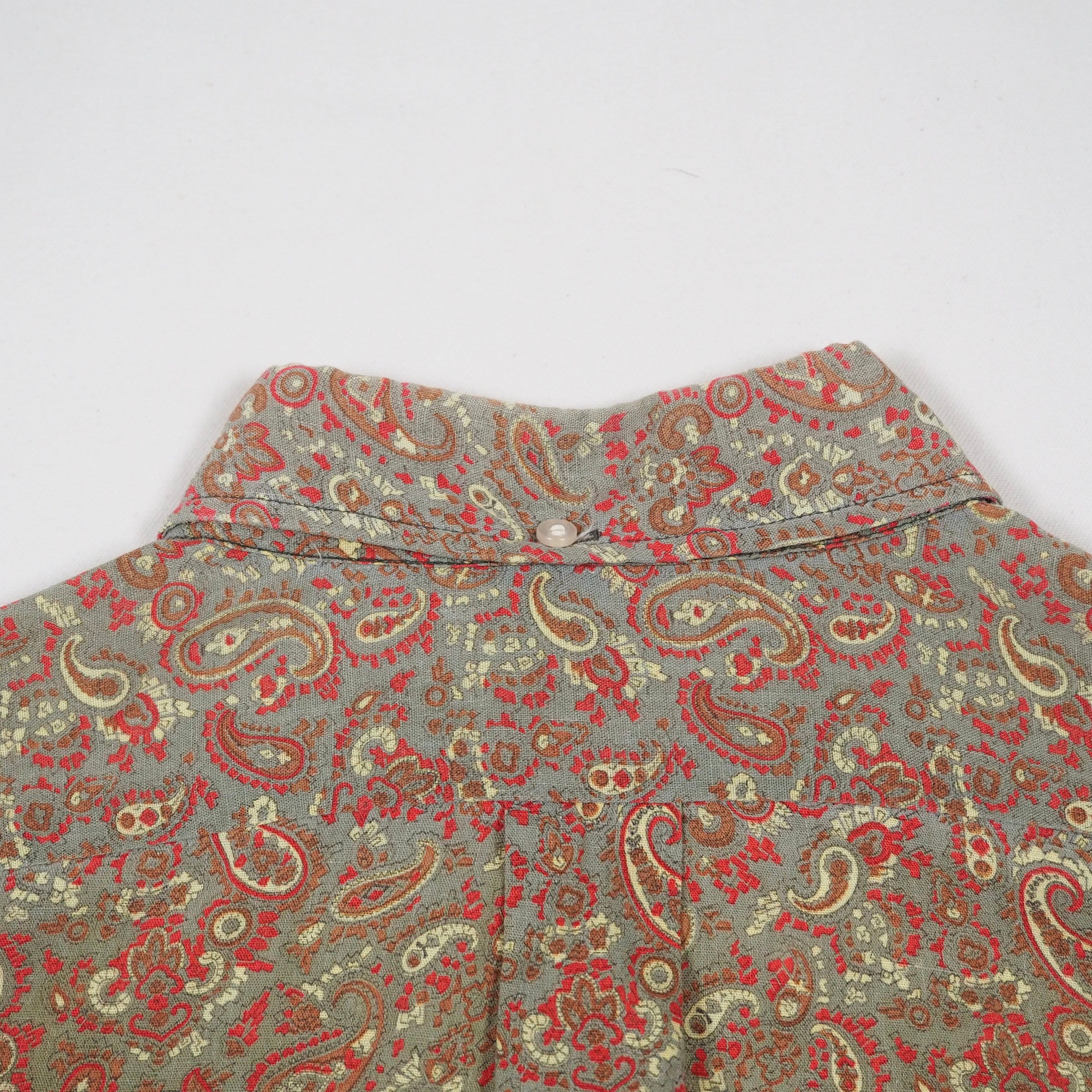 襟元は背面にもボタンの付く3点留め仕様で、少しくびれのある細く小さな襟もこの年代のシャツの特徴です。