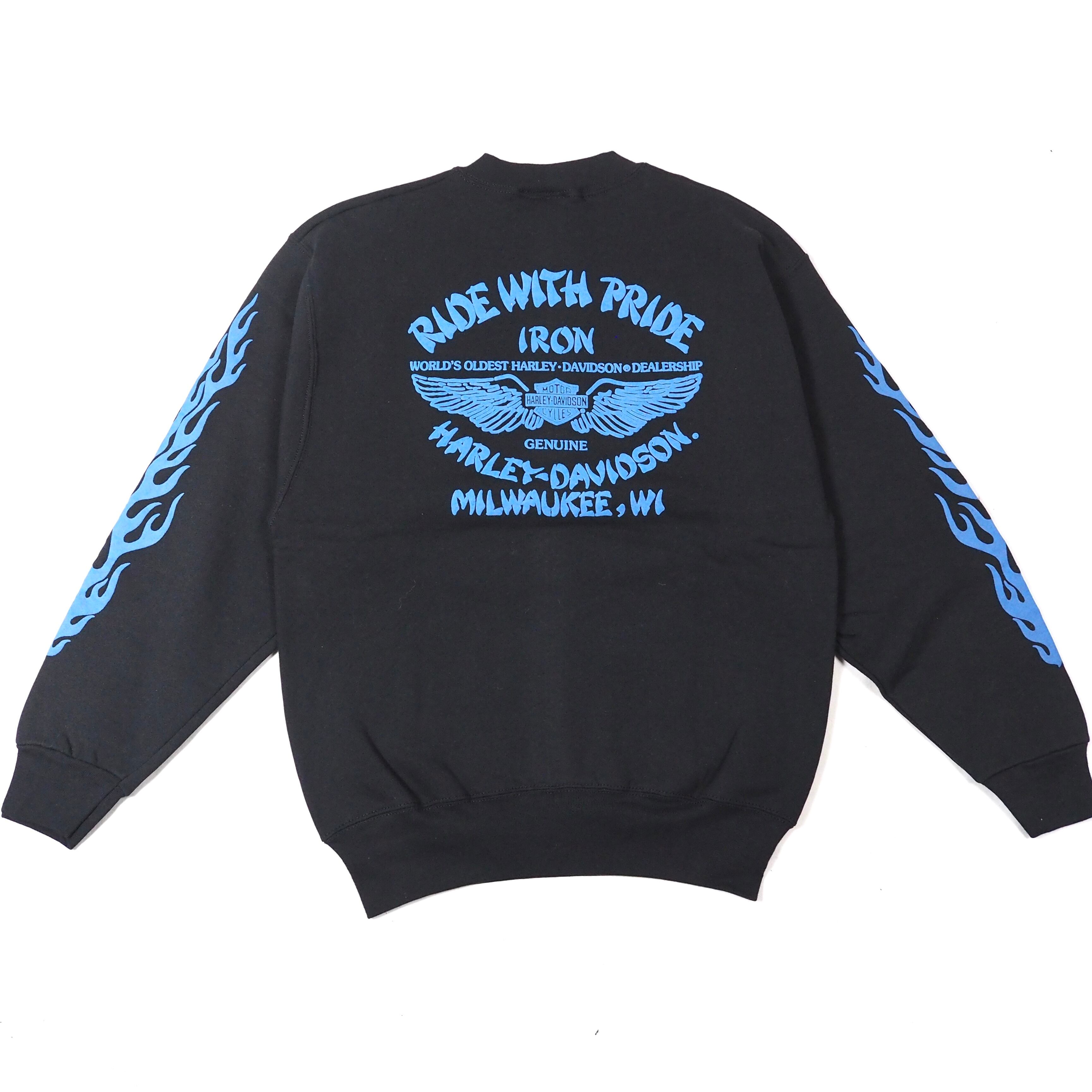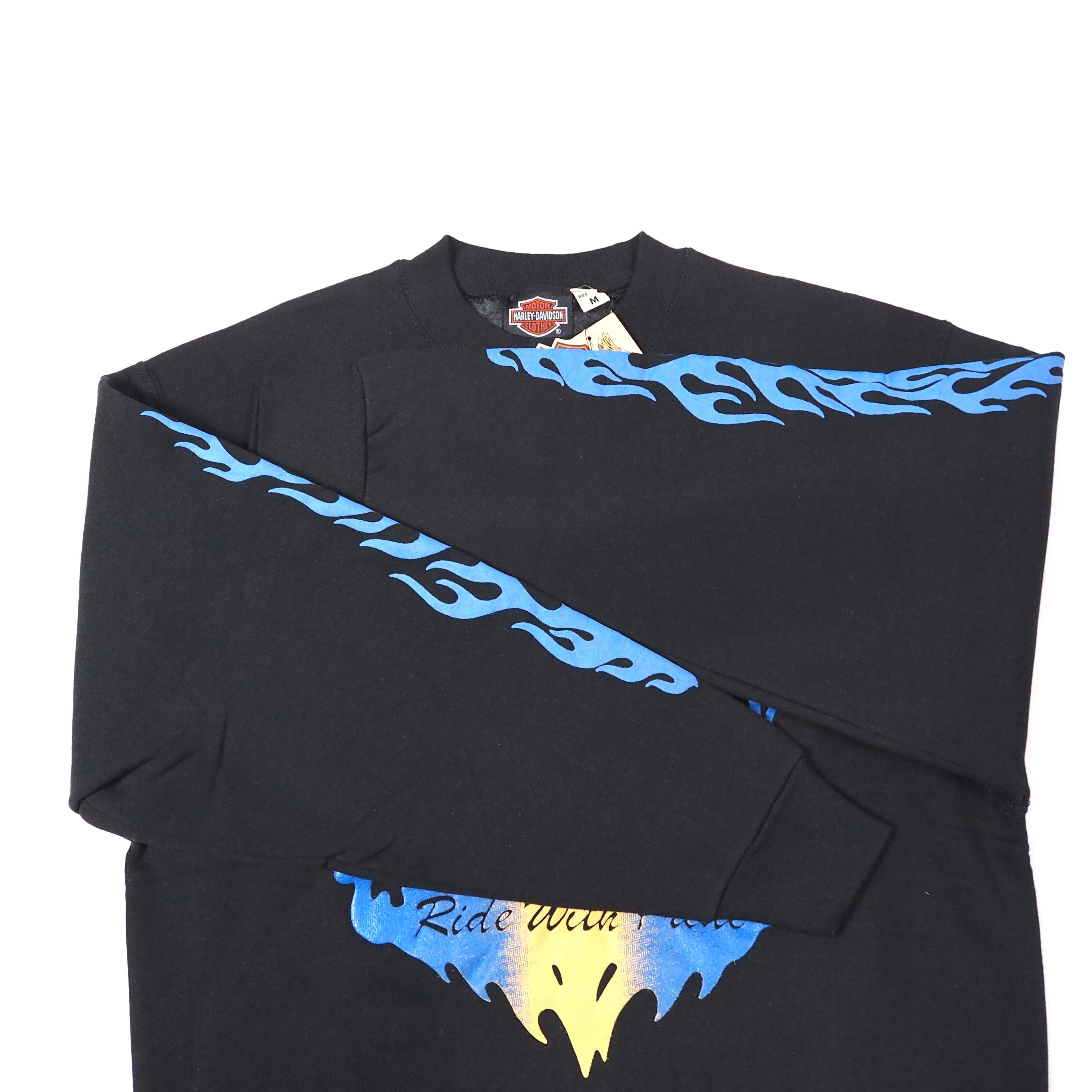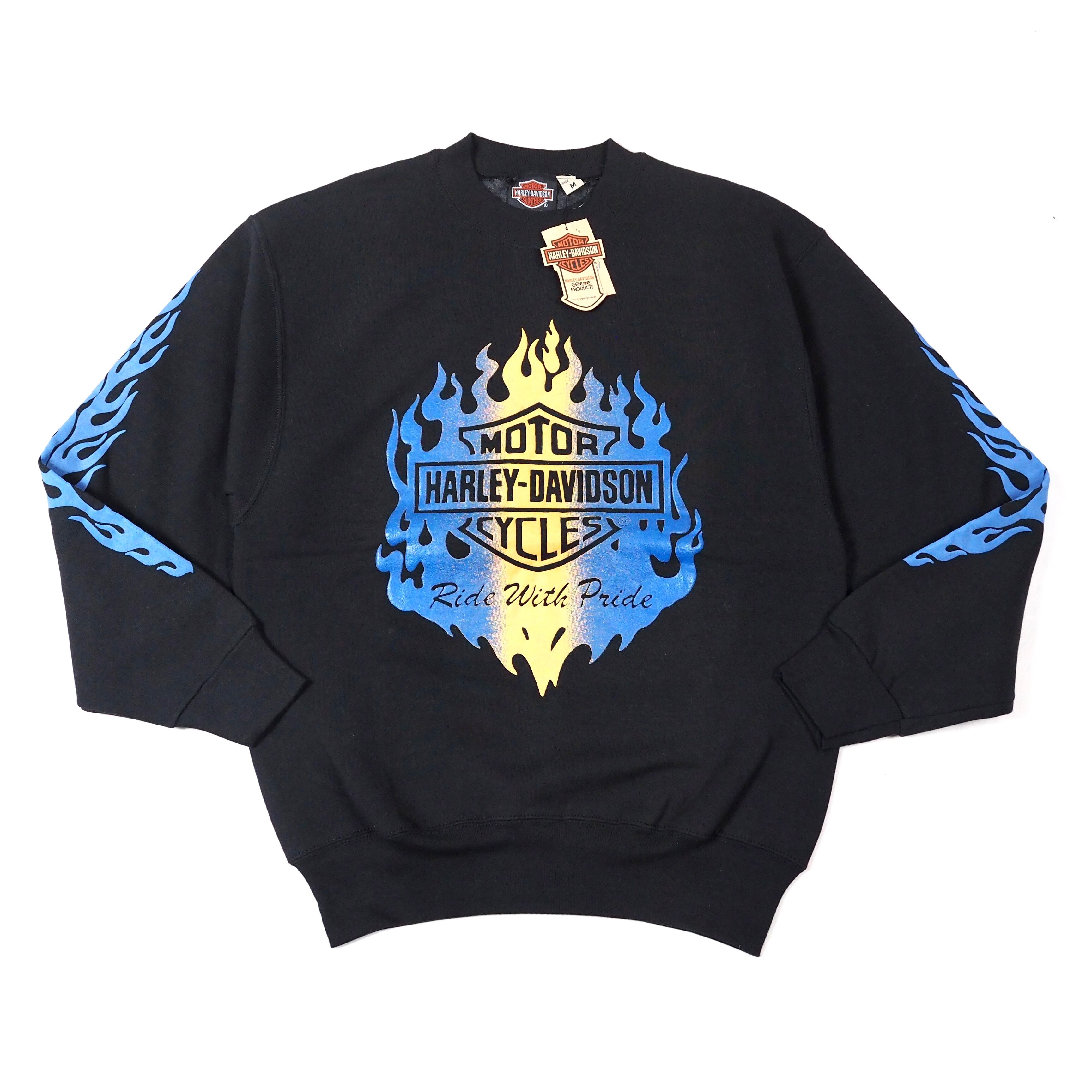 【NOS】HARLEY DAVIDSON Flame print sweatshirt M Black×Blue / USA製