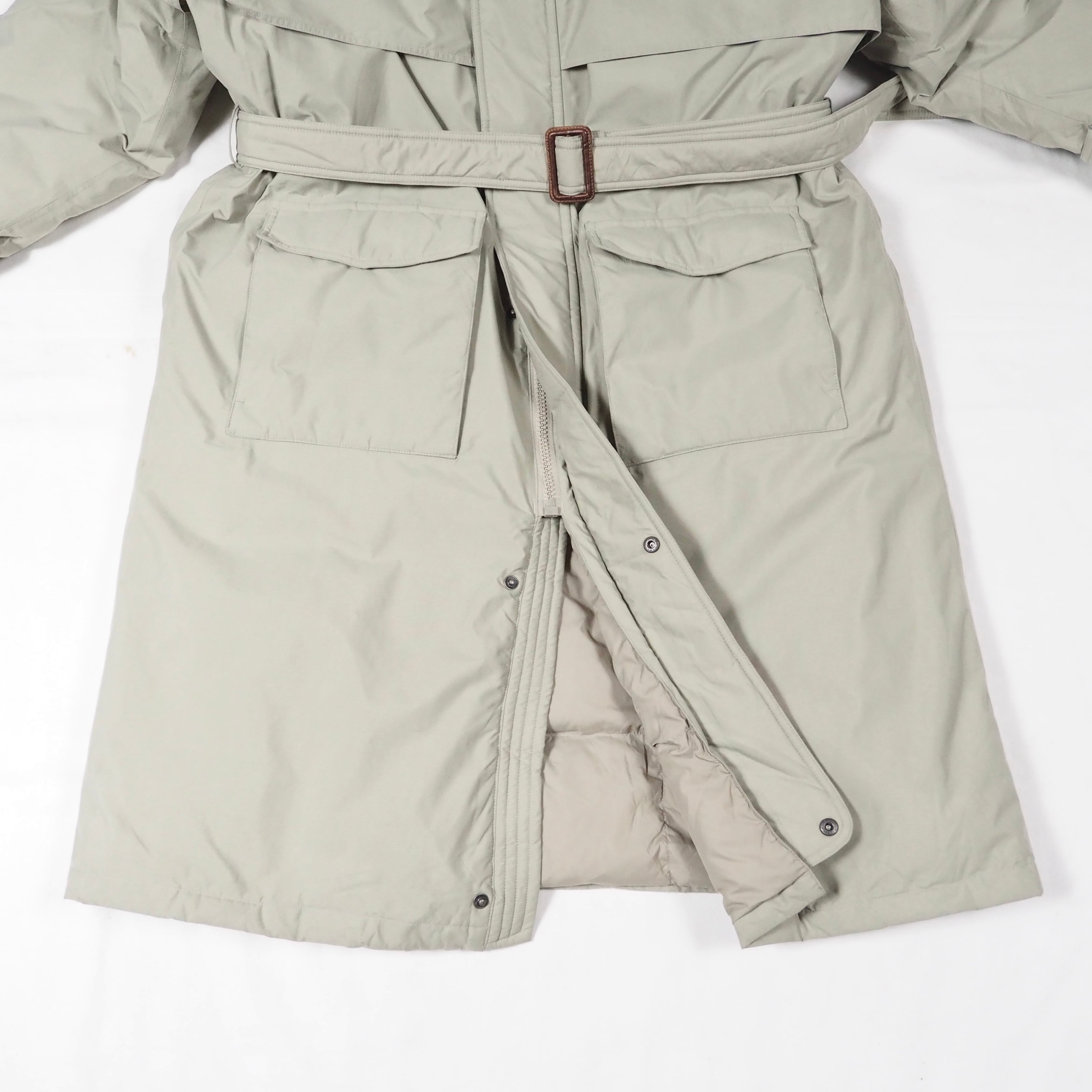 背中側のストームシールド、ウエストと袖にベルトが付くトレンチコートのデザインをGORE-TEXシェル、Goose downインサレーションで仕立てたスペシャルなアイテム。