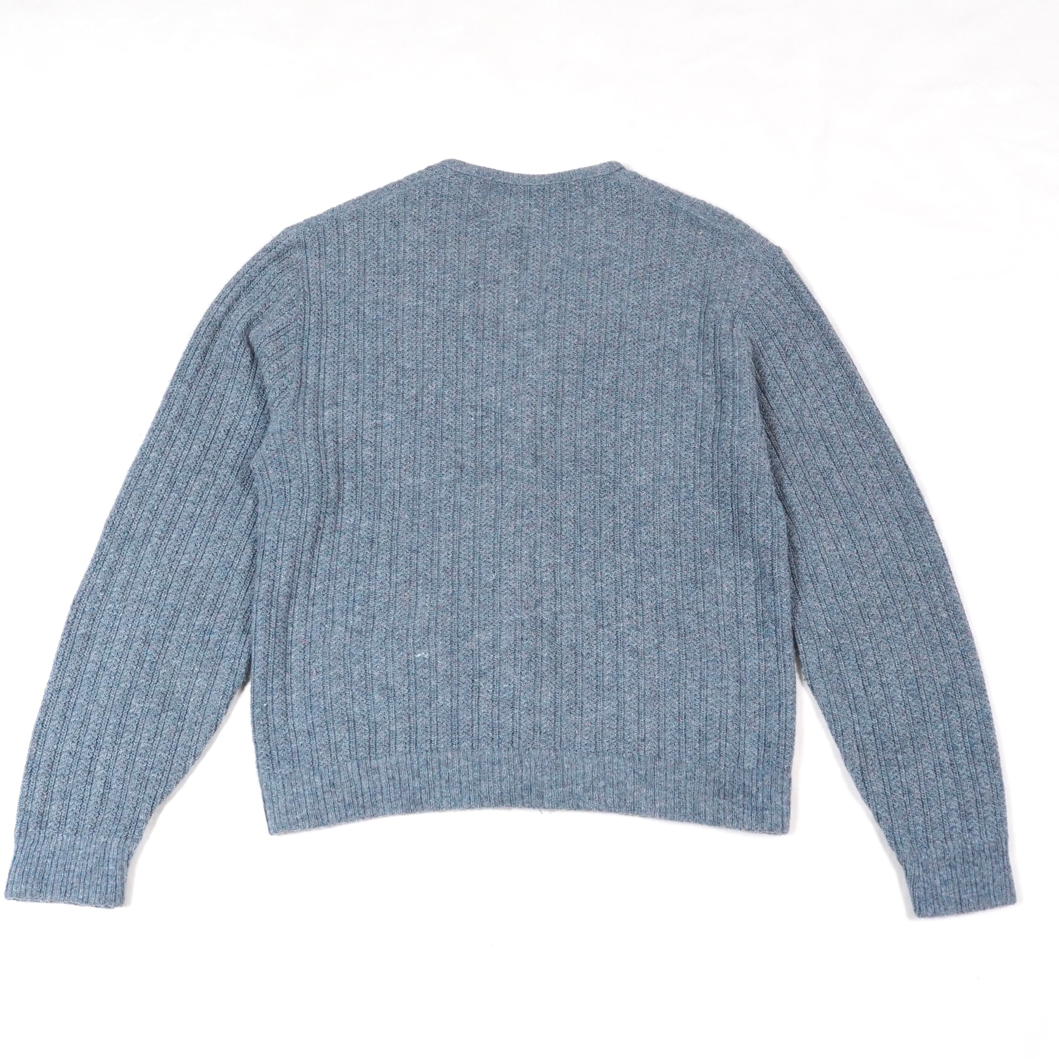 おそらくウールを中心とした混紡、グレーや薄いブルー感じるミックスニット。