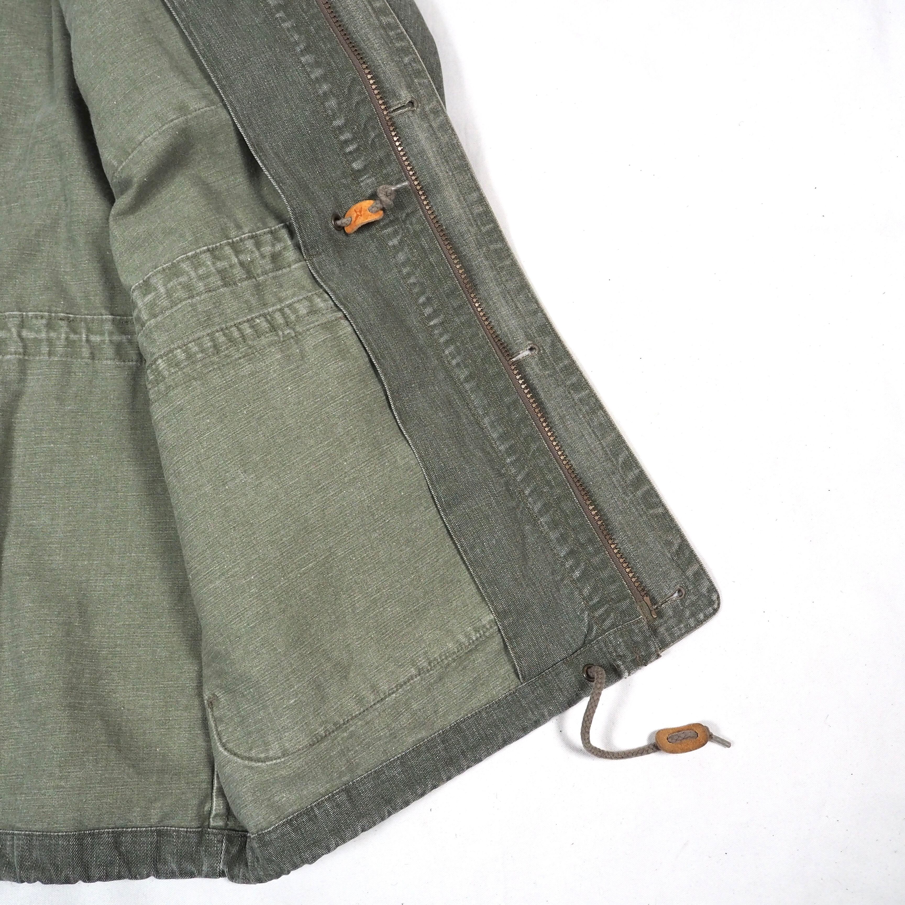前立付きのダブルジップ仕様、ガシッとした厚手のコットンツイル生地。