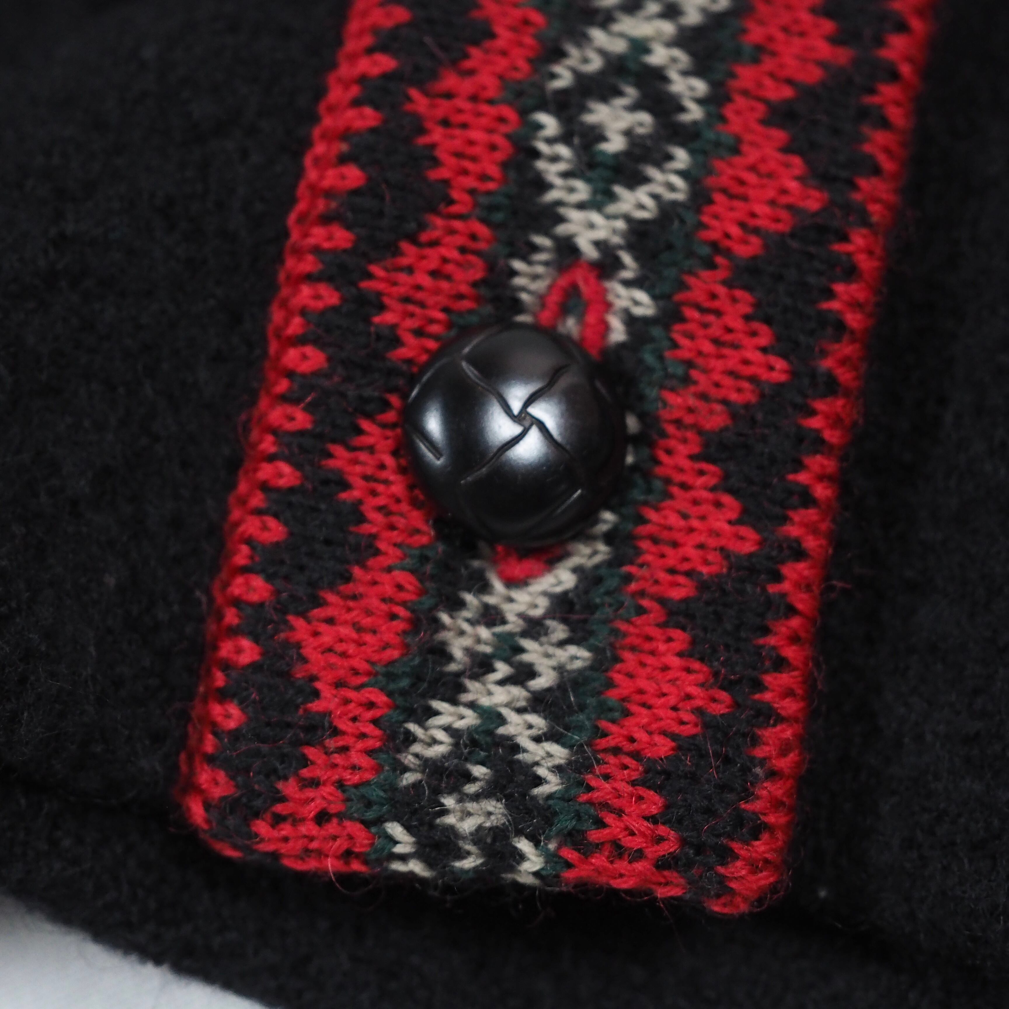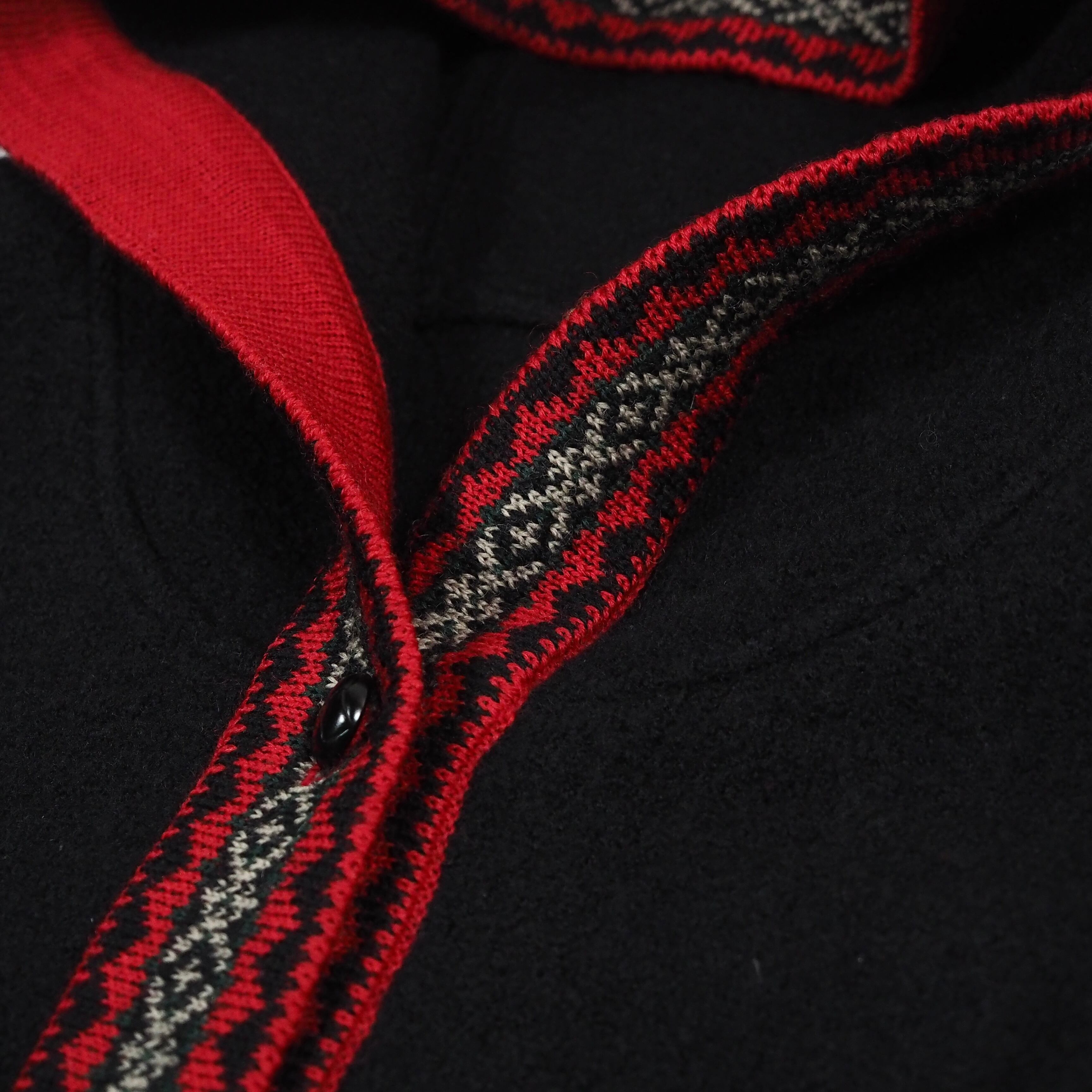 圧縮したボイルドウール生地、前立てや袖口にチロリアン柄が編まれたデザイン。