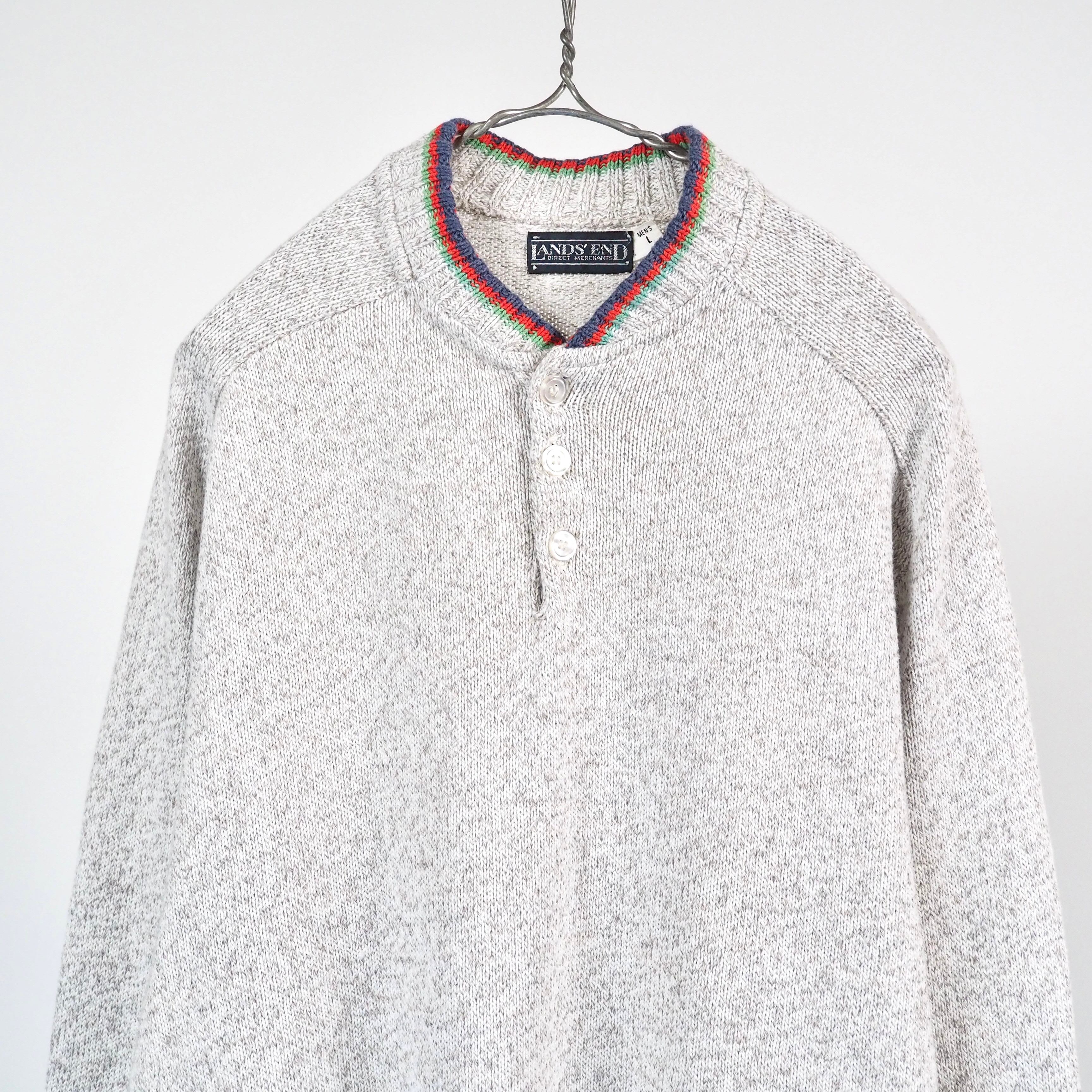 LANDS'END Henry-neck cotton knit sweater L /80's ランズエンド コットン ニットセーター
