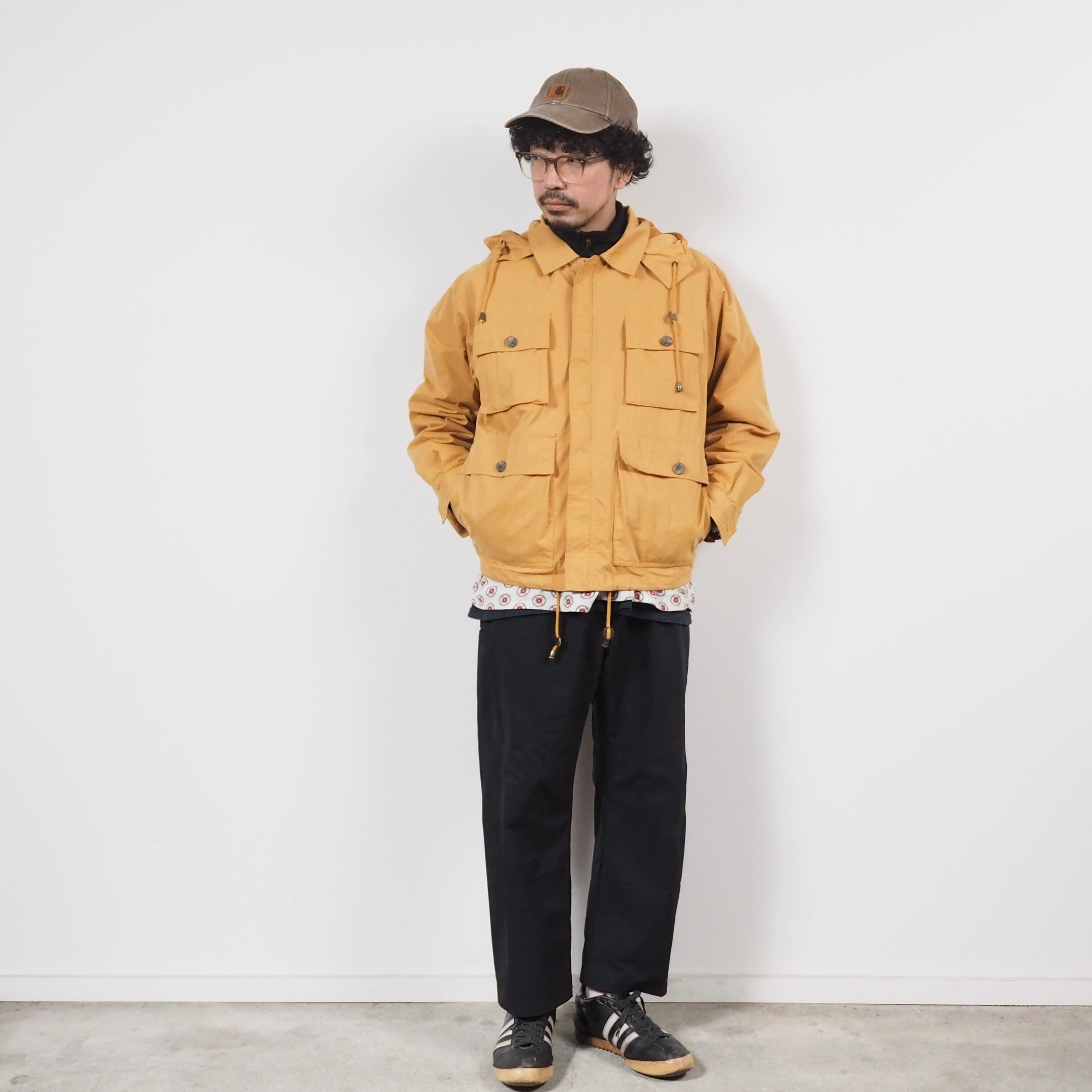 コットン70%/ナイロン30%混紡のライトな質感のボディーに柔らかいイエロー系カラーのライトアウターです。