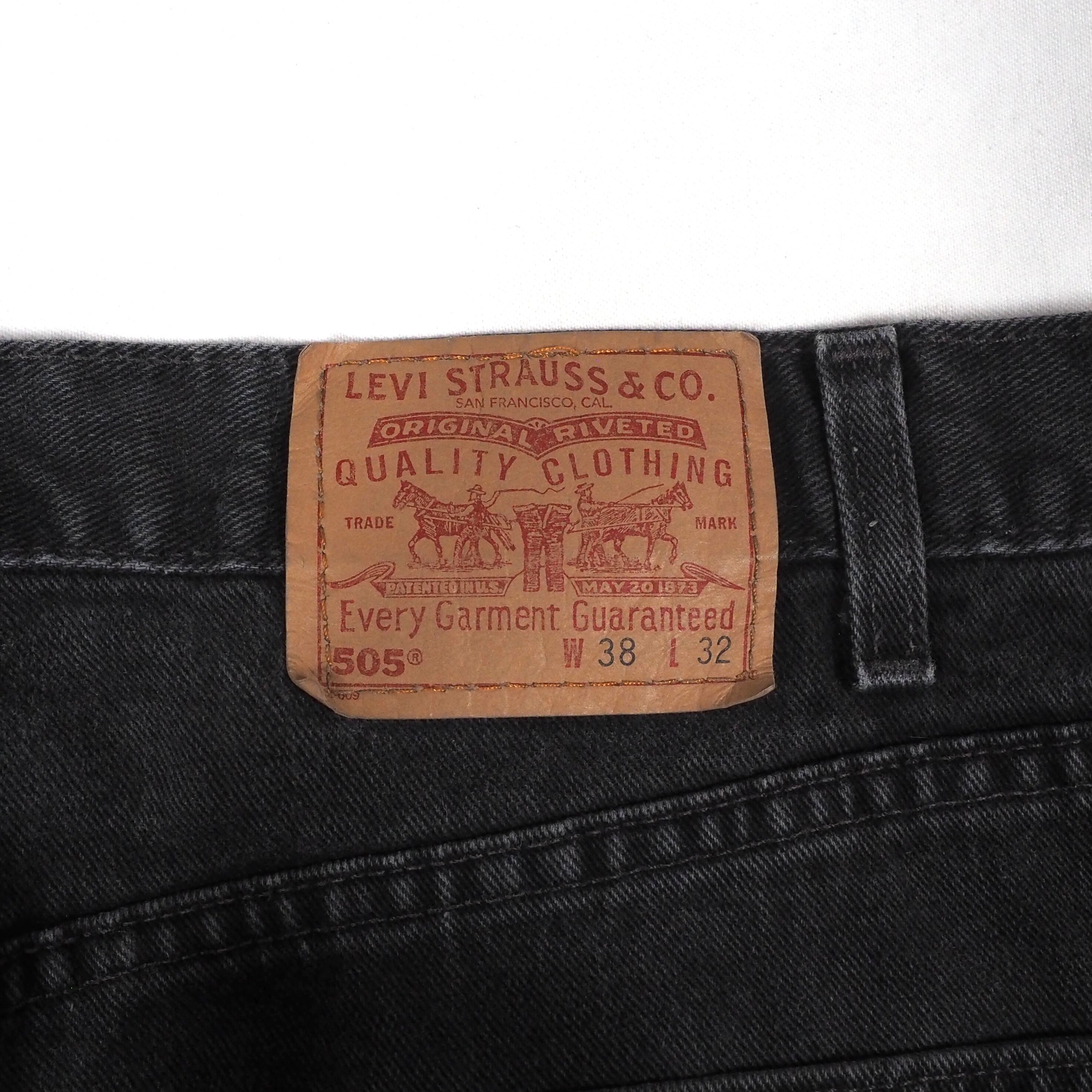 Levi's 505 black denim W38/L32 オリジナルレングス/90's USA製 リーバイス サルファ ブラック デニムパンツ