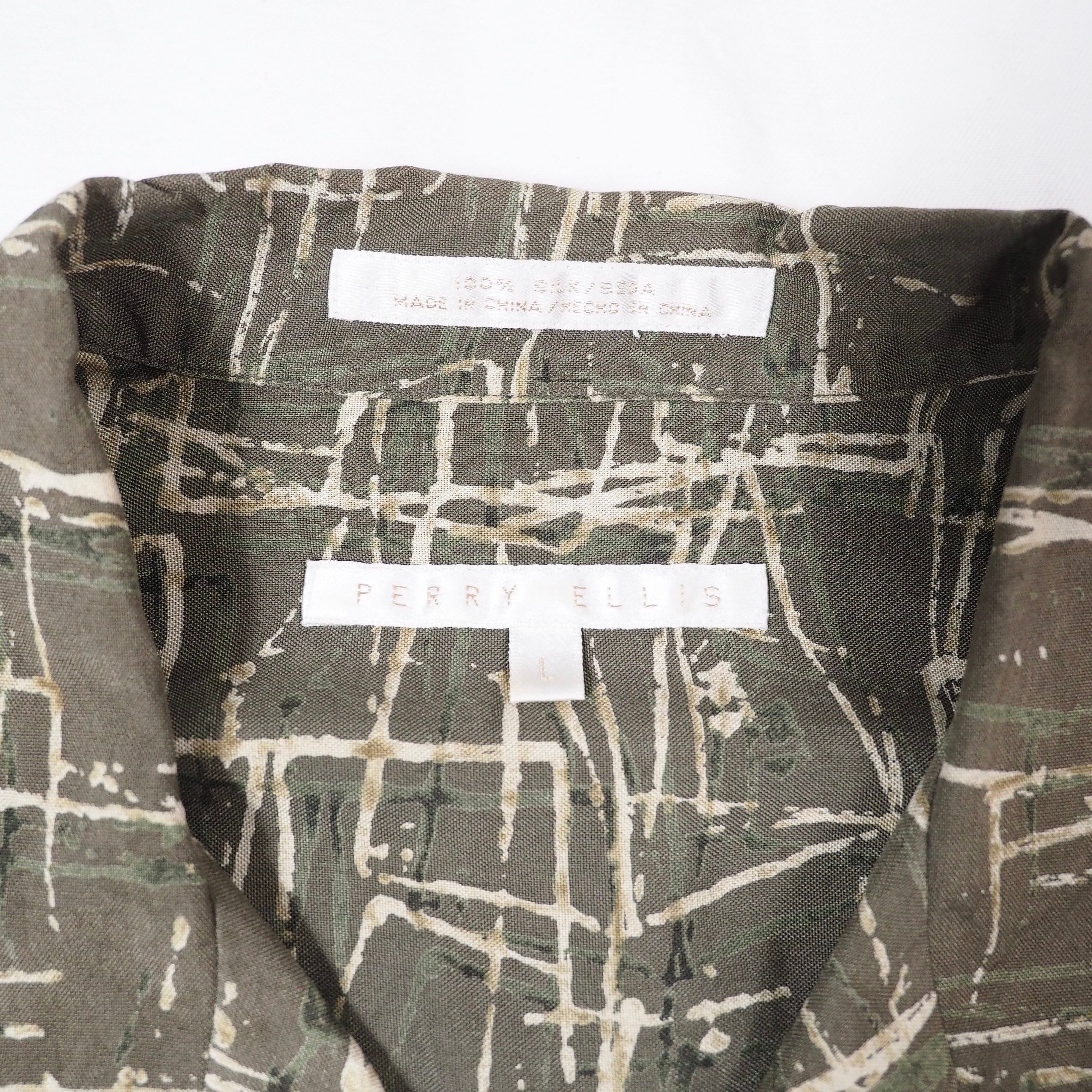 PERRY ELLIS silk open collar s/s shirt L /ペリーエリス シルク オープンカラー 半袖シャツ